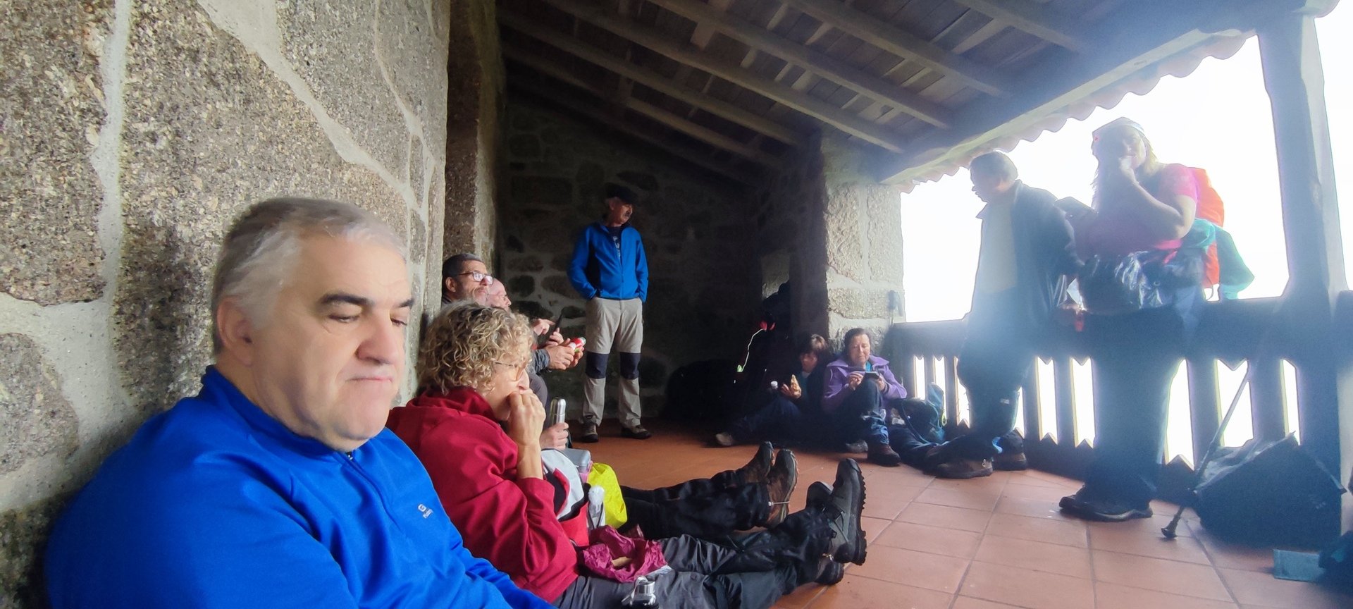 O céu, que já vinha ameaçador, decidiu então libertar uma chuvada. Felizmente, já estávamos abrigados junto à capela e pudemos almoçar sequinhos.