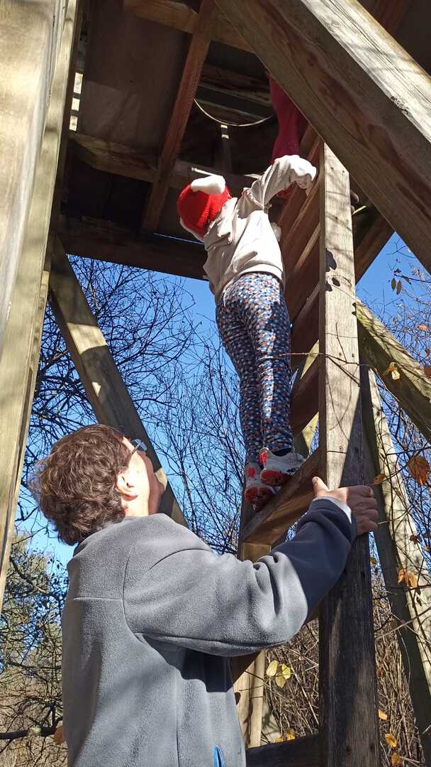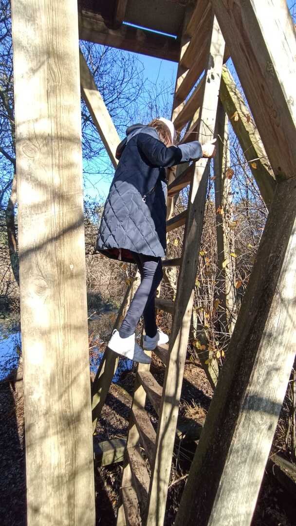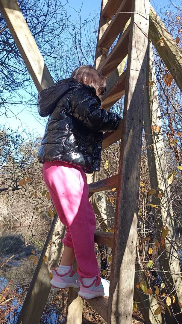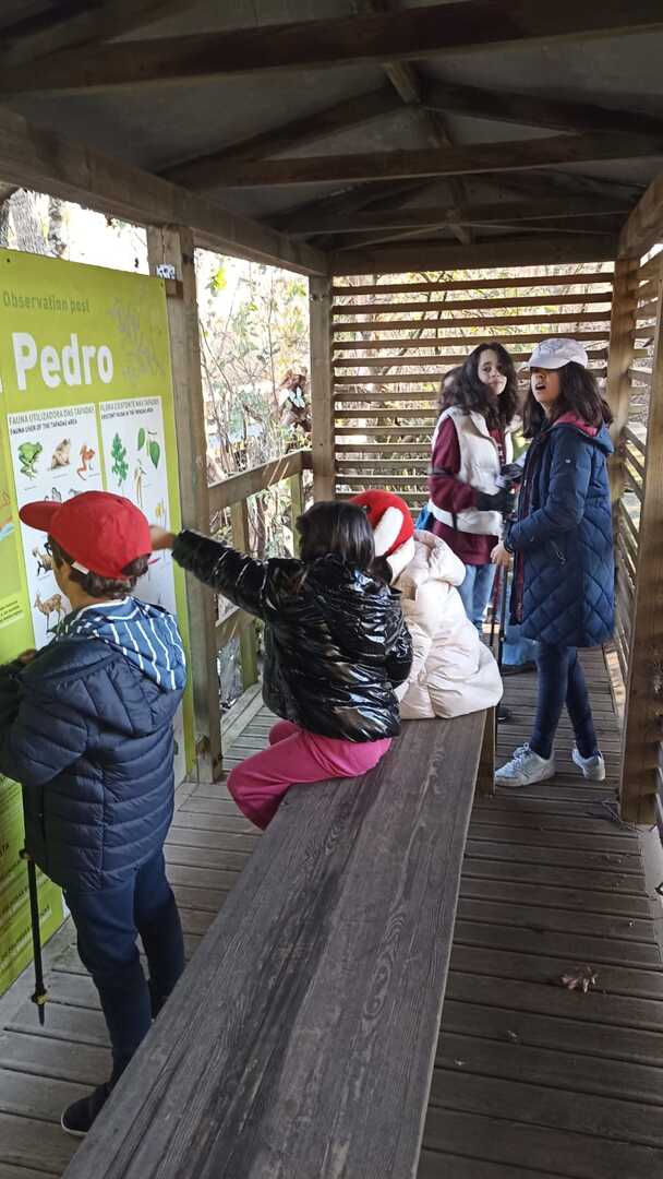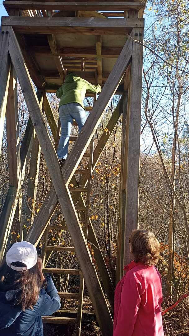 A criançada ia à frente, marcando o passo e a orientação. Logo surgiu a primeira aventura: subir a uma torre de observação. Todos quiseram subir, o que implicou redobrados cuidados, especialmente na descida.