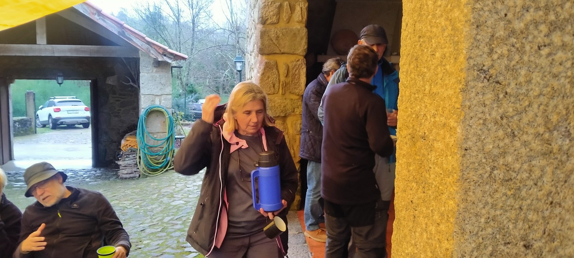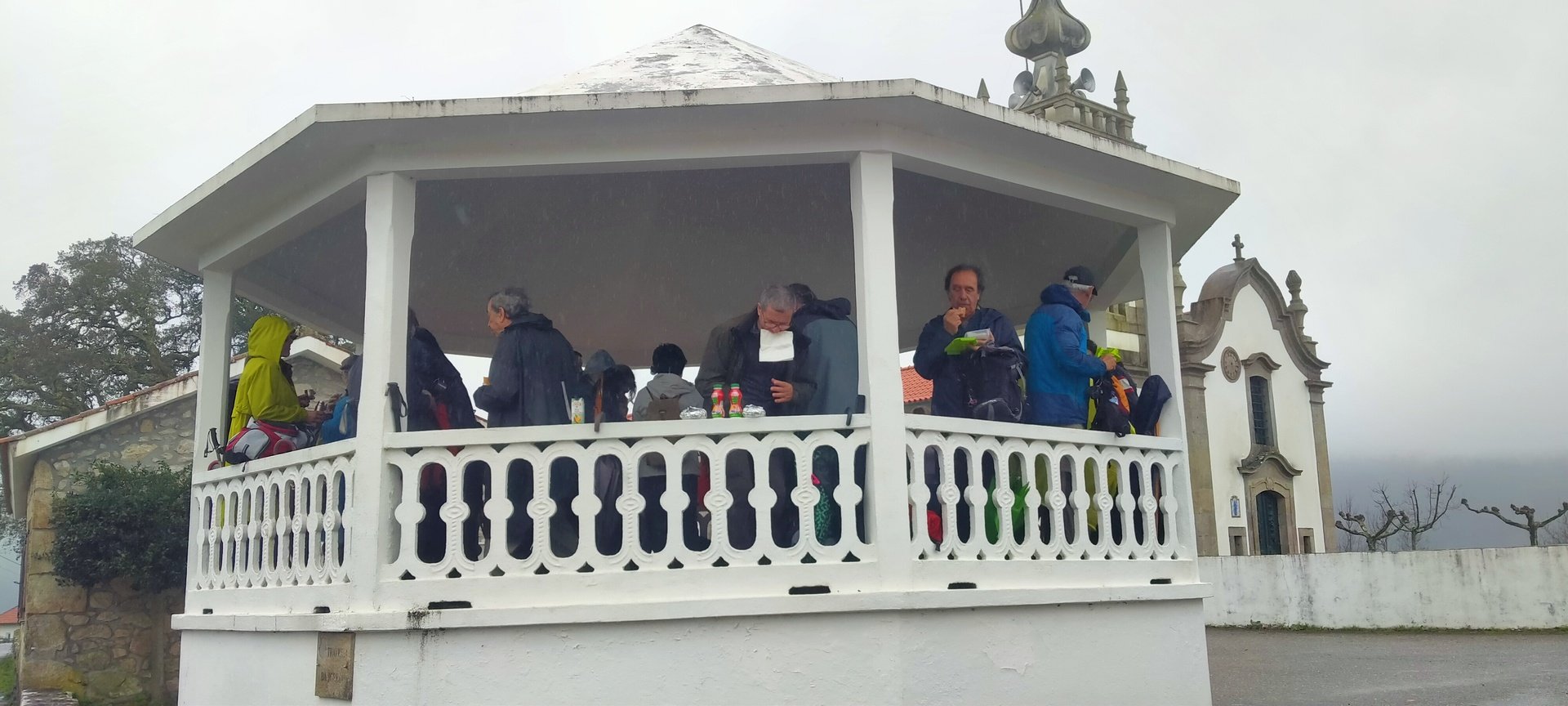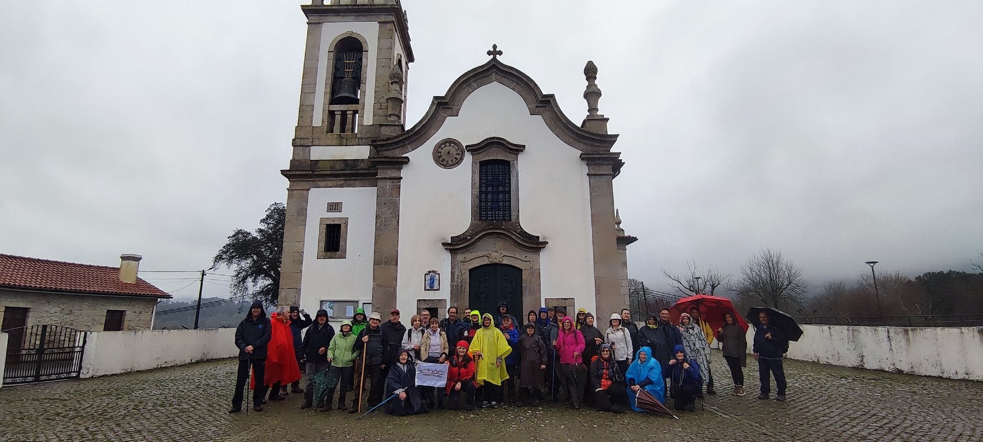 Depois de nos concentrarmos todos junto à igreja matriz de Romarigães, iniciámos o percurso pelo trilho do Aquilino Ribeiro, debaixo de uma acentuada chuva que nos acompanhou por todo o percurso. Tendo em conta que as condições climatéricas para este dia já não eram favoráveis e como este grupo é de grande resiliência, optou-se por seguir em frente.