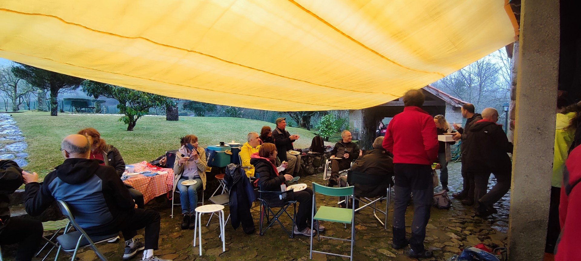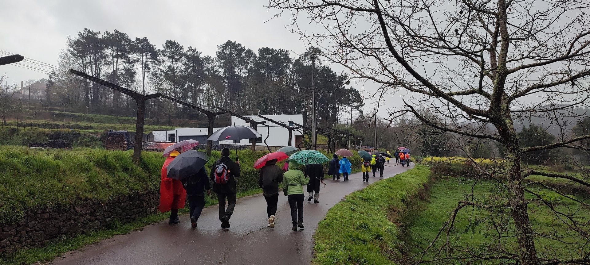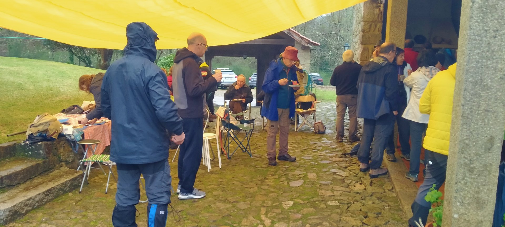 Depois de nos concentrarmos todos junto à igreja matriz de Romarigães, iniciámos o percurso pelo trilho do Aquilino Ribeiro, debaixo de uma acentuada chuva que nos acompanhou por todo o percurso. Tendo em conta que as condições climatéricas para este dia já não eram favoráveis e como este grupo é de grande resiliência, optou-se por seguir em frente.