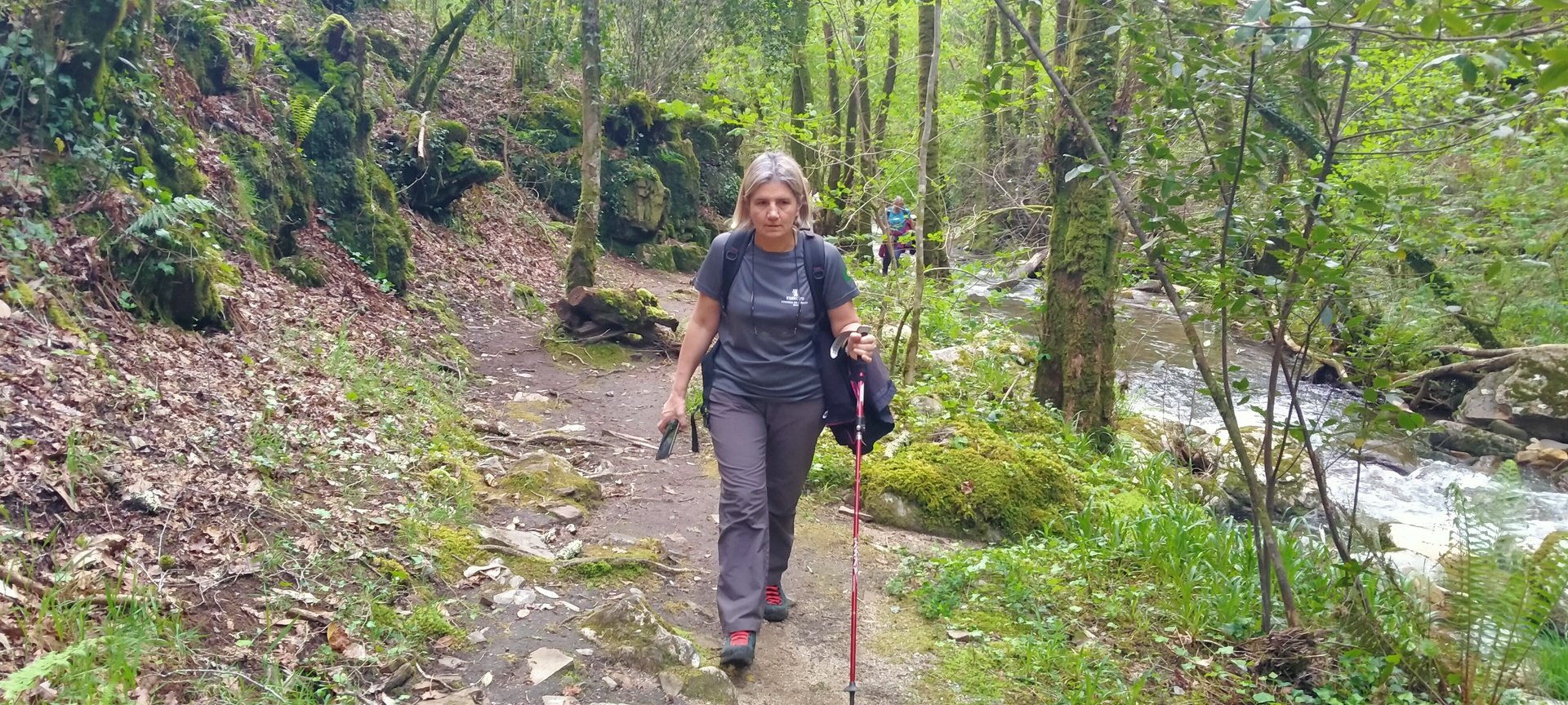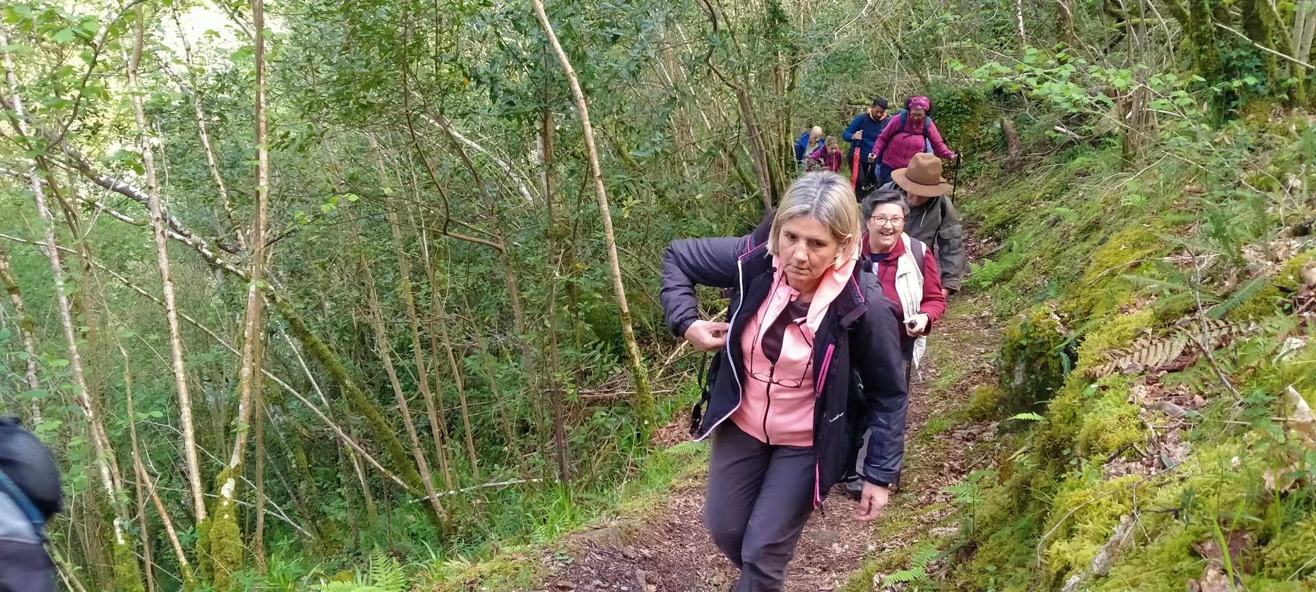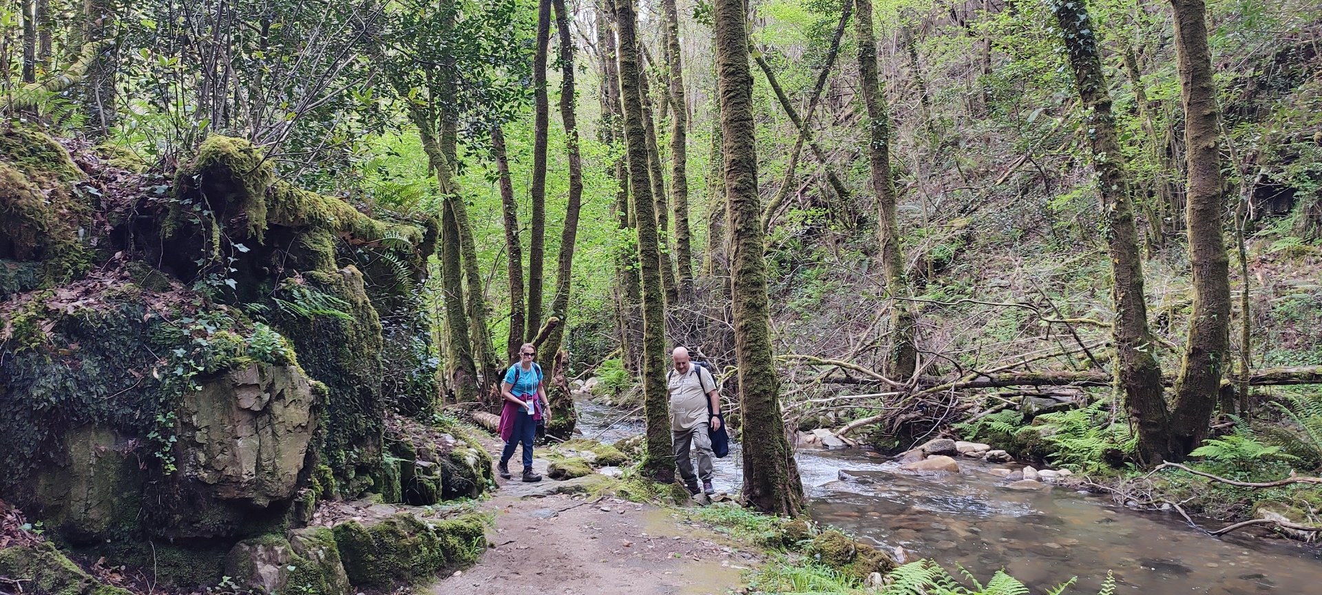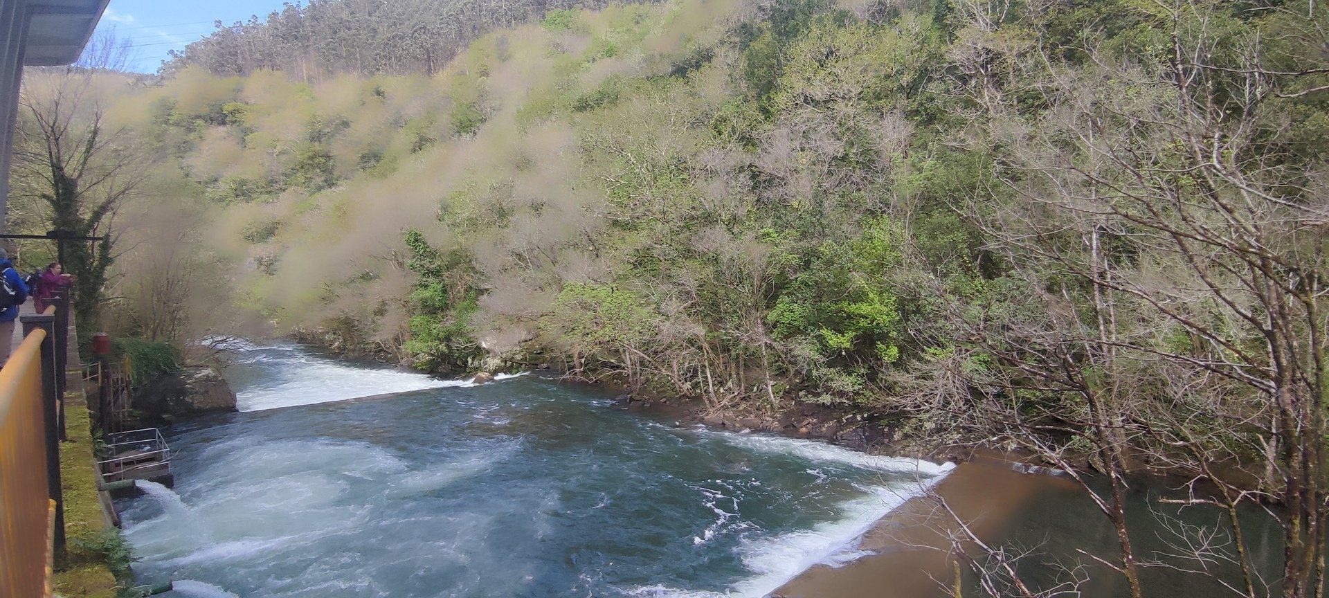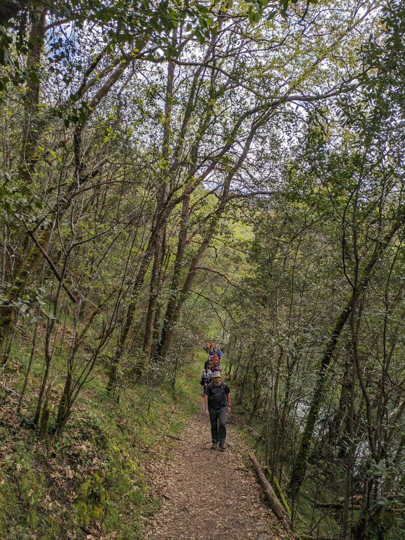 A primeira parte do percurso decorreu por trilhos de terra batida e enlameada, sempre junto ao Rio Eume, onde os diversos tons de verde e as árvores envolventes faziam lembrar um bosque encantado.