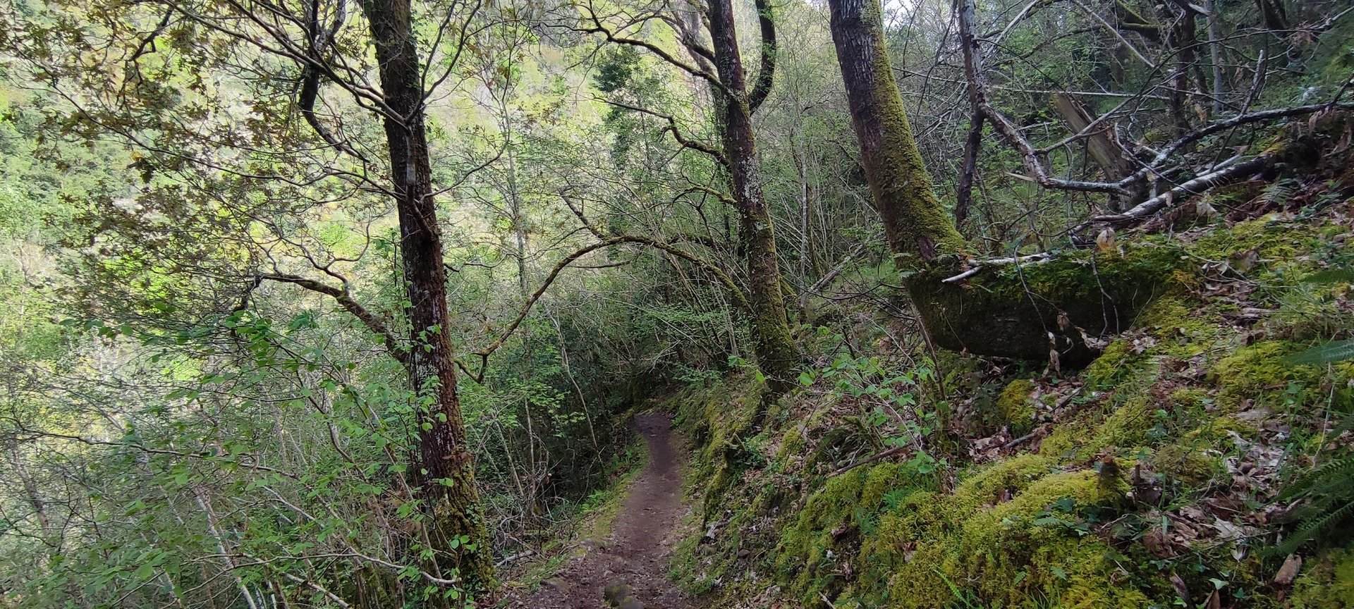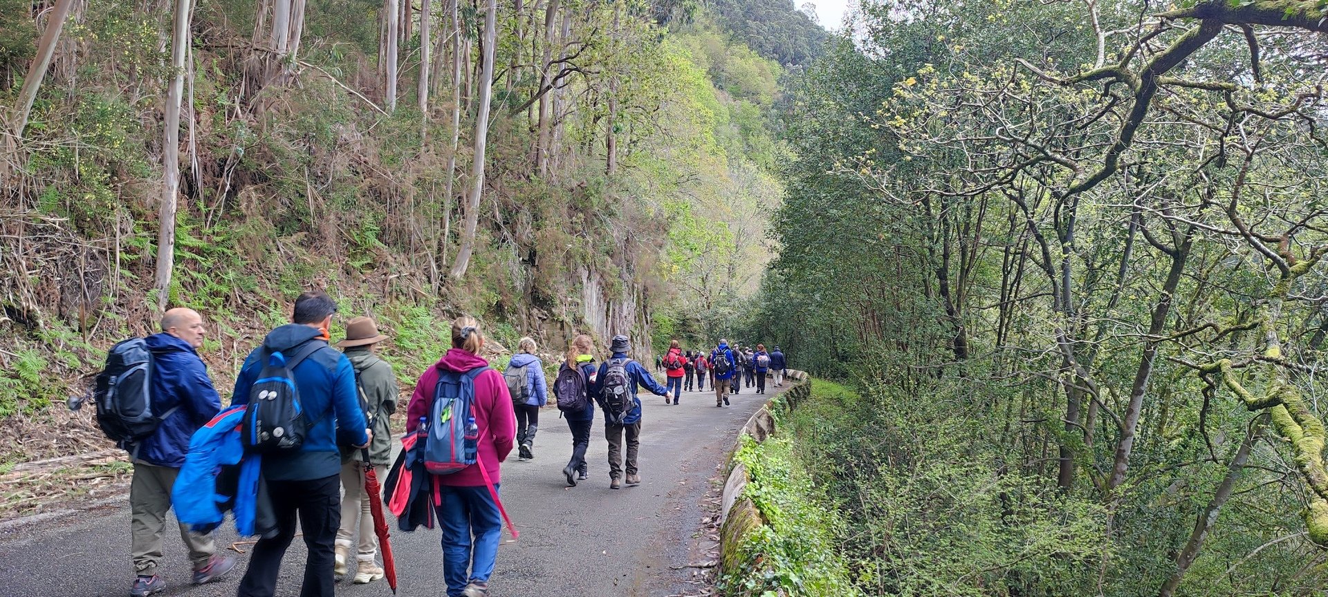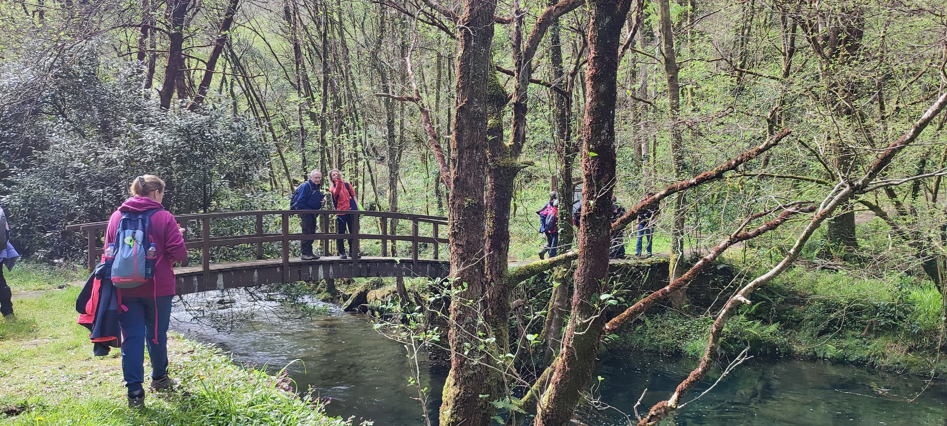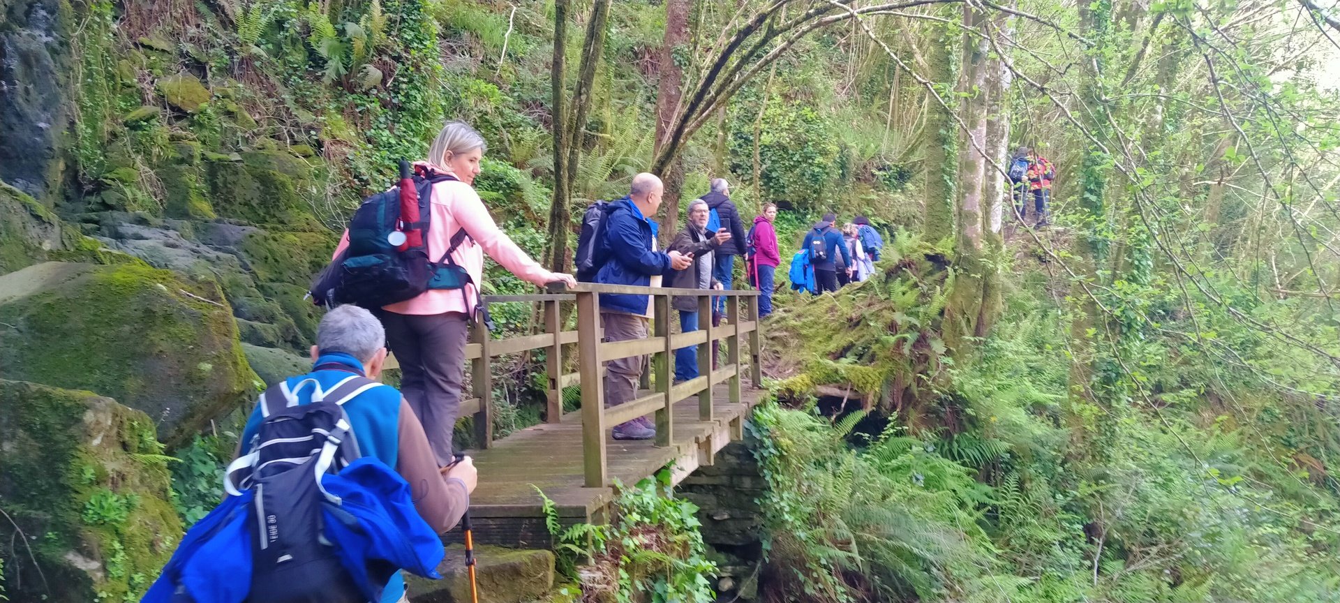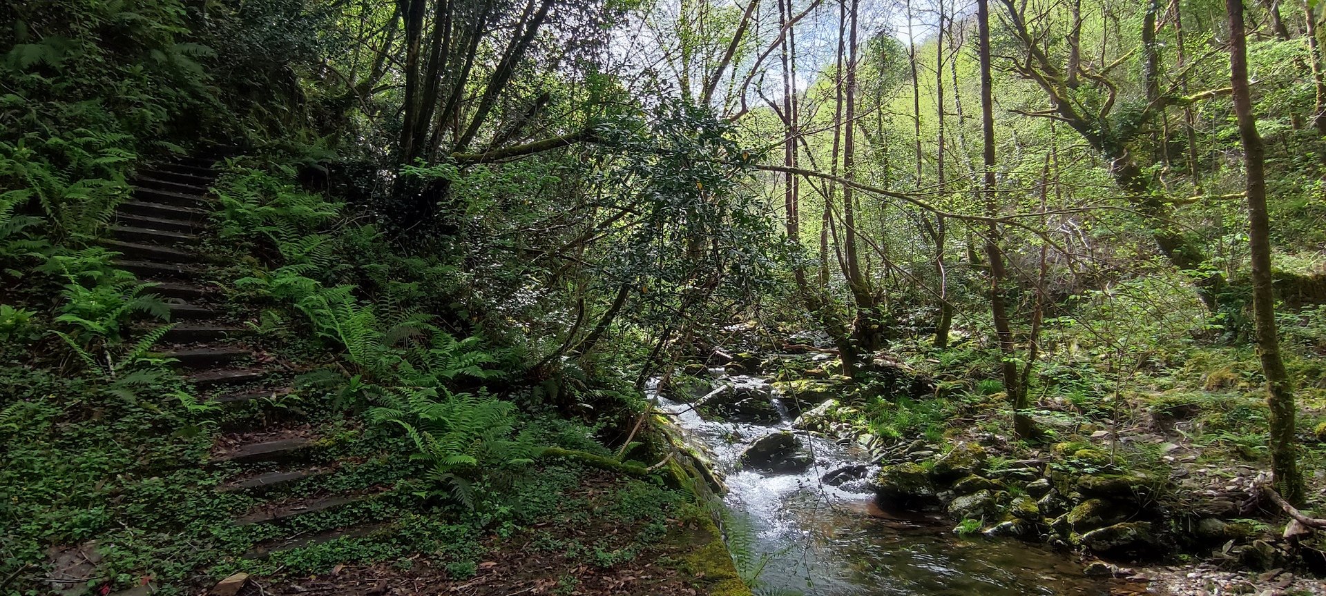 A primeira parte do percurso decorreu por trilhos de terra batida e enlameada, sempre junto ao Rio Eume, onde os diversos tons de verde e as árvores envolventes faziam lembrar um bosque encantado.