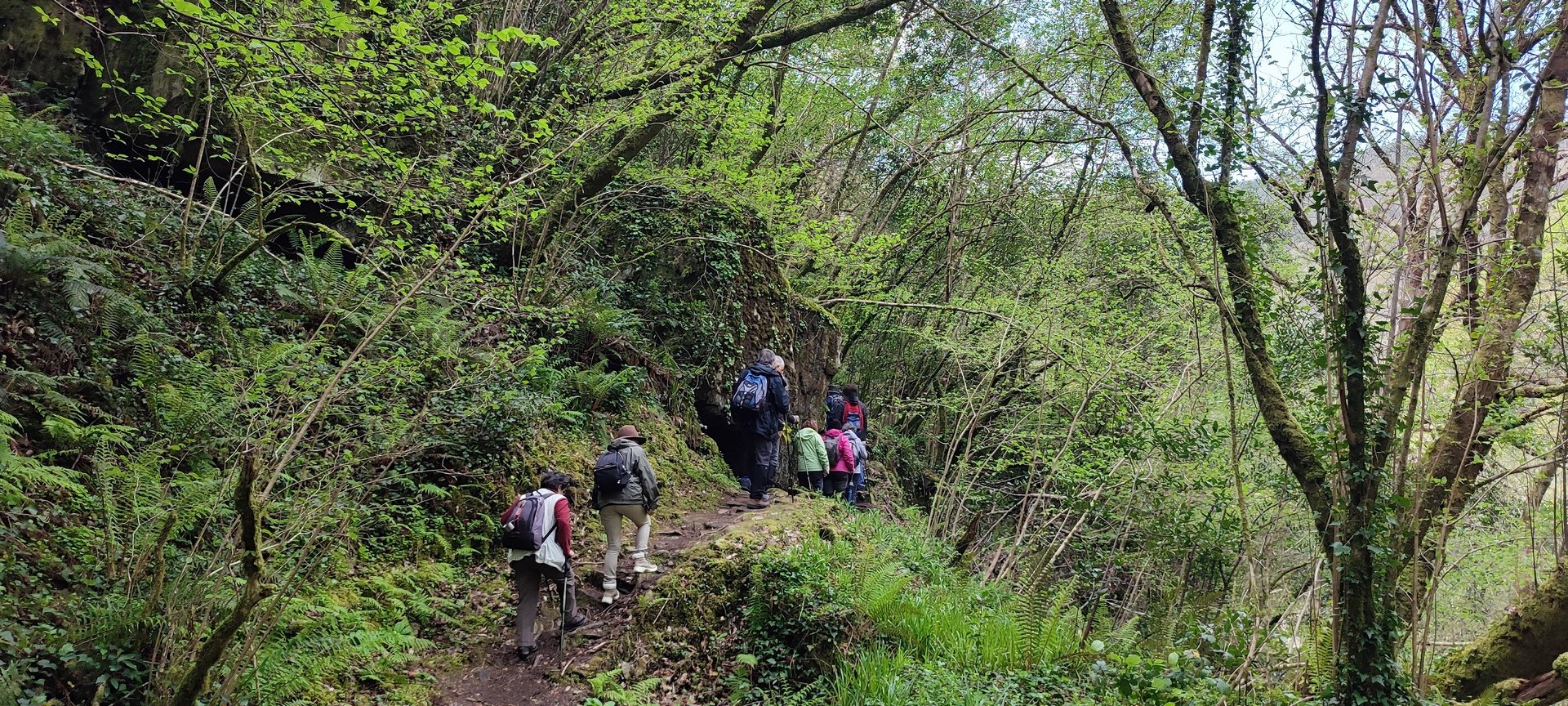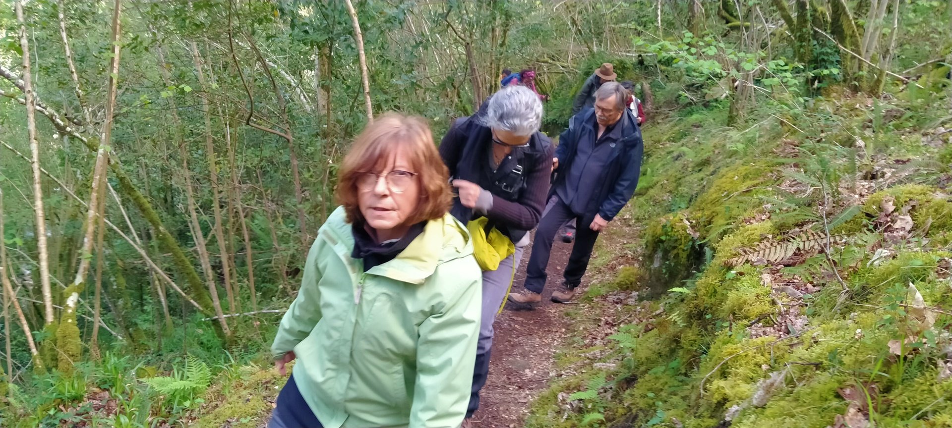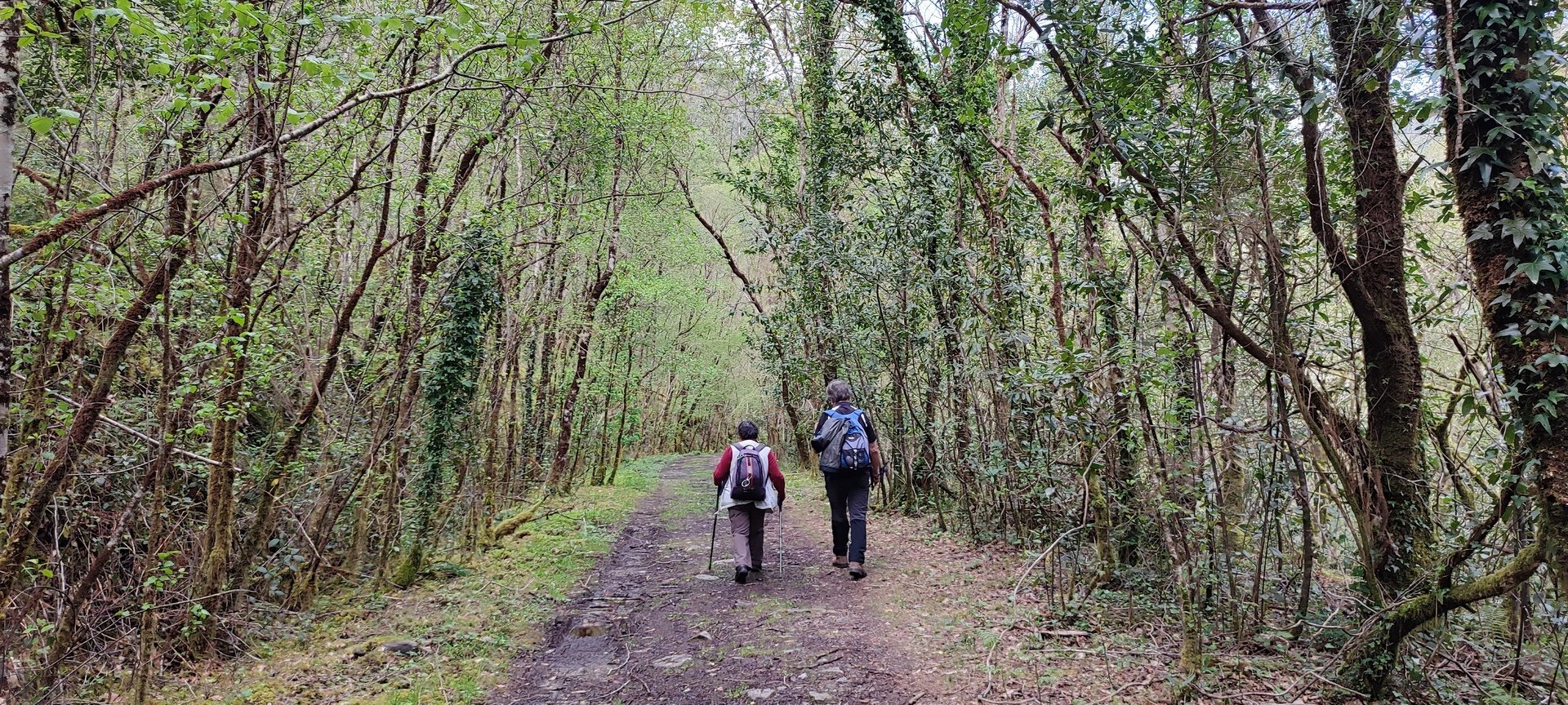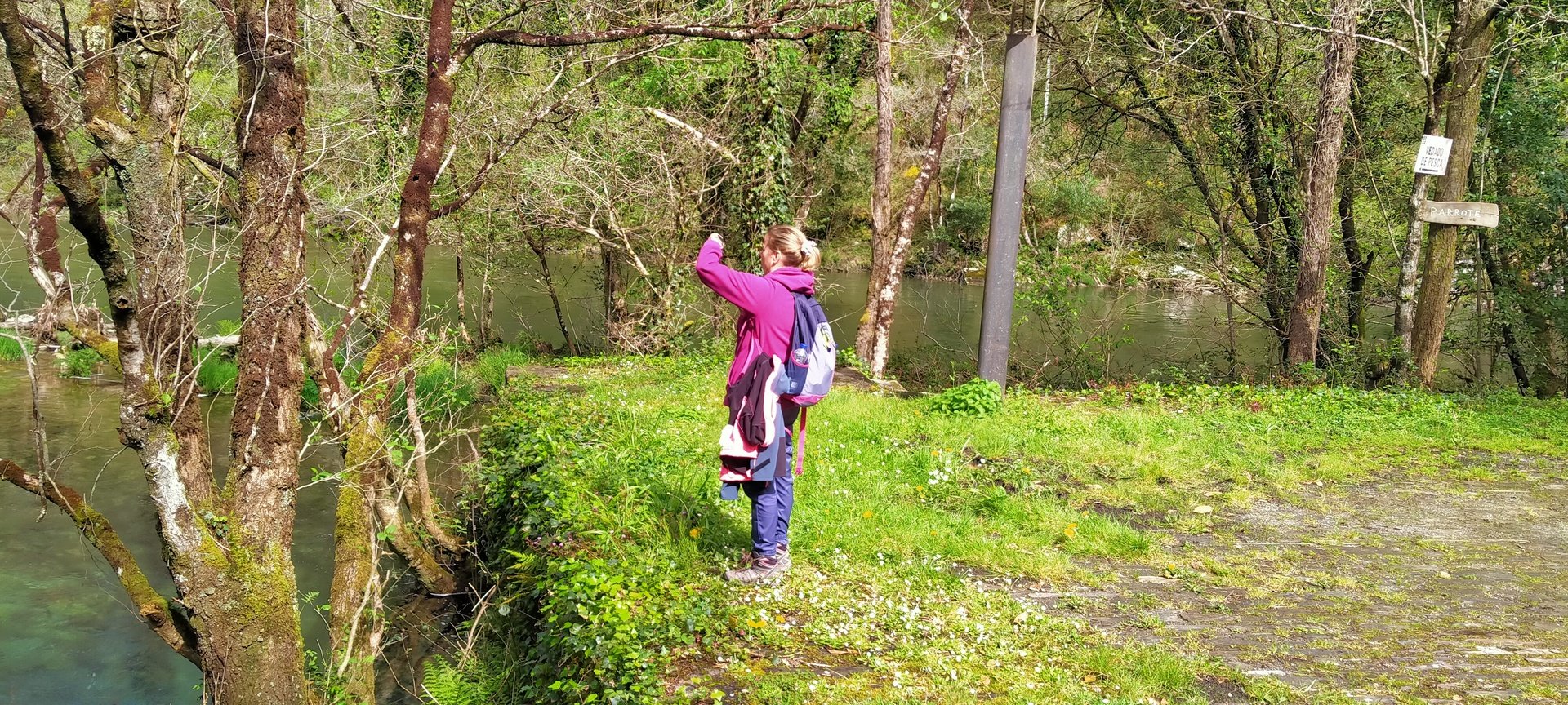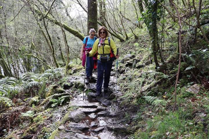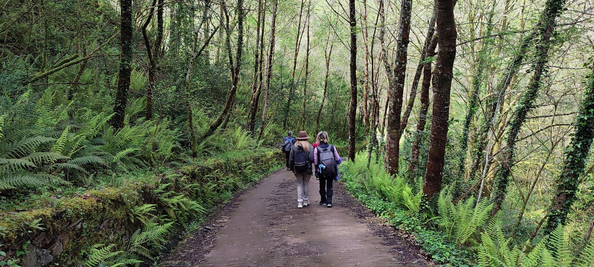 A primeira parte do percurso decorreu por trilhos de terra batida e enlameada, sempre junto ao Rio Eume, onde os diversos tons de verde e as árvores envolventes faziam lembrar um bosque encantado.