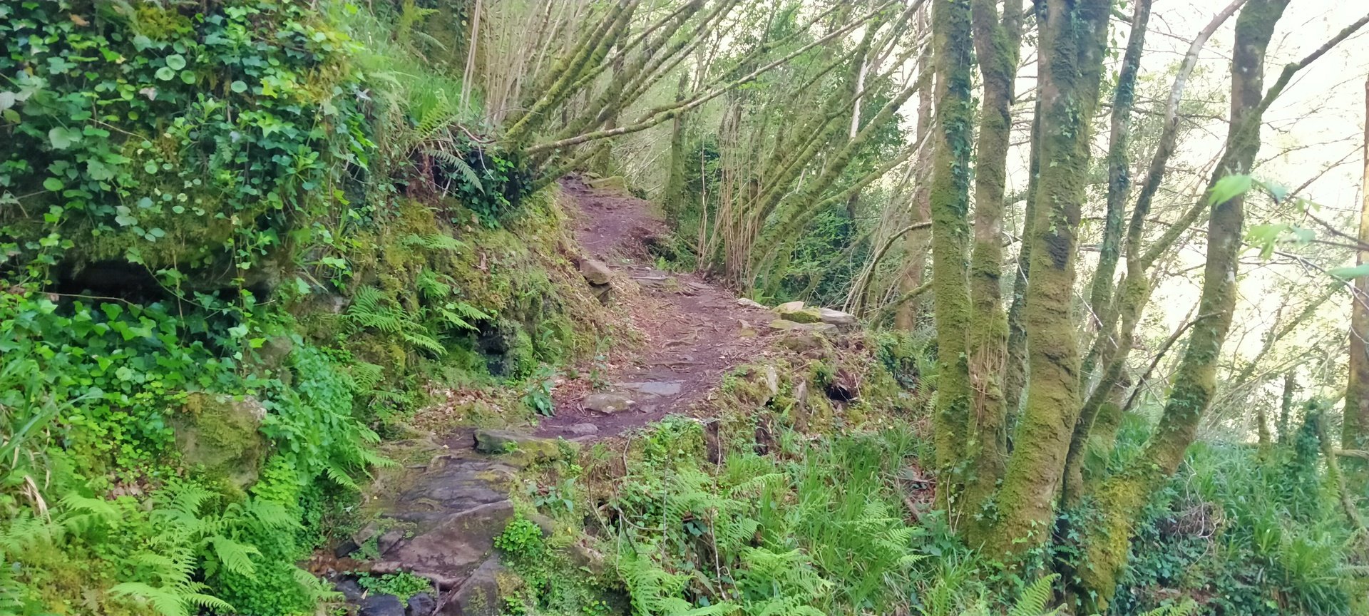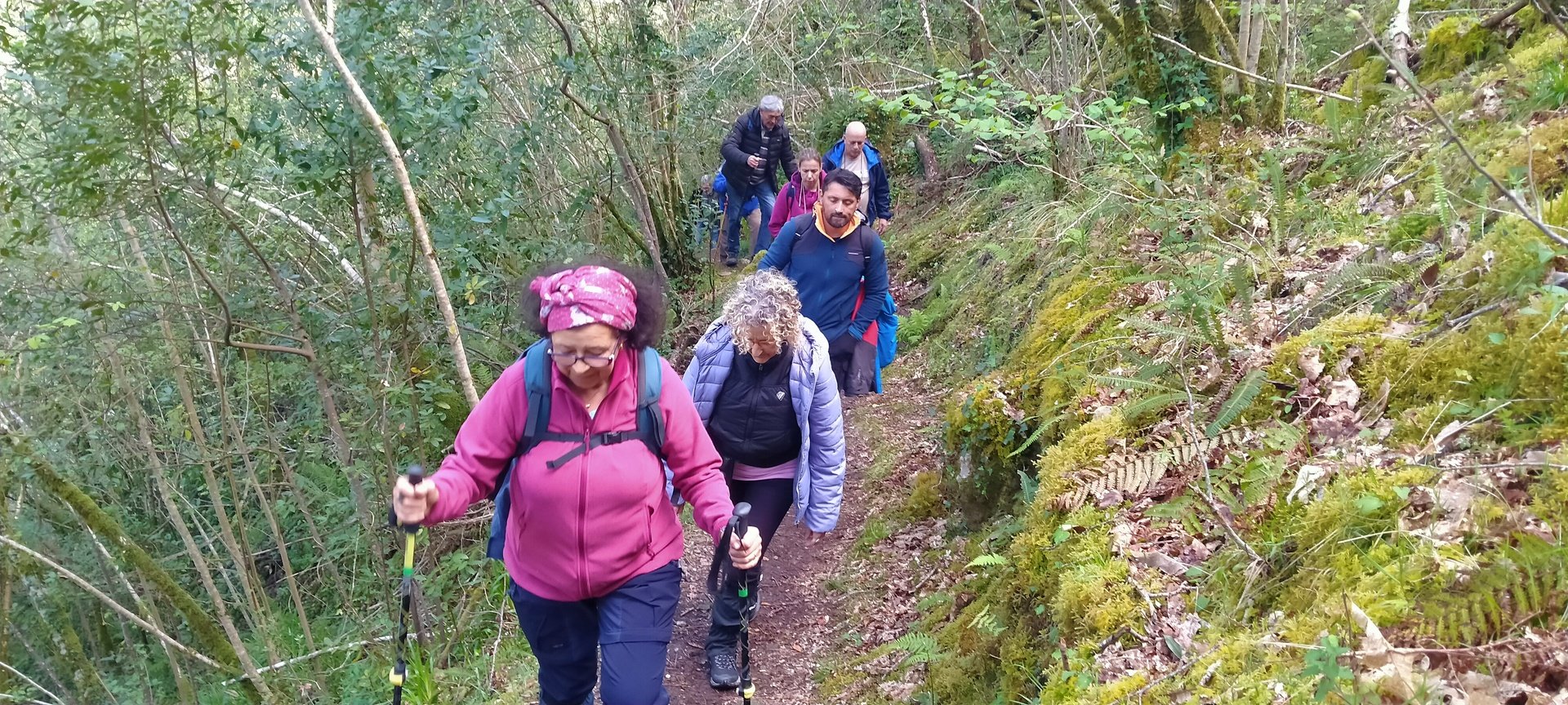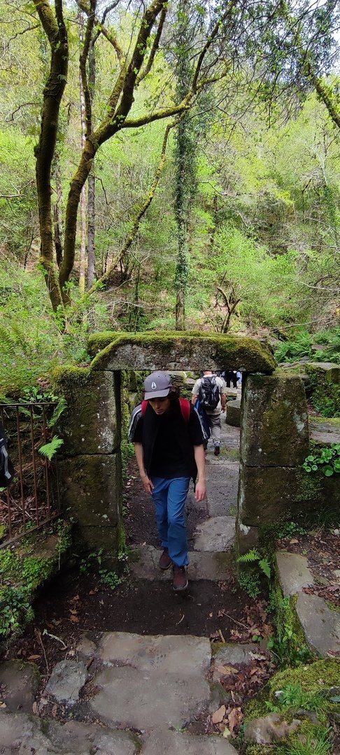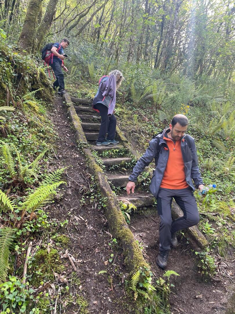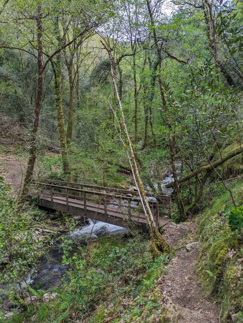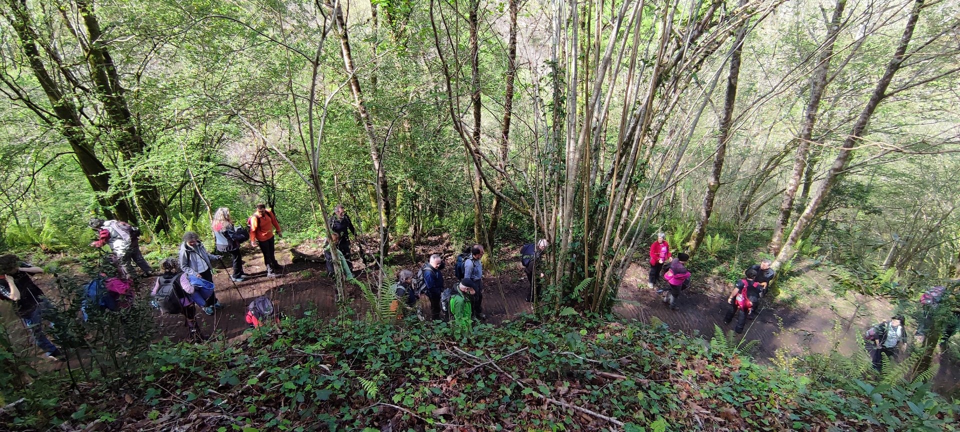 A primeira parte do percurso decorreu por trilhos de terra batida e enlameada, sempre junto ao Rio Eume, onde os diversos tons de verde e as árvores envolventes faziam lembrar um bosque encantado.
