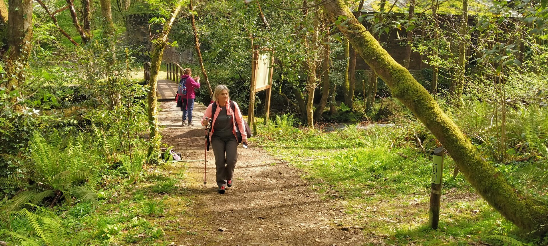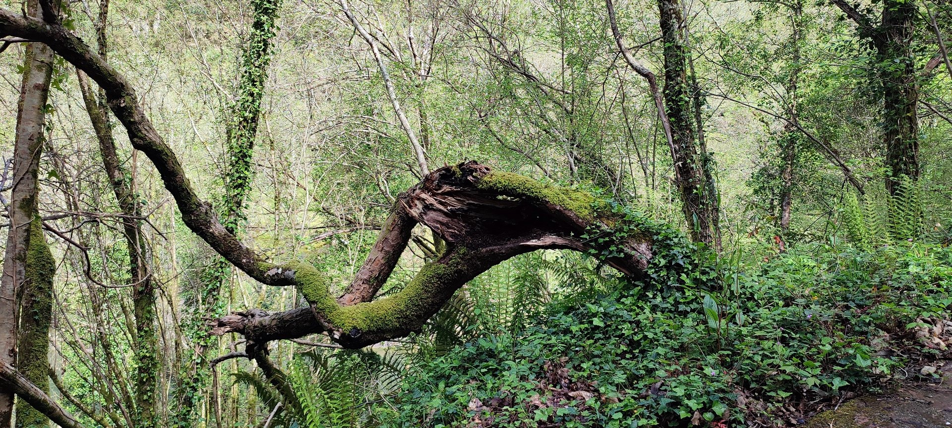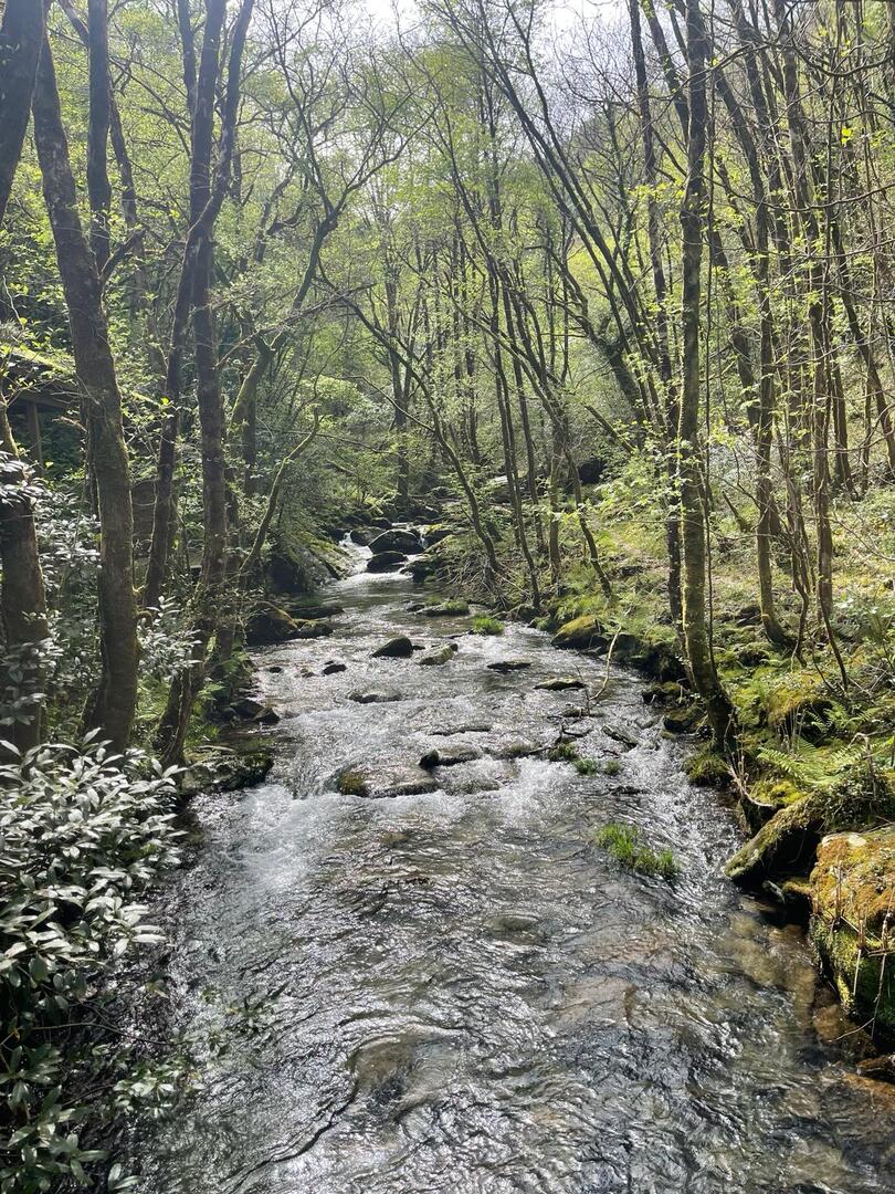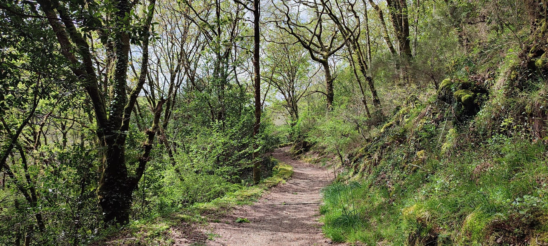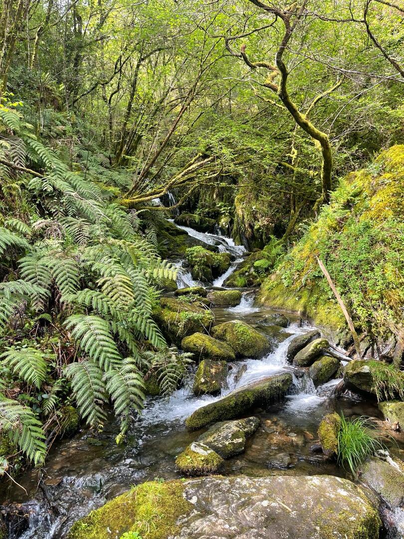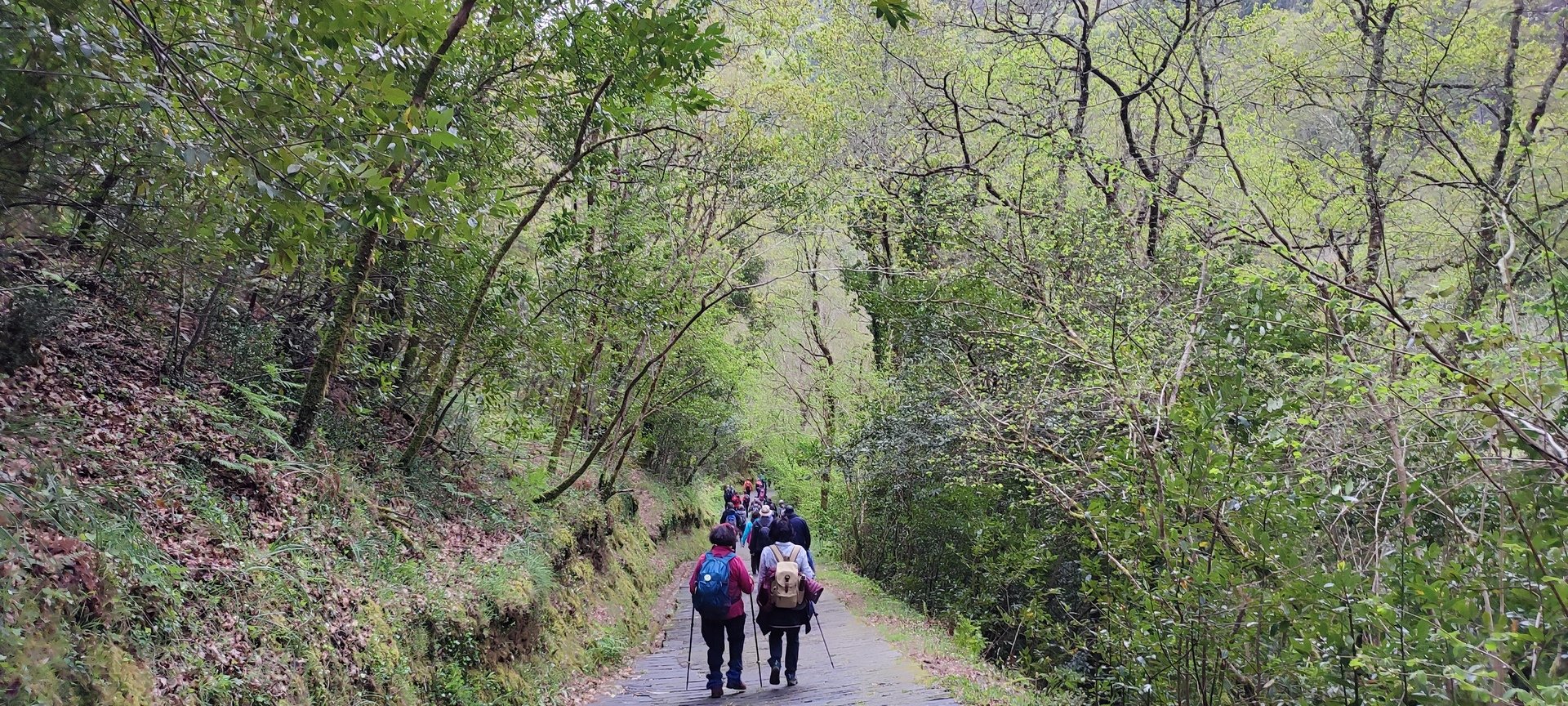A primeira parte do percurso decorreu por trilhos de terra batida e enlameada, sempre junto ao Rio Eume, onde os diversos tons de verde e as árvores envolventes faziam lembrar um bosque encantado.