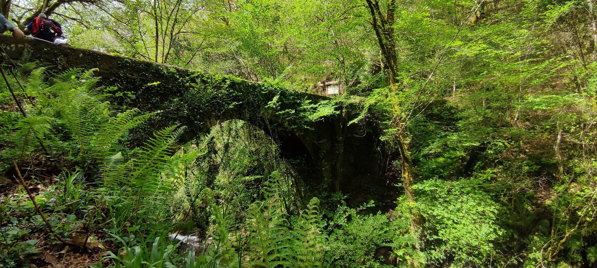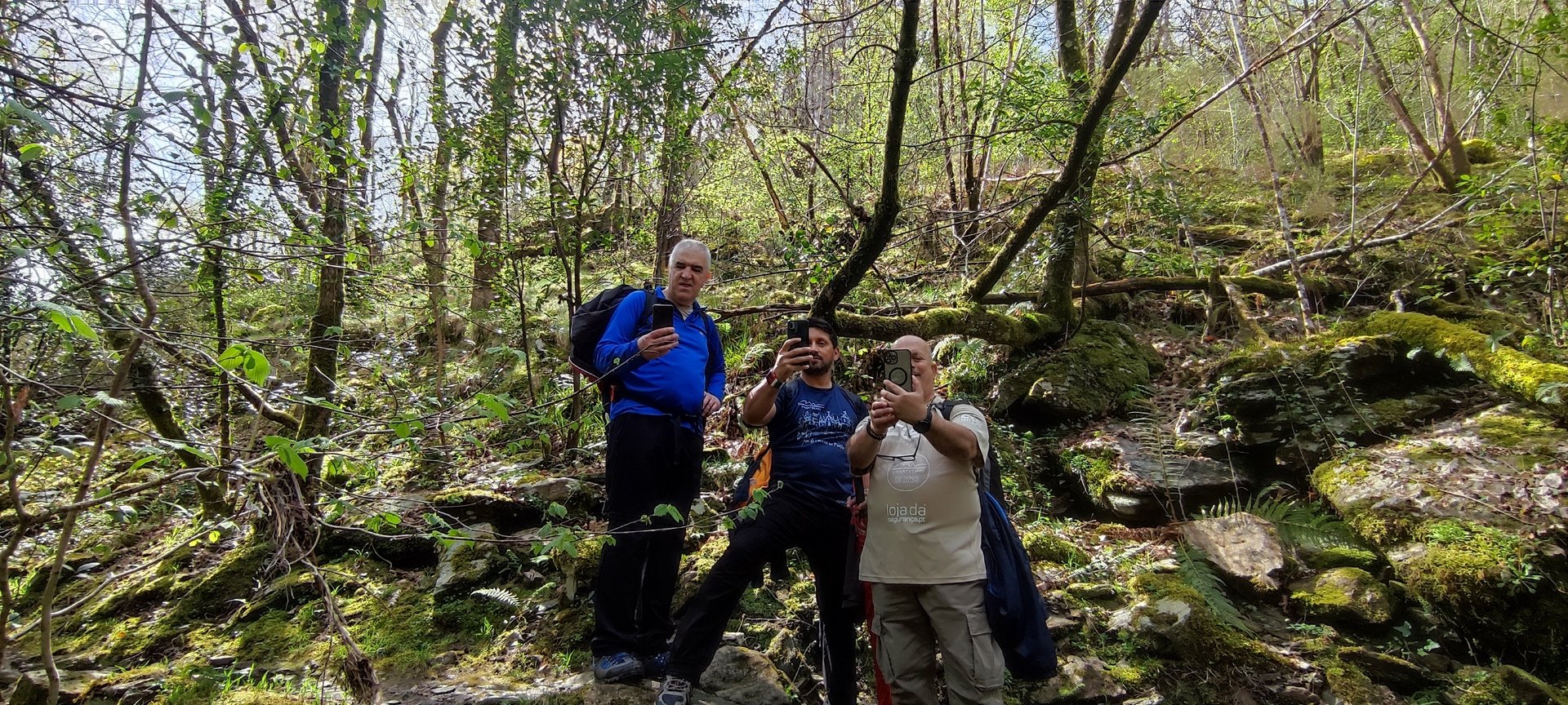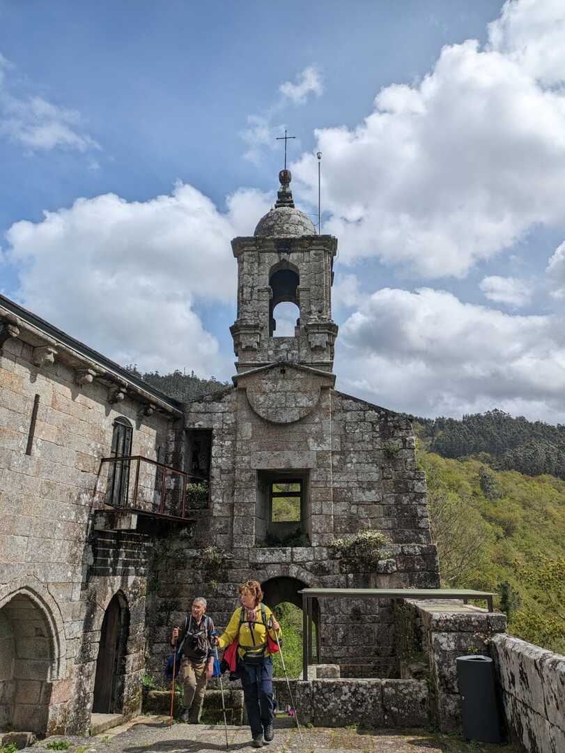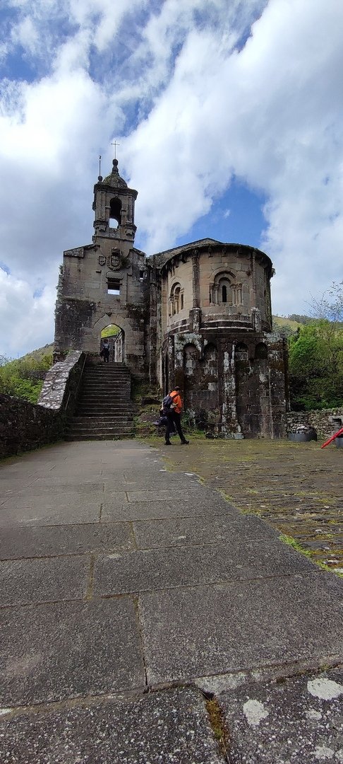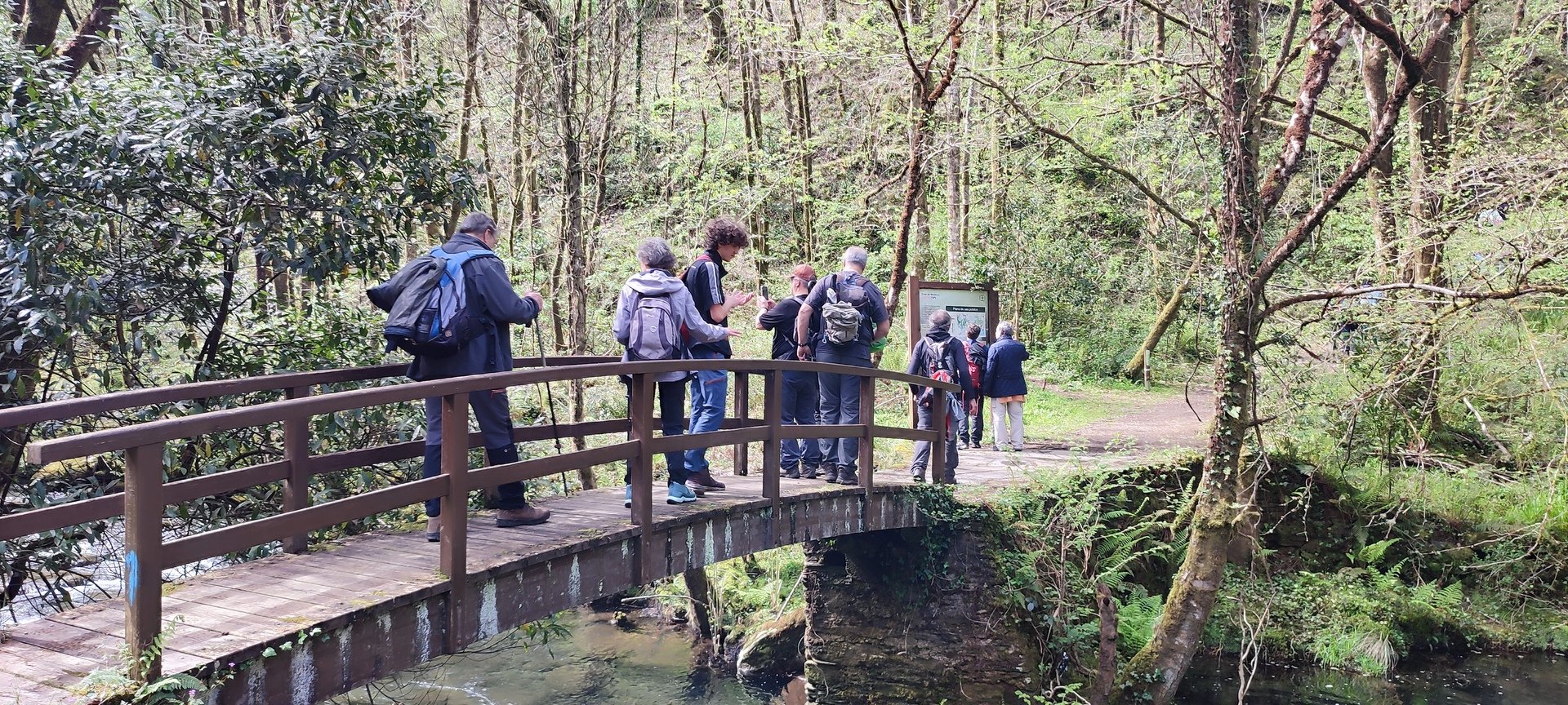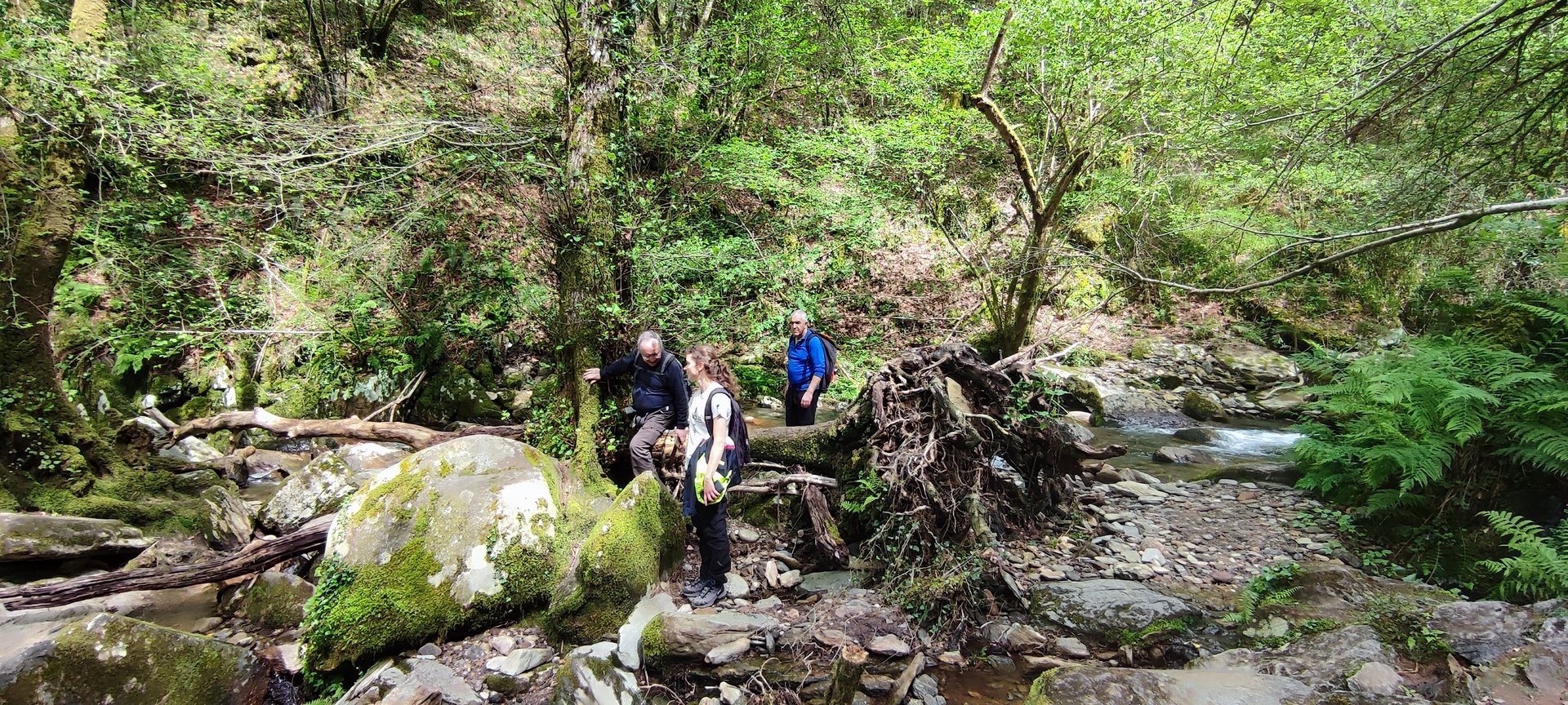 Chegados à ponte de Santa Cristina, fizemos um pequeno desvio até ao Mosteiro de Caaveiro, atualmente recuperado e visitável, onde fizemos uma paragem para almoço e respetiva foto de grupo.