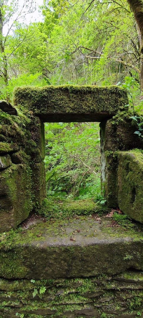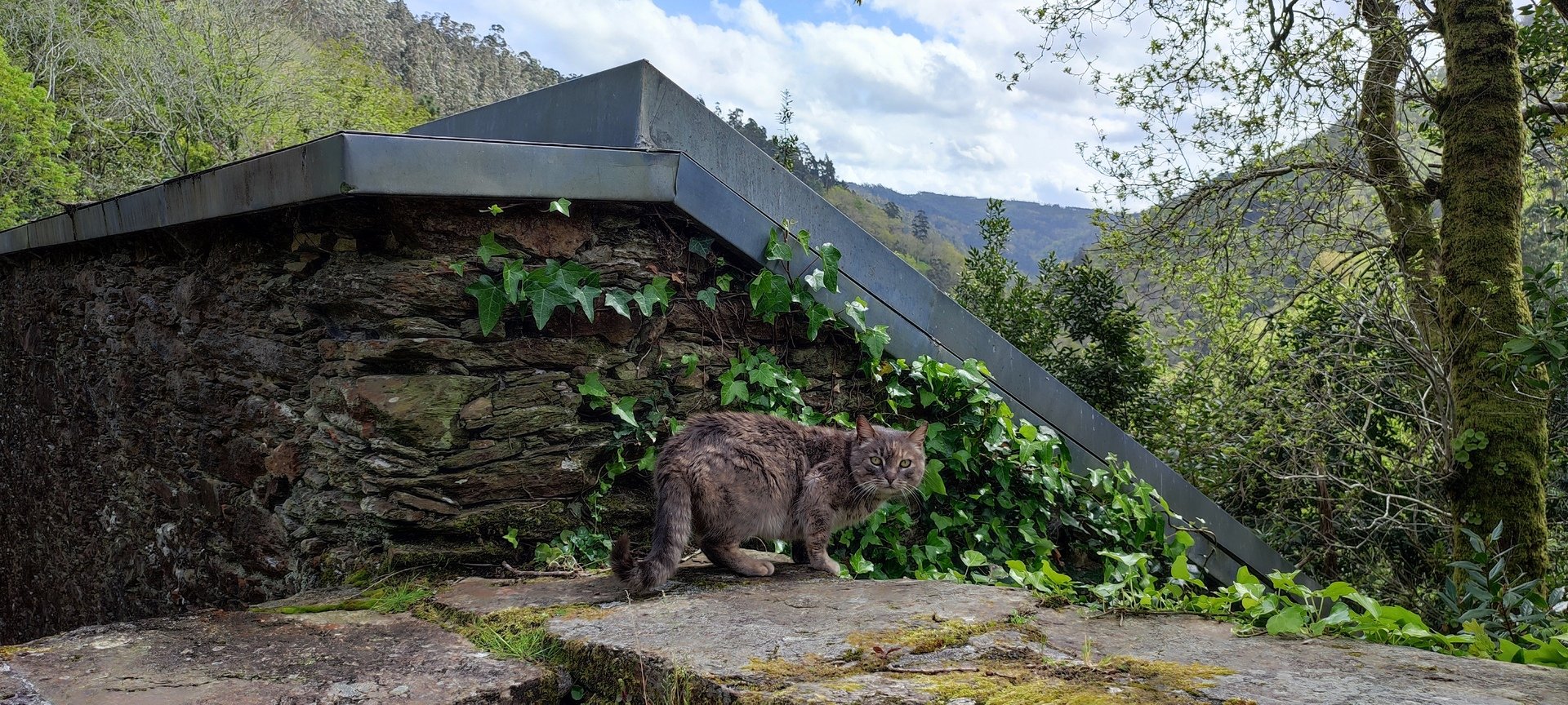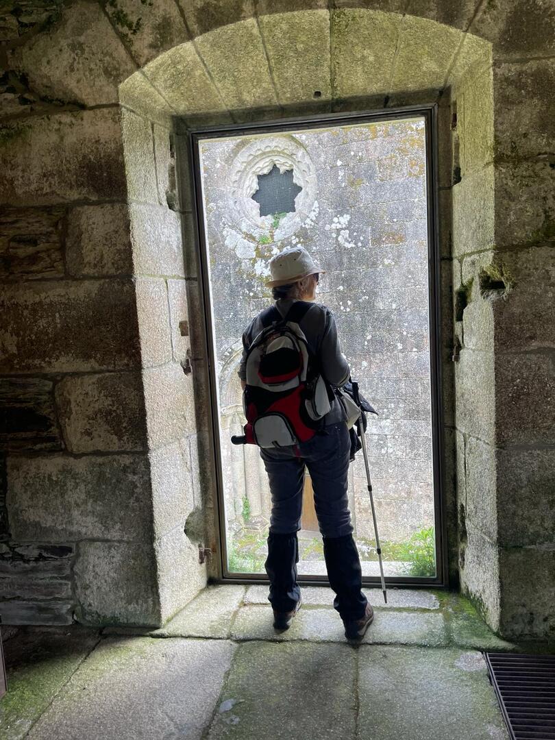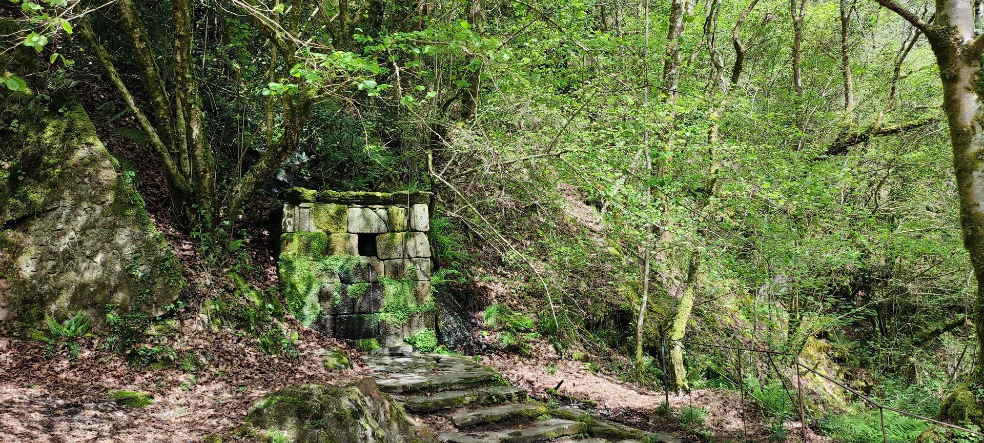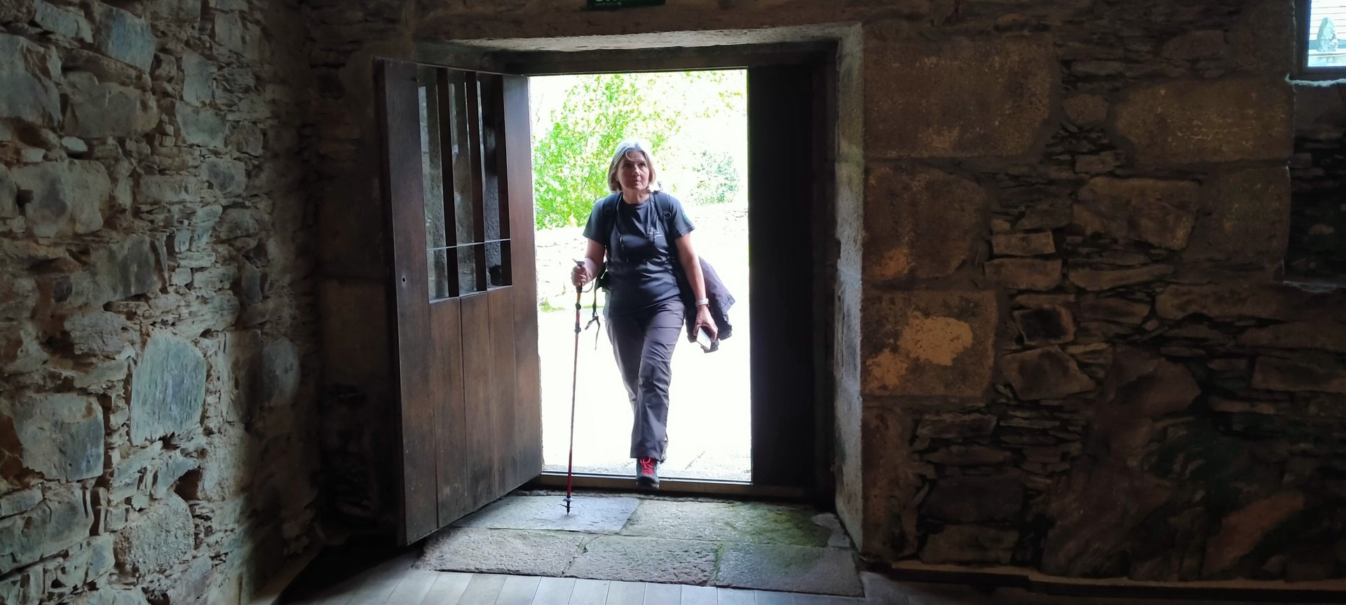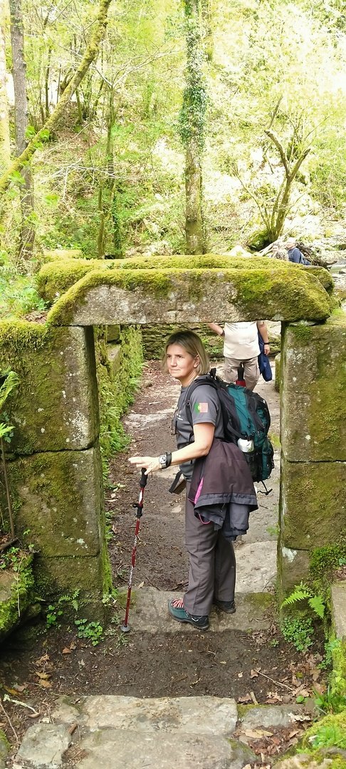 Chegados à ponte de Santa Cristina, fizemos um pequeno desvio até ao Mosteiro de Caaveiro, atualmente recuperado e visitável, onde fizemos uma paragem para almoço e respetiva foto de grupo.