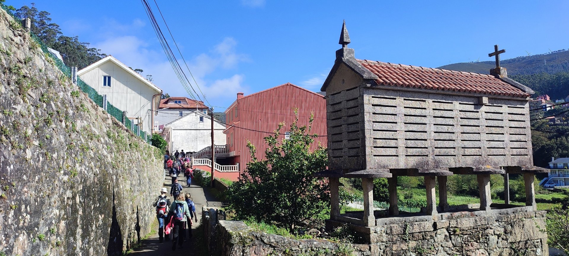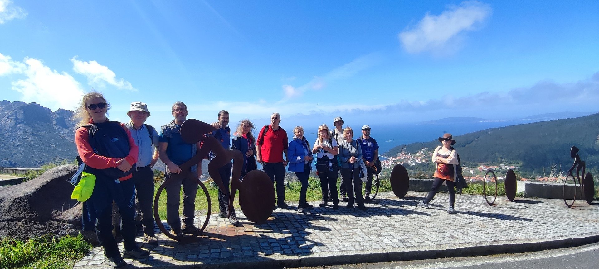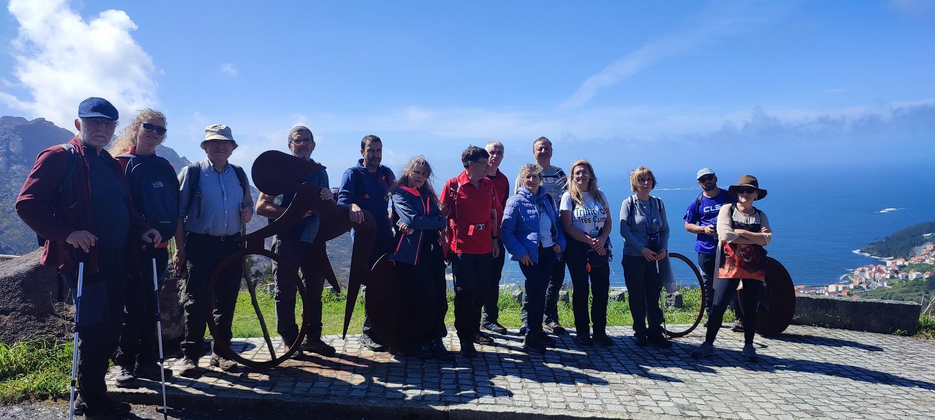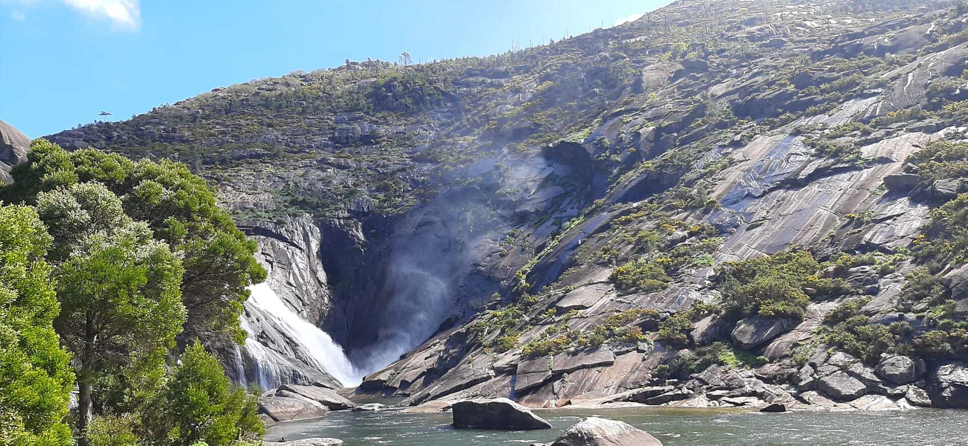 Estipulada a hora de saída para as 8h e 30m, e depois de um fenomenal pequeno-almoço, partimos rumo à cascata do Ezáro. Uma pequena avaria do autocarro durante a viagem quase nos impedia de atingir o objetivo, mas a rápida intervenção do motorista, resolveu a situação e pudemos continuar viagem. Chegados ao Ézaro, por volta das 9.45 horas, iniciamos a nossa caminhada, com cerca de 3,5 km que nos levou até aos moinhos Louredo. Já relativamente perto do Ézaro, o grupo resolveu dividir-se. Enquanto os mais resistentes foram até ao Miradouro, donde pudemos observar a magnifica paisagem da costa da morte.