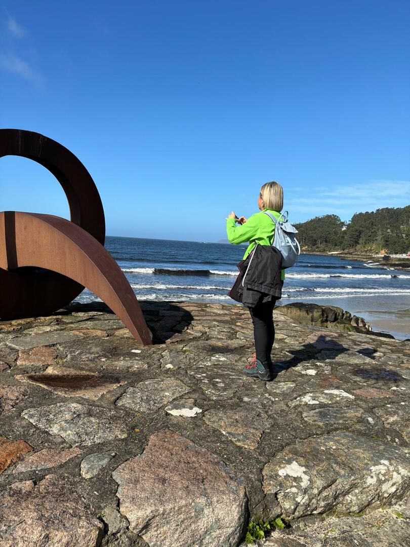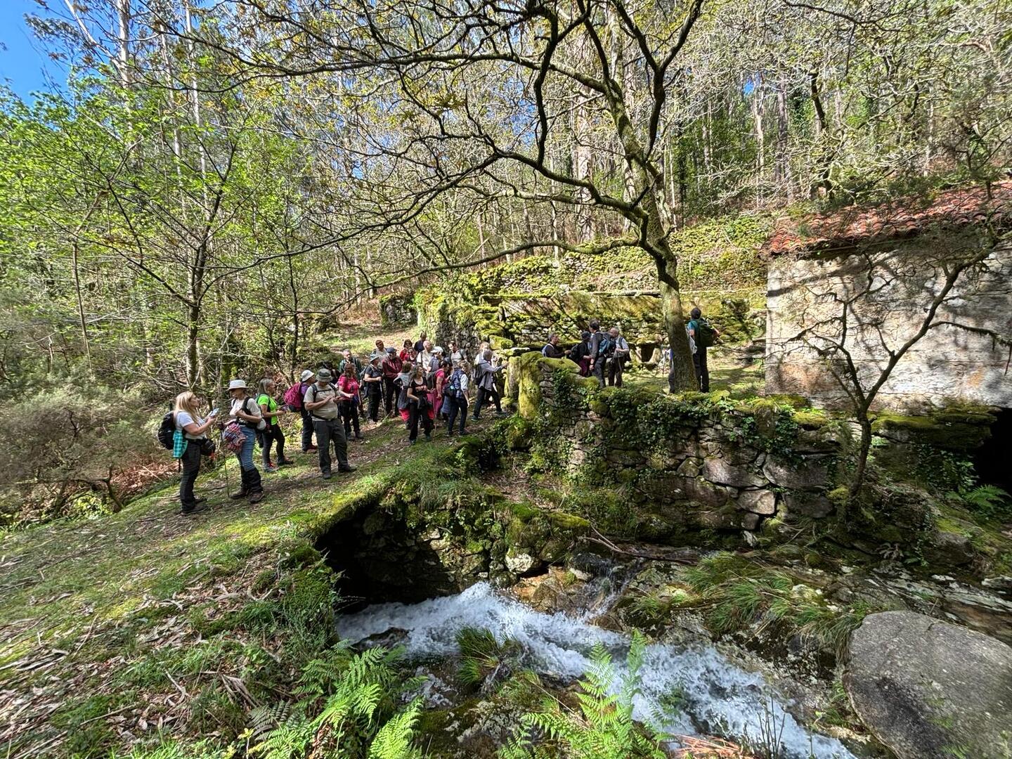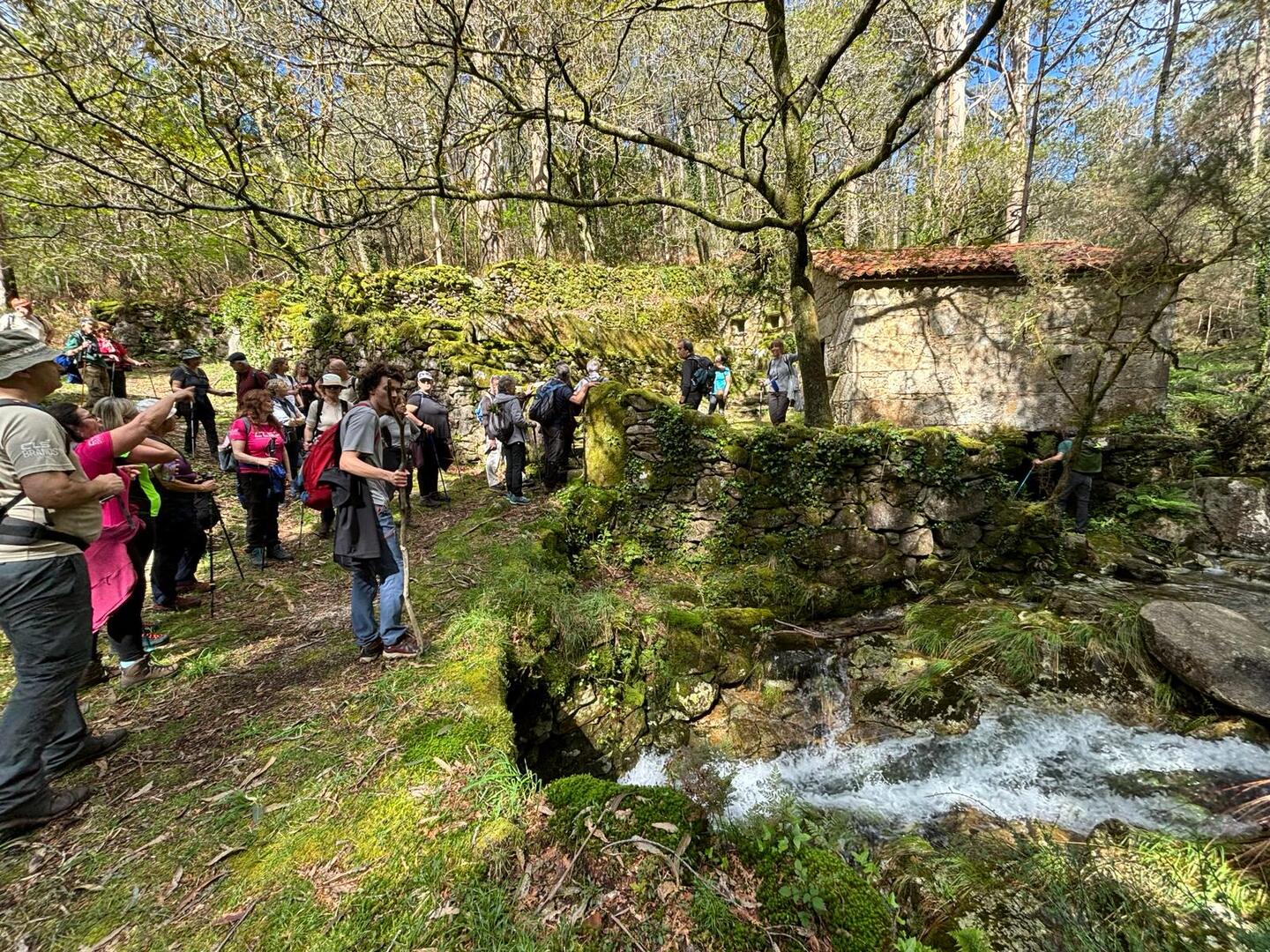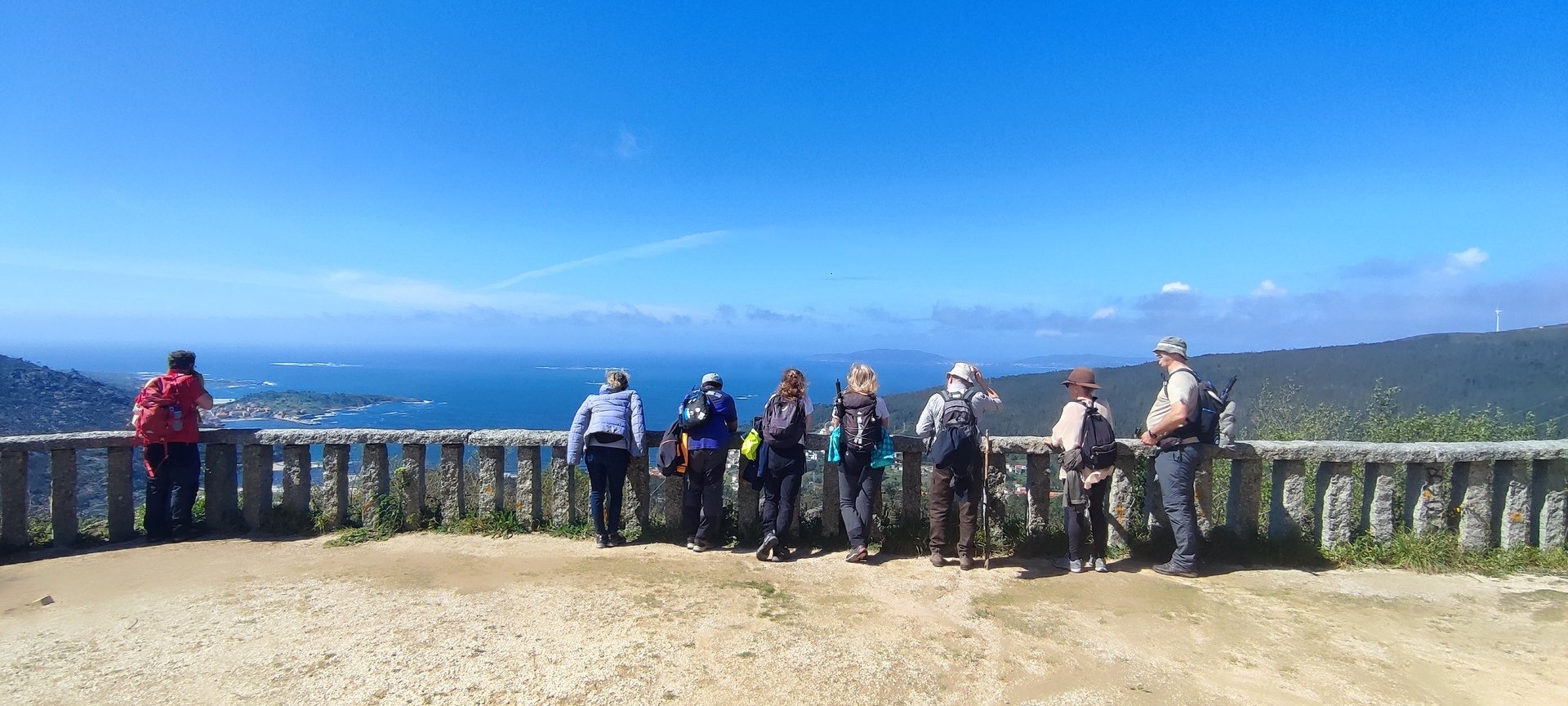 Estipulada a hora de saída para as 8h e 30m, e depois de um fenomenal pequeno-almoço, partimos rumo à cascata do Ezáro. Uma pequena avaria do autocarro durante a viagem quase nos impedia de atingir o objetivo, mas a rápida intervenção do motorista, resolveu a situação e pudemos continuar viagem. Chegados ao Ézaro, por volta das 9.45 horas, iniciamos a nossa caminhada, com cerca de 3,5 km que nos levou até aos moinhos Louredo. Já relativamente perto do Ézaro, o grupo resolveu dividir-se. Enquanto os mais resistentes foram até ao Miradouro, donde pudemos observar a magnifica paisagem da costa da morte.