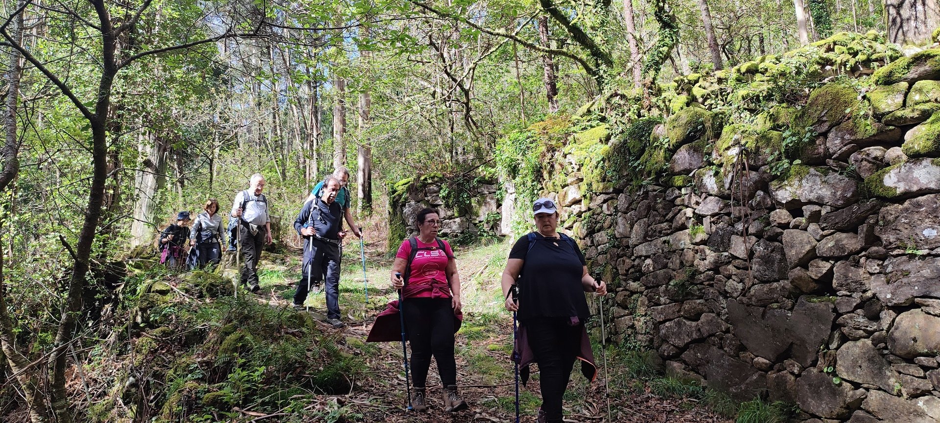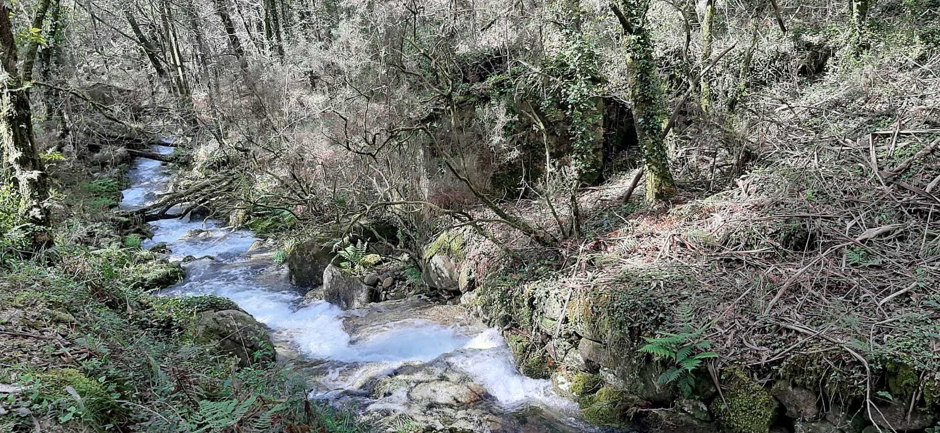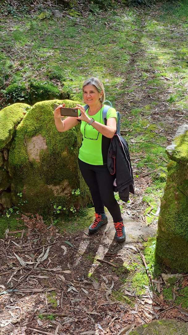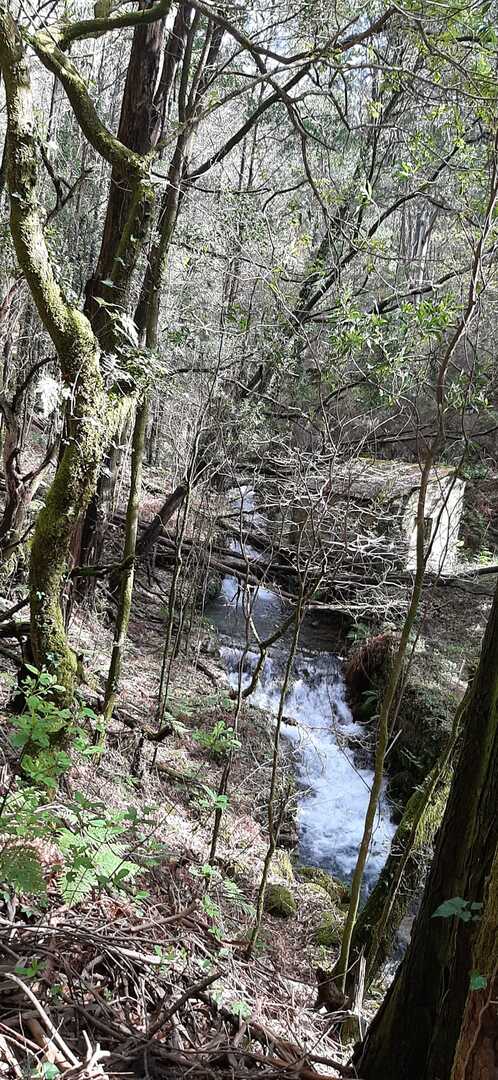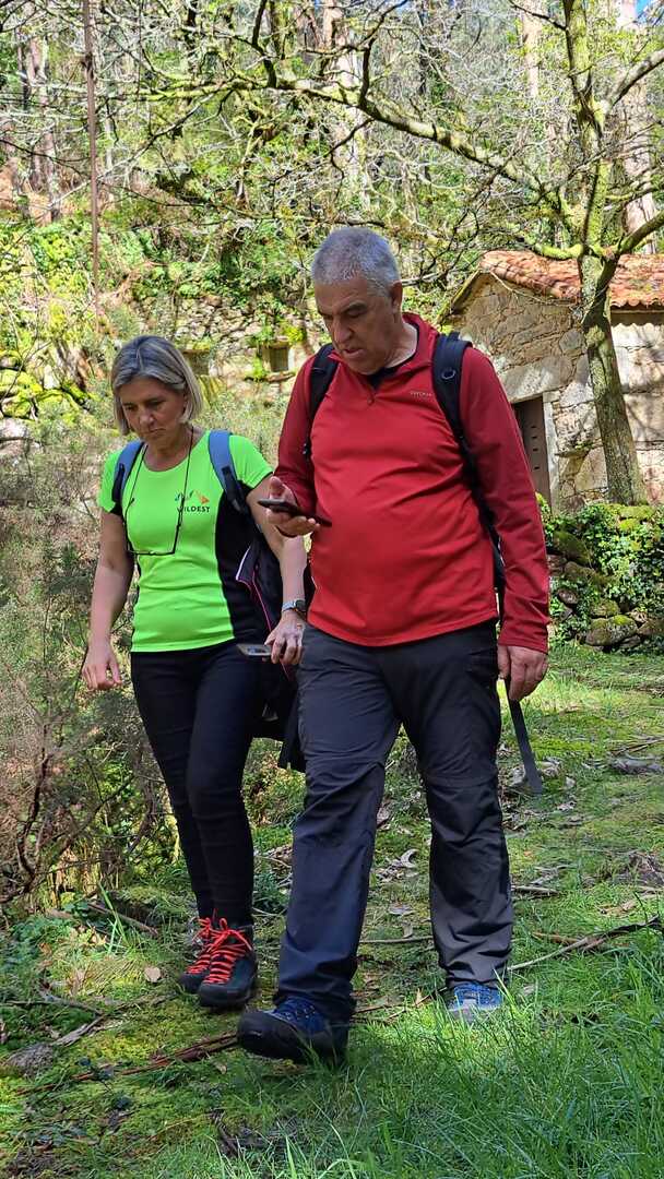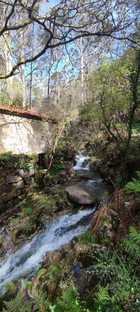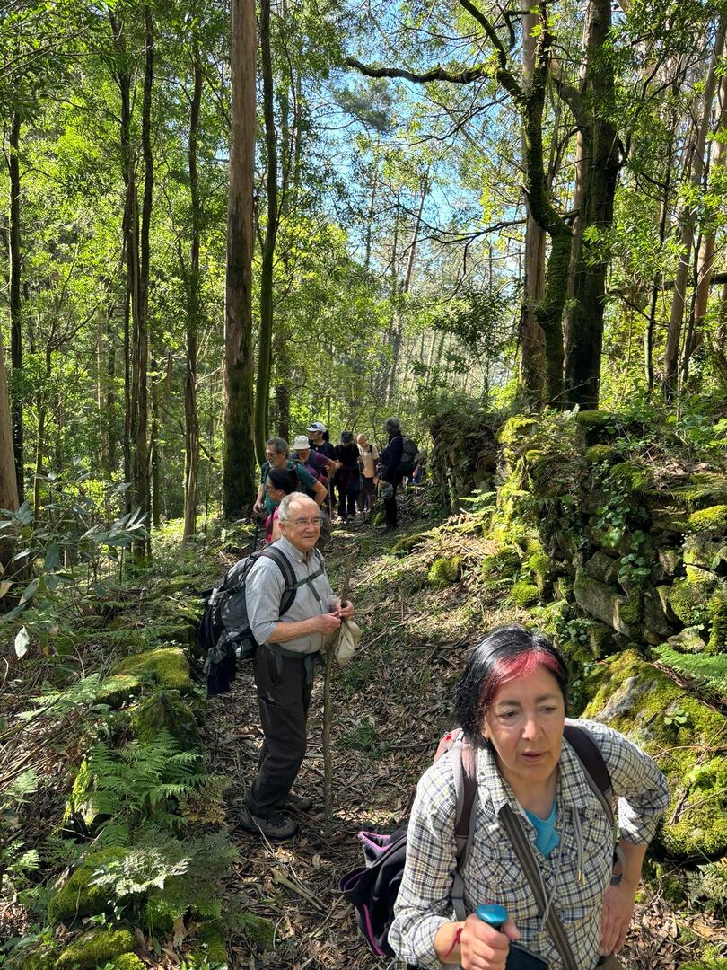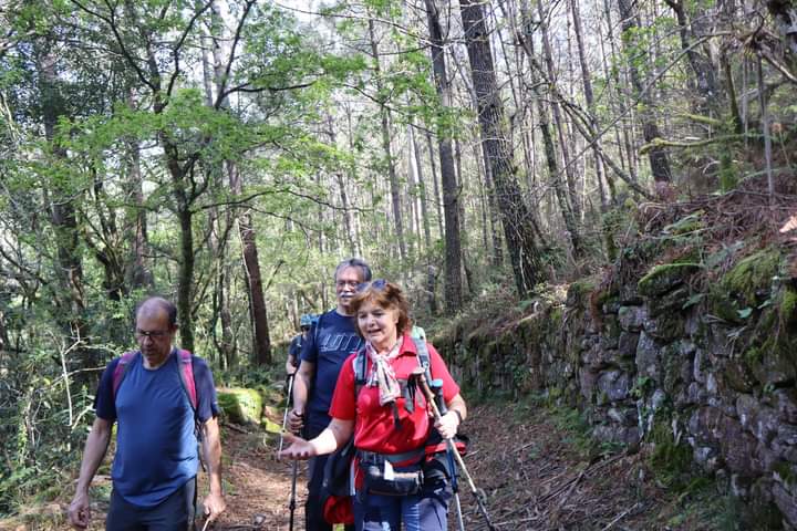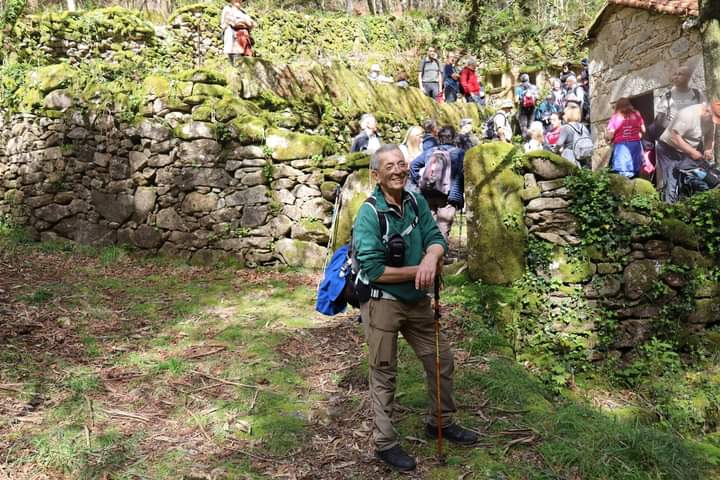 Percurso circular, com inicio no parque de estacionamento, junto a um belo parque de lazer, mesmo perto da Cascata do Ézaro. Seguimos junto a praia de Ézaro, e logo depois de atravessarmos a estrada de acesso a esta vila, começamos a subir, primeiro junto ao casario de Vila e logo enbrenhamo-nos por floresta junto ao rio Rosas, até aos Moinhos de Louredo. Depos foi fazer o retorno. Aqui, enquanto cerca de metade do grupo, resolveu seguir pelo caminho mais curto, com o objetivo, à Cascata do Ézaro. A outra metade resolveu, ser um pouco mais audaz, e foram ver as vistas sobre o Ézaro e muito mais além, desde o Miradouro com o mesmo nome. Daqui foi sempre a descer, até a Cascata, e daí até ao nosso ponto de partida