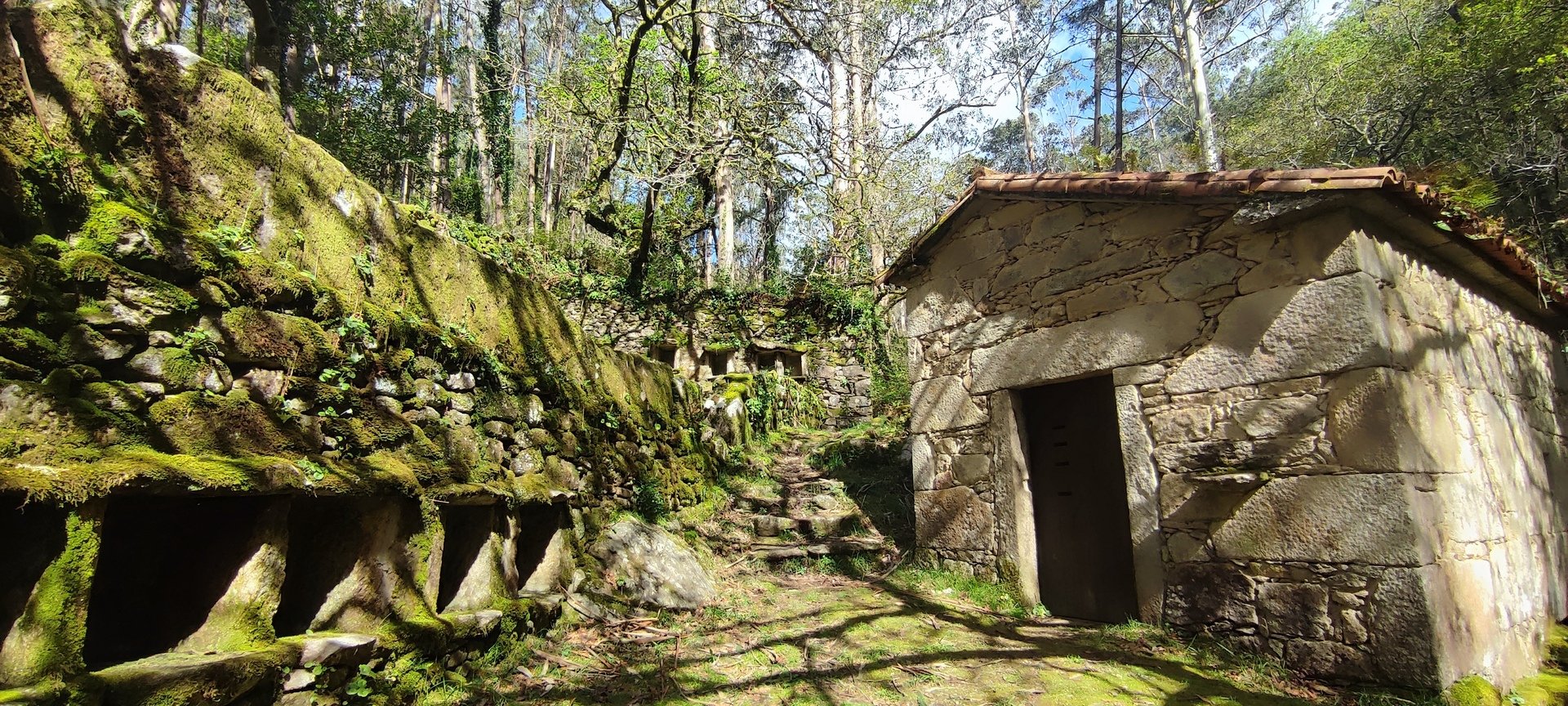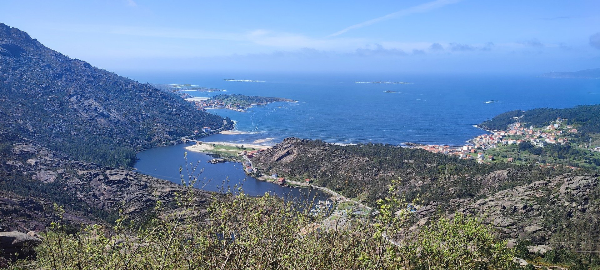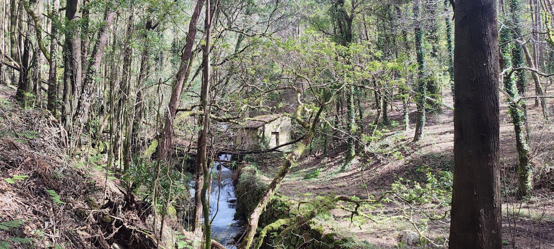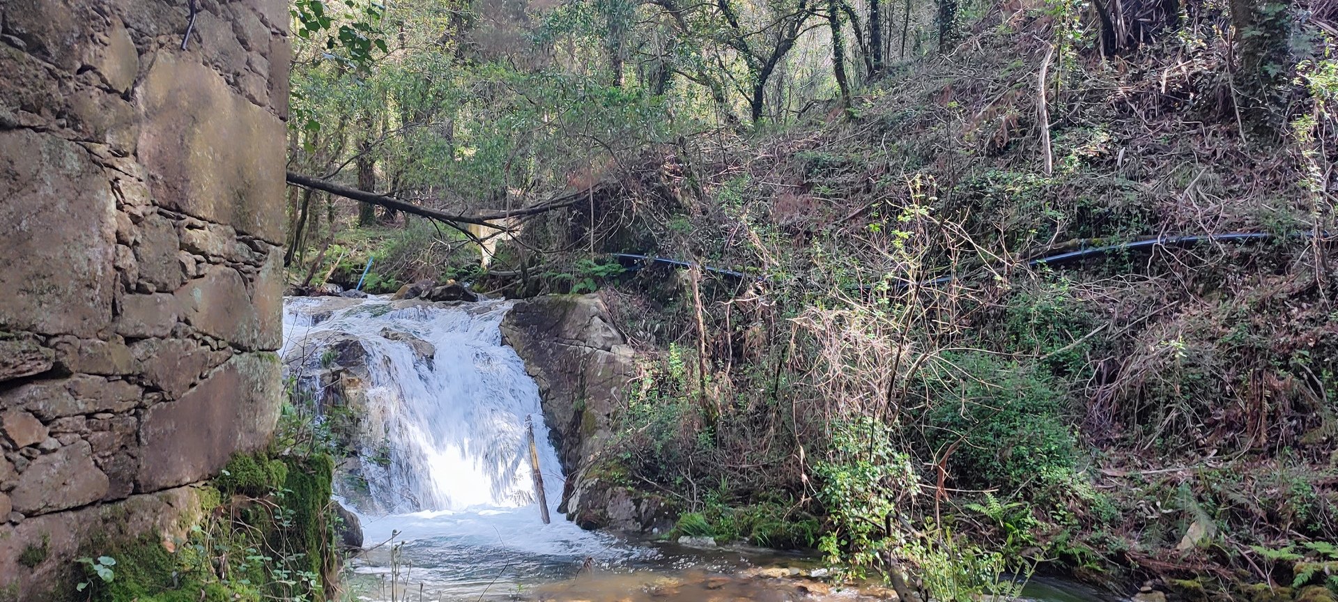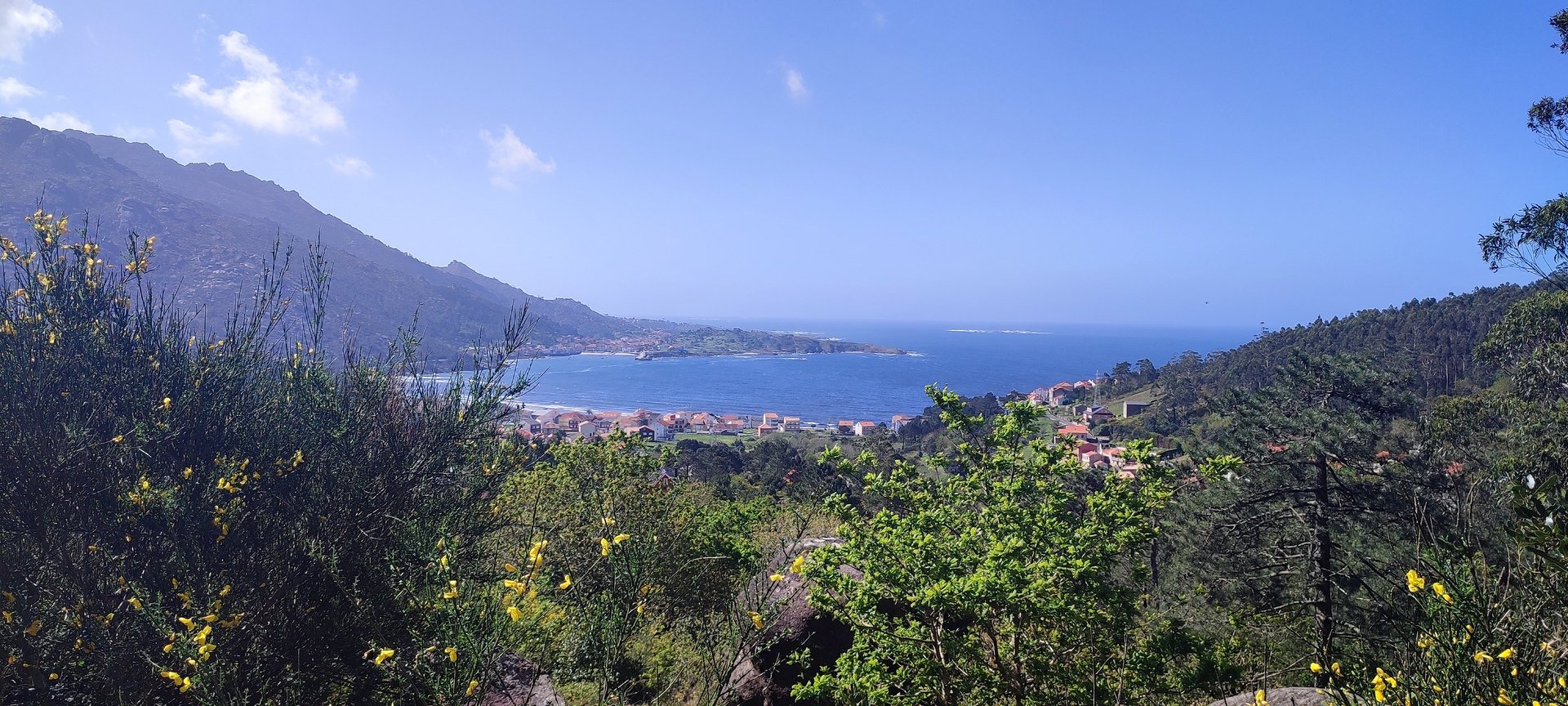 Percurso circular, com inicio no parque de estacionamento, junto a um belo parque de lazer, mesmo perto da Cascata do Ézaro. Seguimos junto a praia de Ézaro, e logo depois de atravessarmos a estrada de acesso a esta vila, começamos a subir, primeiro junto ao casario de Vila e logo enbrenhamo-nos por floresta junto ao rio Rosas, até aos Moinhos de Louredo. Depos foi fazer o retorno. Aqui, enquanto cerca de metade do grupo, resolveu seguir pelo caminho mais curto, com o objetivo, à Cascata do Ézaro. A outra metade resolveu, ser um pouco mais audaz, e foram ver as vistas sobre o Ézaro e muito mais além, desde o Miradouro com o mesmo nome. Daqui foi sempre a descer, até a Cascata, e daí até ao nosso ponto de partida