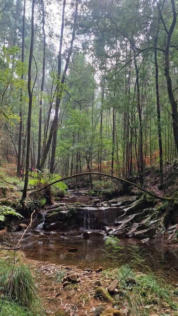 Ao iniciar o trilho, somos imediatamente cercados por uma vegetação exuberante com árvores altas, formando uma cobertura verde acima das nossas cabeças. O ar estava fresco e muito agradável, com o som saudável das águas que corriam pelo Rio Âncora. O solo sob os nossos pés variava entre trechos de terra batida e tufos de folhas caídas com cheiro a terra húmida.