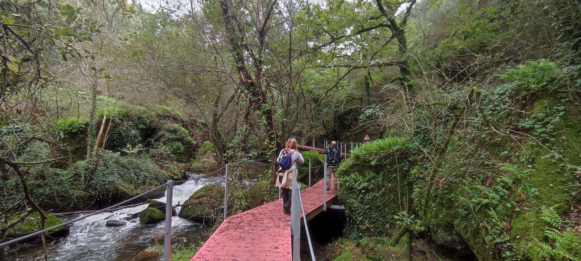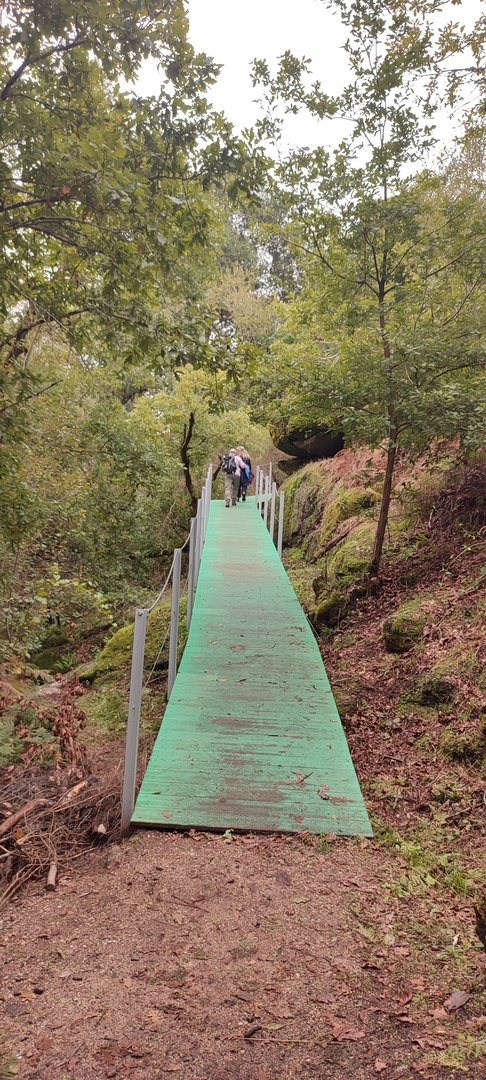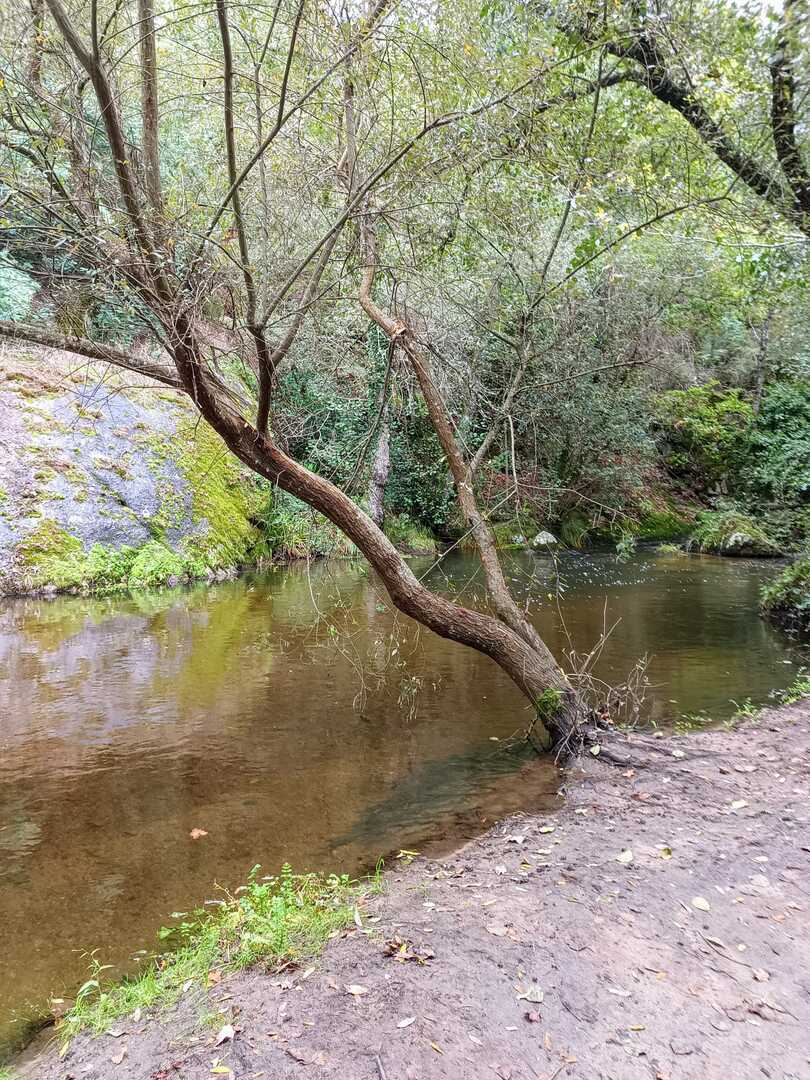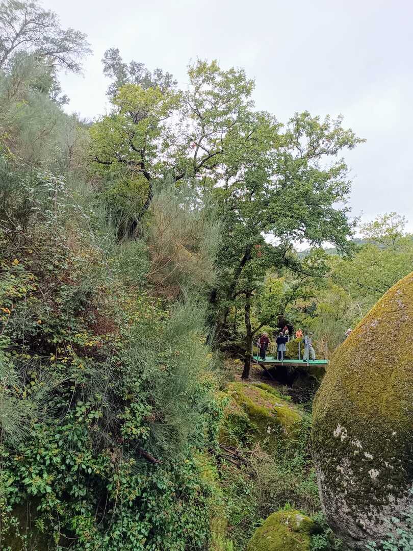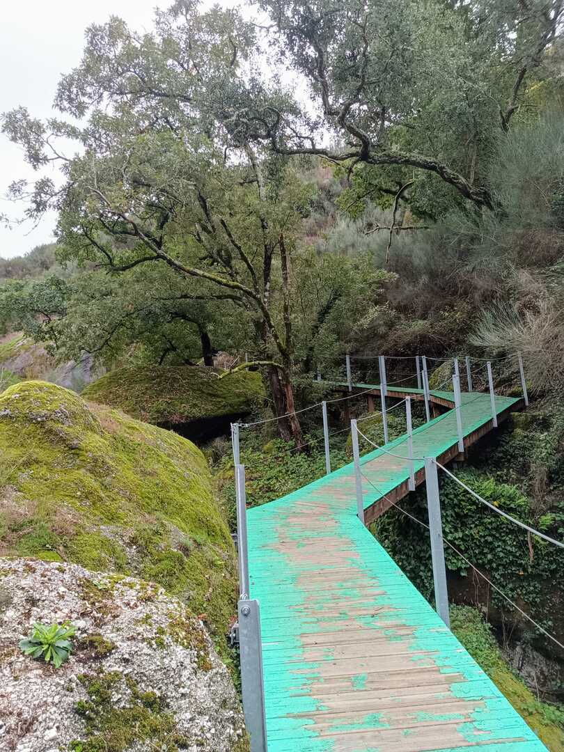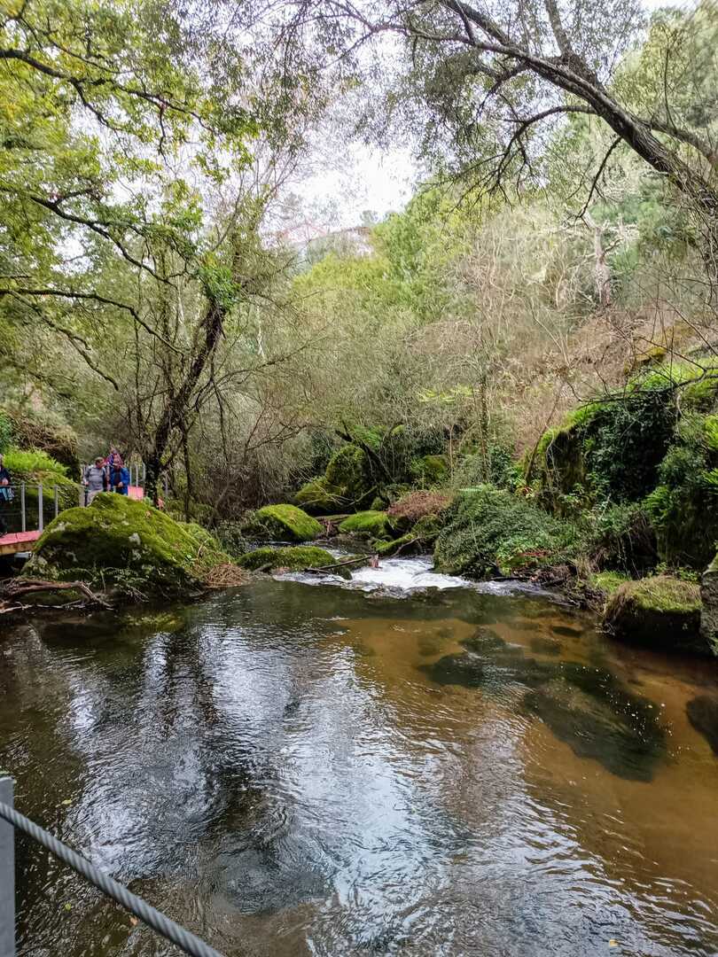 O trilho foi muito agradável pela sua verdura, frescura e paisagem bem como pelas pequenas cascatas e lagoas que se vão formando ao longo do leito do rio de Cavalos, o selvagem afluente do rio Mondego. Chamam-lhe “o rio que se esconde”, pois por vezes desaparece debaixo dos penedos como se estivesse a jogar ao esconde-esconde embora se continue a ouvir o ruido das suas águas. Ao longo do trilho, somos presenteados com os multicoloridos passadiços de madeira construídos apenas em locais de difícil passagem e que alternam, e ainda bem, com muitos caminhos verdadeiramente naturais. Podemos observar vestígios de antigas azenhas que eram alimentadas pela força das águas deste pequeno, mas sinuoso, rio. Continuando a caminhada, chegámos à milenar Ponte Romana de Sumes, construída sobre o Rio de Cavalos, e assente diretamente no afloramento granítico e que funcionou, provavelmente, como elo de ligação da civitas romana da Bobadela (Elbocoris ou Velladis) à civitas de Viseu (Vissaium). Esta ponte está classificada como imóvel de interesse público.