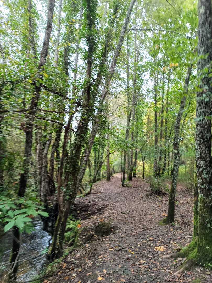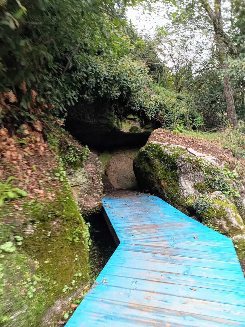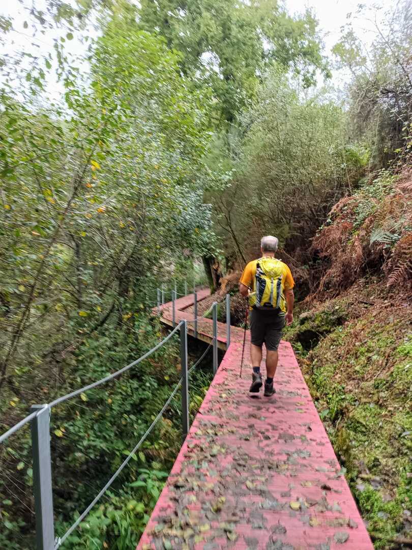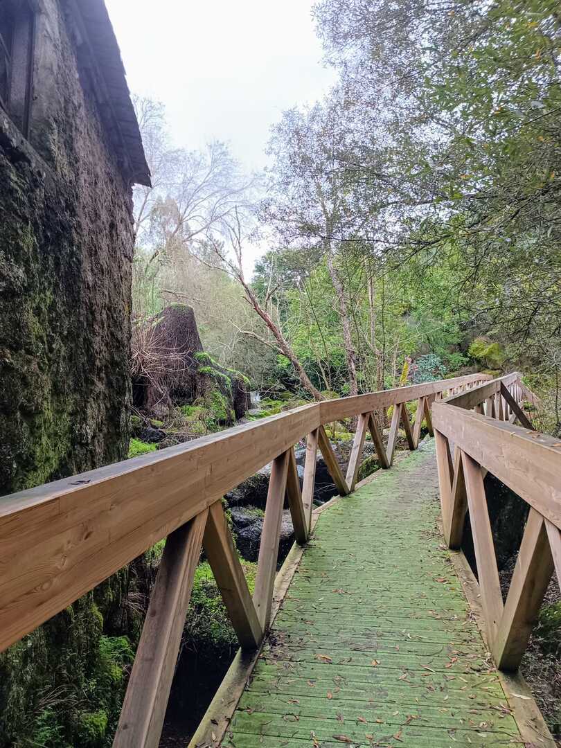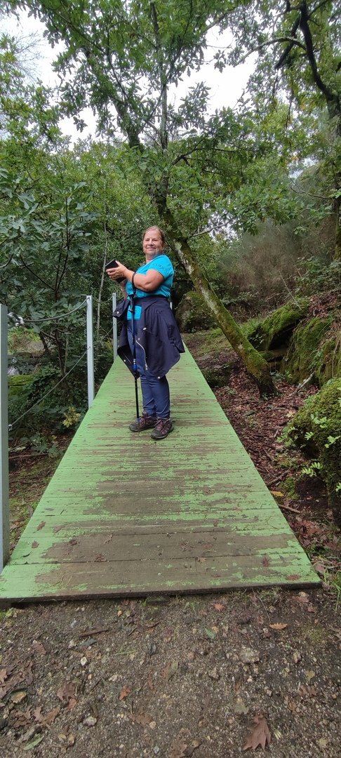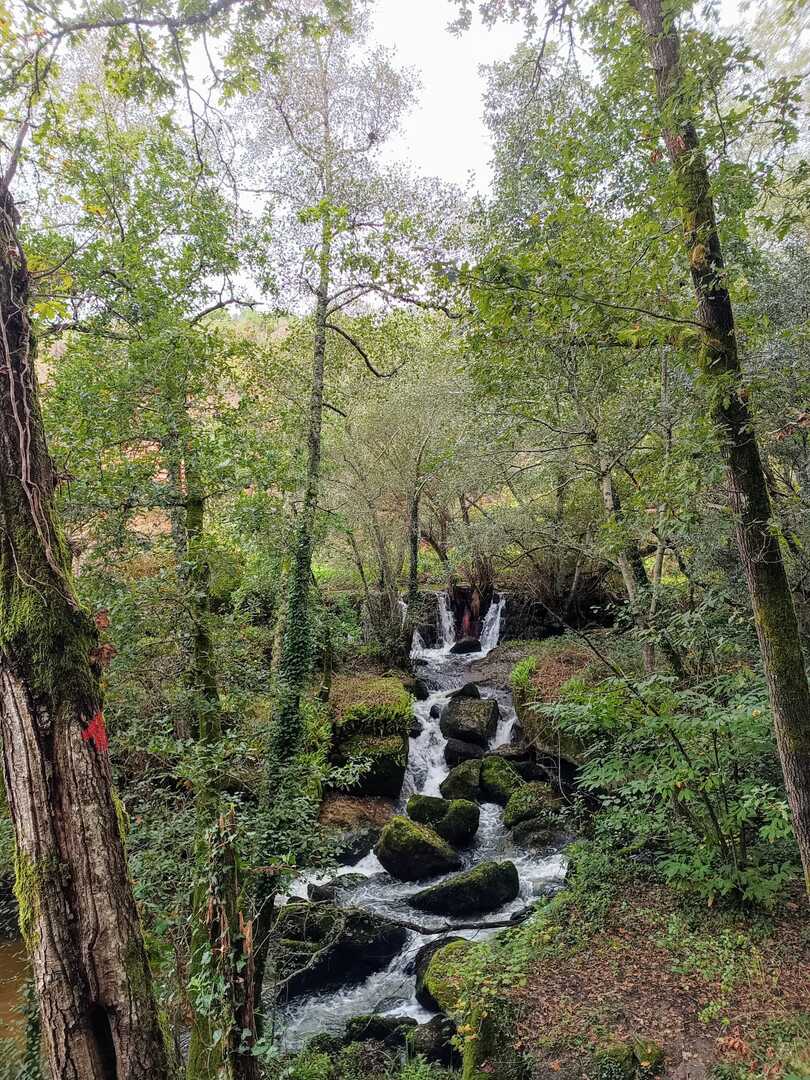 O trilho foi muito agradável pela sua verdura, frescura e paisagem bem como pelas pequenas cascatas e lagoas que se vão formando ao longo do leito do rio de Cavalos, o selvagem afluente do rio Mondego. Chamam-lhe “o rio que se esconde”, pois por vezes desaparece debaixo dos penedos como se estivesse a jogar ao esconde-esconde embora se continue a ouvir o ruido das suas águas. Ao longo do trilho, somos presenteados com os multicoloridos passadiços de madeira construídos apenas em locais de difícil passagem e que alternam, e ainda bem, com muitos caminhos verdadeiramente naturais. Podemos observar vestígios de antigas azenhas que eram alimentadas pela força das águas deste pequeno, mas sinuoso, rio. Continuando a caminhada, chegámos à milenar Ponte Romana de Sumes, construída sobre o Rio de Cavalos, e assente diretamente no afloramento granítico e que funcionou, provavelmente, como elo de ligação da civitas romana da Bobadela (Elbocoris ou Velladis) à civitas de Viseu (Vissaium). Esta ponte está classificada como imóvel de interesse público.