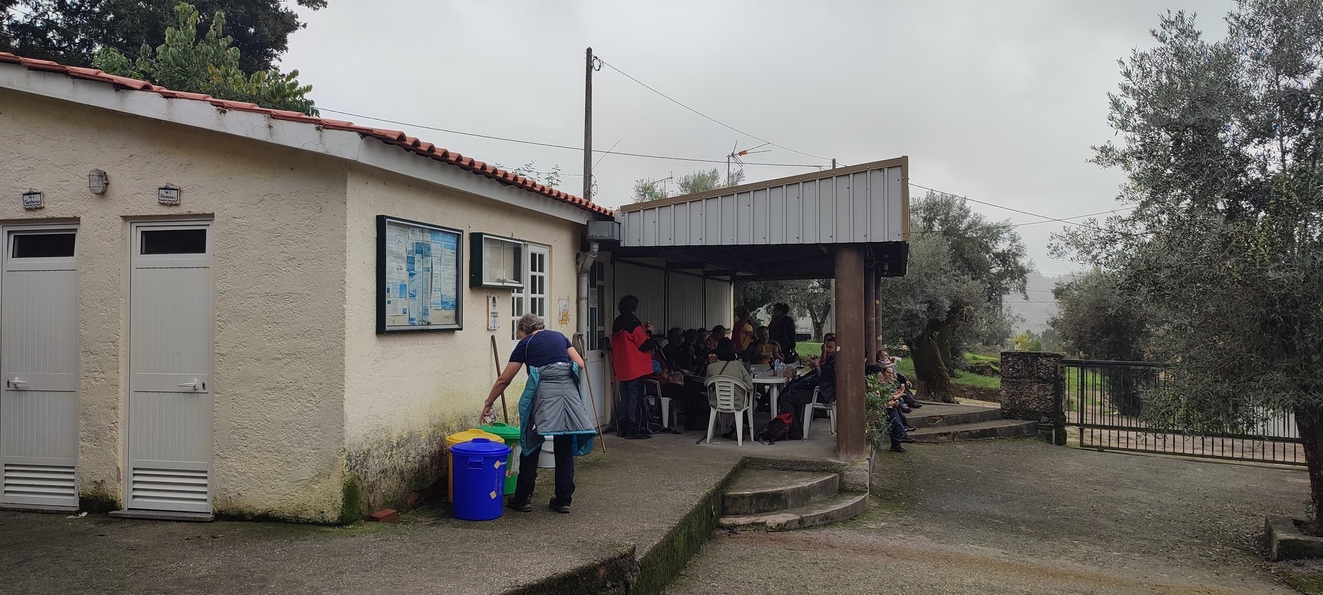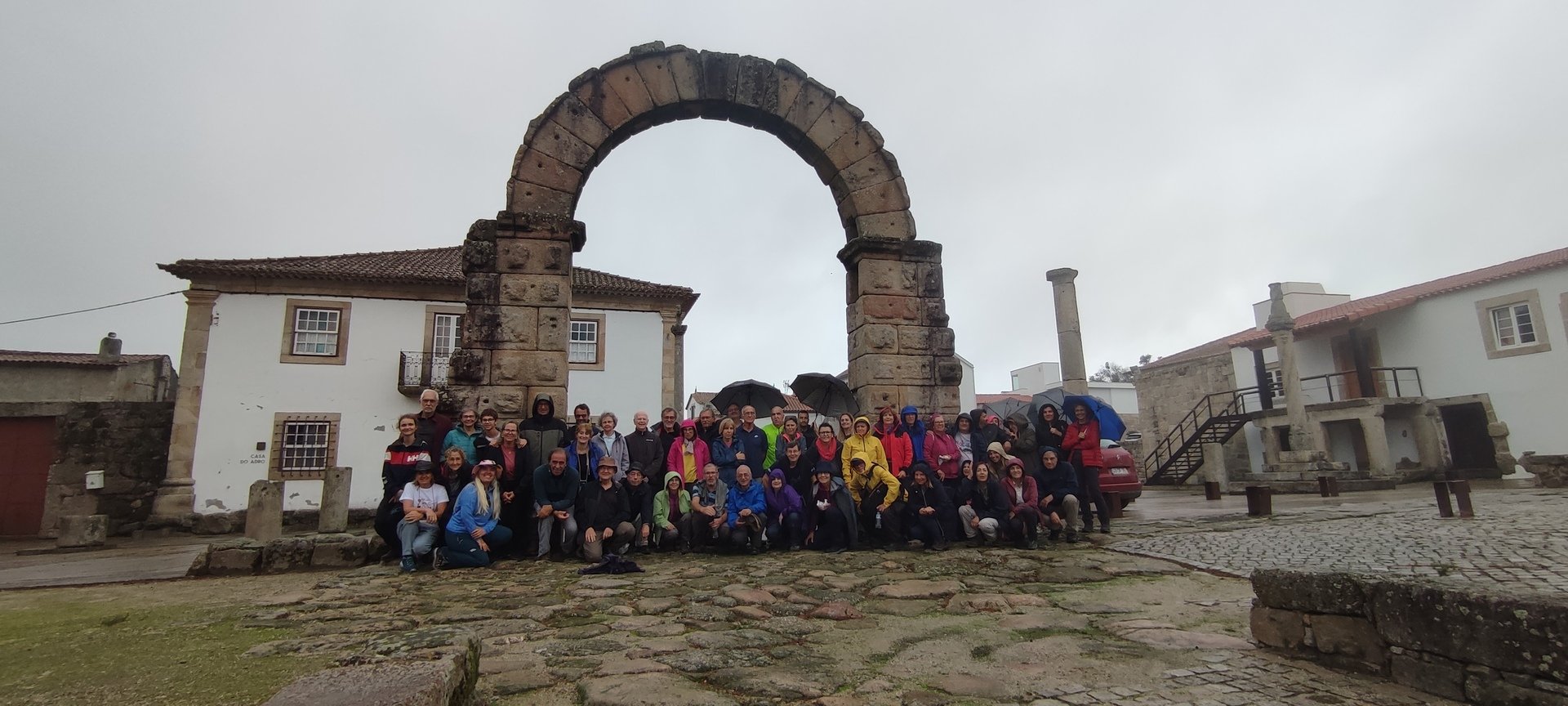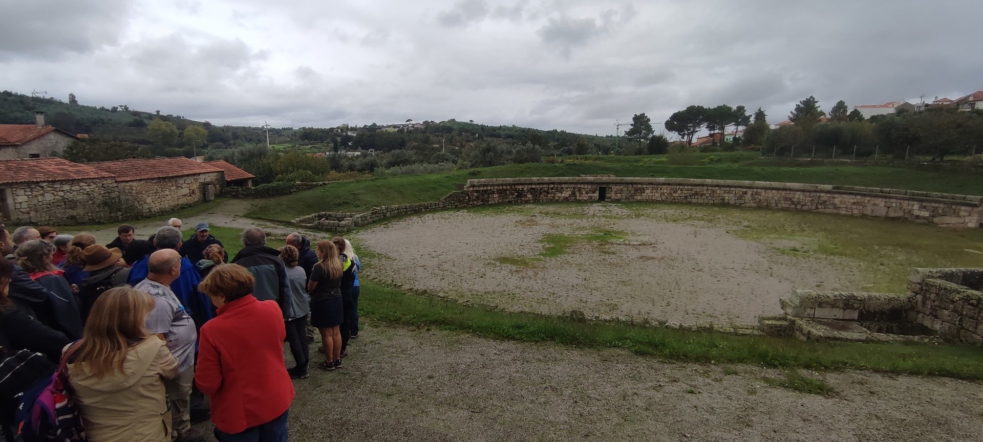 Começou uma chuvinha leve mas persistente, o que não impediu que almoçássemos pois abrigámo-nos nas instalações exteriores da Associação Cultural da localidade. Após o almoço continuámos o caminho passando, entretanto, por um lugar de nome Ribeira – Aldeia Madeiro onde, e para contentamento de alguns, houve a possibilidade de tomarem um café quente num espaço improvável. Retemperados e animados pela cafeína prosseguimos os restantes 3 kms até Vila Nova de Oliveirinha onde o autocarro nos aguardava para nos levar ao Centro Interpretativo de Bobadela onde vimos um documentário dedicado ao tema sobre esta antiga cidade romana. Bobadela - Splendissima Civitas – que já foi cidade romana (fundada no tempo de Augusto, o primeiro imperador de Roma) cuja riqueza se dividia entre o azeite, o vinho, o ouro, a abundância de água, as terras férteis e onde ainda se podem observar remanescências romanas: o arco monumental romano (arco de volta perfeita, situado mesmo em frente à Igreja de Nossa Senhora da Graça, uma das “portas de entrada” para o fórum), classificado como Monumento Nacional; vestígios do Anfiteatro com forma elíptica e talhado num afloramento rochoso, cuja a arena foi um espaço lúdico onde decorreram jogos e lutas de gladiadores para entretenimento da população local que ocuparia bancadas, provavelmente, feitas de madeira. Pudemos observar alguns artefactos encontrados aquando das escavações, bem como moedas e várias amostras de cerâmica de épocas diferentes.