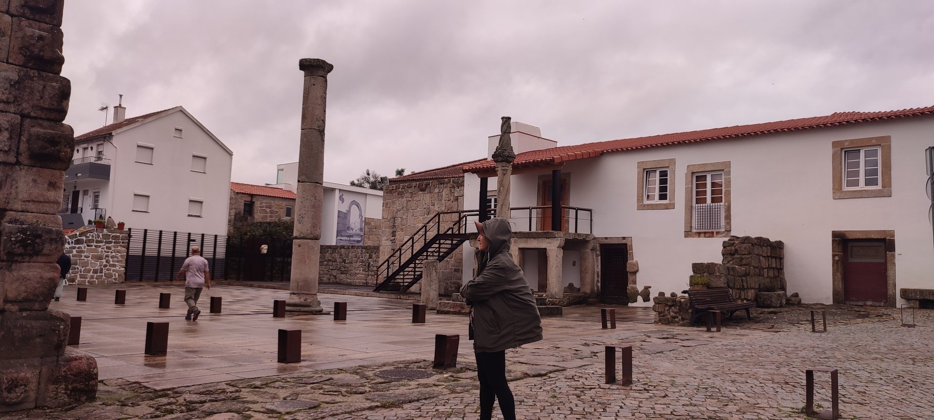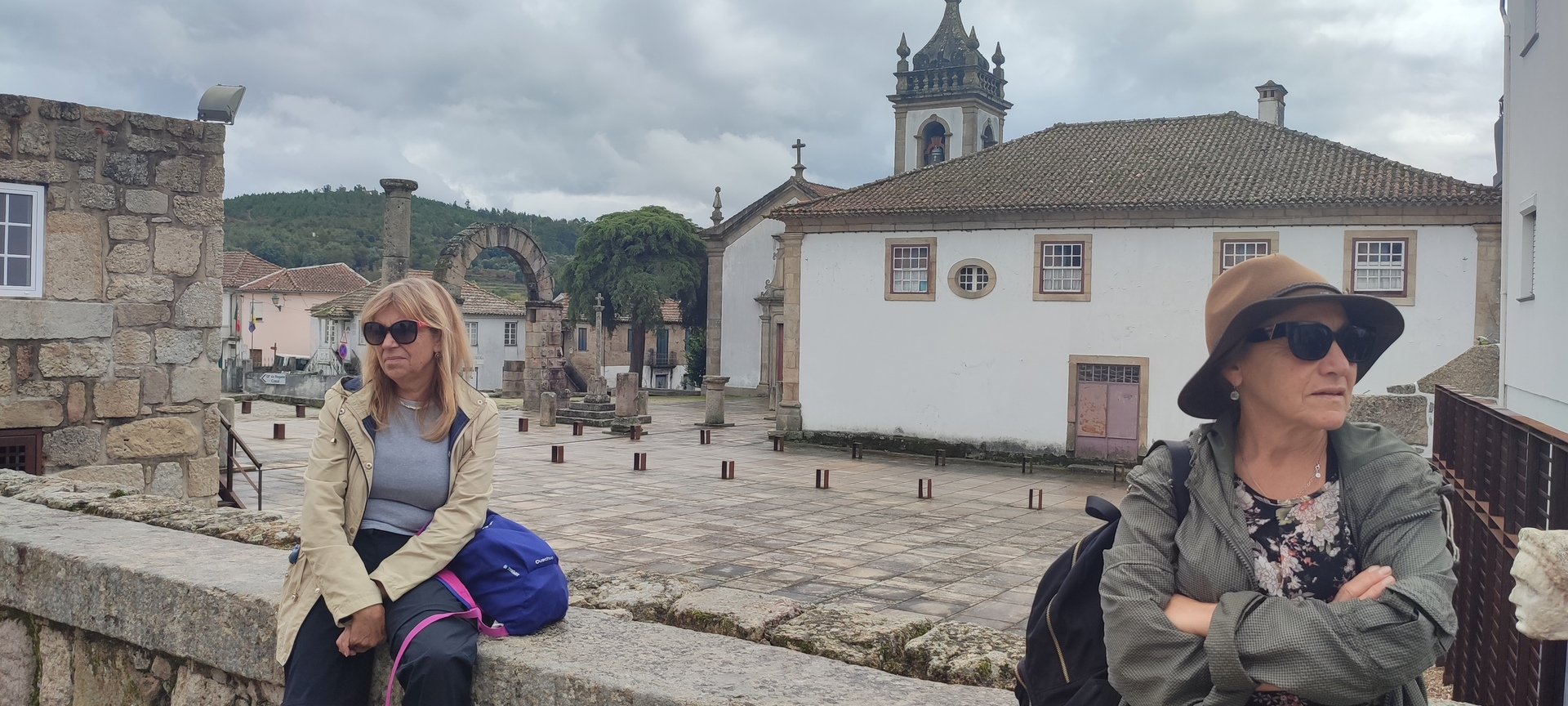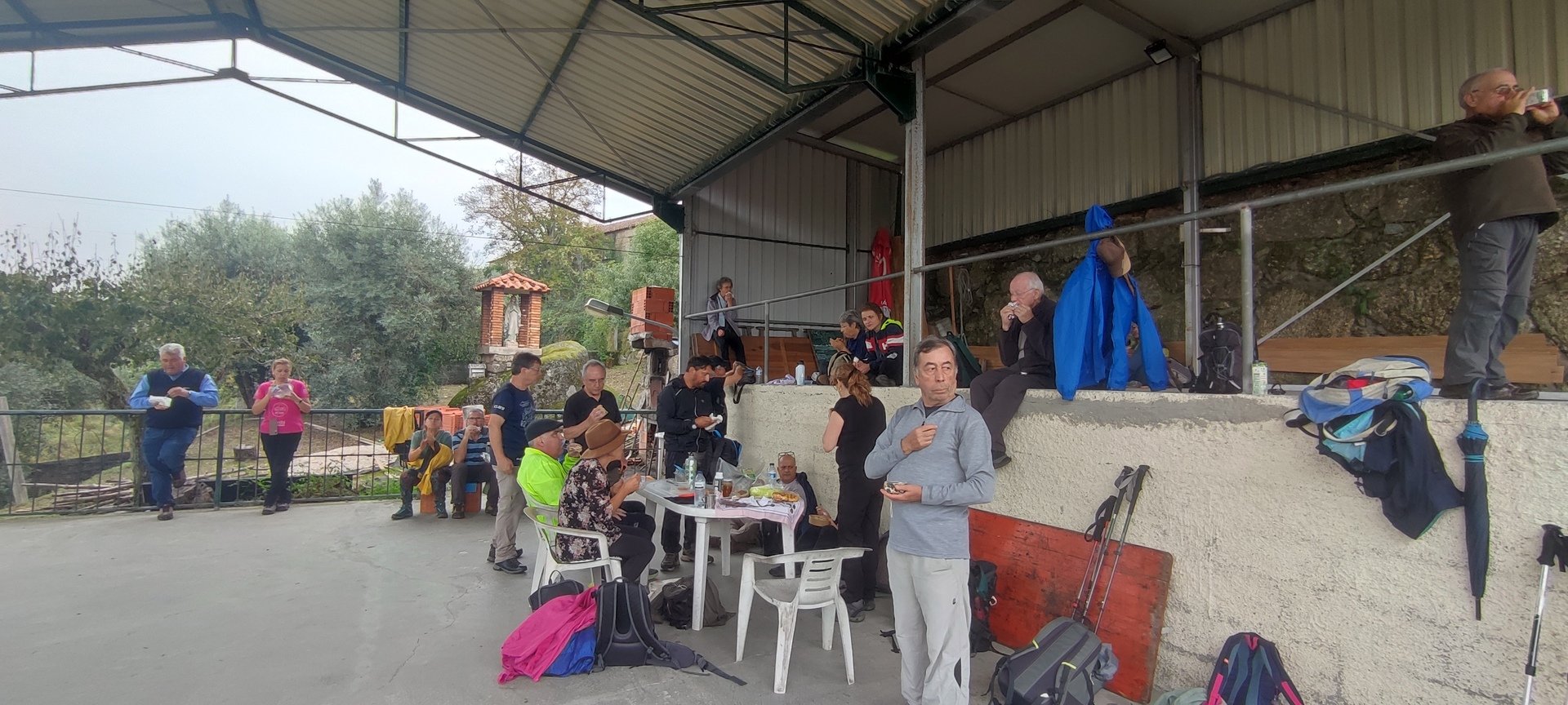 Começou uma chuvinha leve mas persistente, o que não impediu que almoçássemos pois abrigámo-nos nas instalações exteriores da Associação Cultural da localidade. Após o almoço continuámos o caminho passando, entretanto, por um lugar de nome Ribeira – Aldeia Madeiro onde, e para contentamento de alguns, houve a possibilidade de tomarem um café quente num espaço improvável. Retemperados e animados pela cafeína prosseguimos os restantes 3 kms até Vila Nova de Oliveirinha onde o autocarro nos aguardava para nos levar ao Centro Interpretativo de Bobadela onde vimos um documentário dedicado ao tema sobre esta antiga cidade romana. Bobadela - Splendissima Civitas – que já foi cidade romana (fundada no tempo de Augusto, o primeiro imperador de Roma) cuja riqueza se dividia entre o azeite, o vinho, o ouro, a abundância de água, as terras férteis e onde ainda se podem observar remanescências romanas: o arco monumental romano (arco de volta perfeita, situado mesmo em frente à Igreja de Nossa Senhora da Graça, uma das “portas de entrada” para o fórum), classificado como Monumento Nacional; vestígios do Anfiteatro com forma elíptica e talhado num afloramento rochoso, cuja a arena foi um espaço lúdico onde decorreram jogos e lutas de gladiadores para entretenimento da população local que ocuparia bancadas, provavelmente, feitas de madeira. Pudemos observar alguns artefactos encontrados aquando das escavações, bem como moedas e várias amostras de cerâmica de épocas diferentes.
