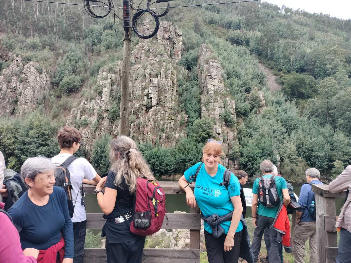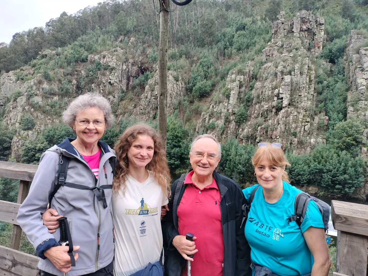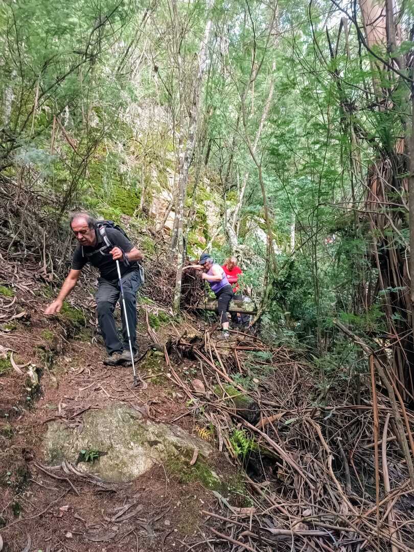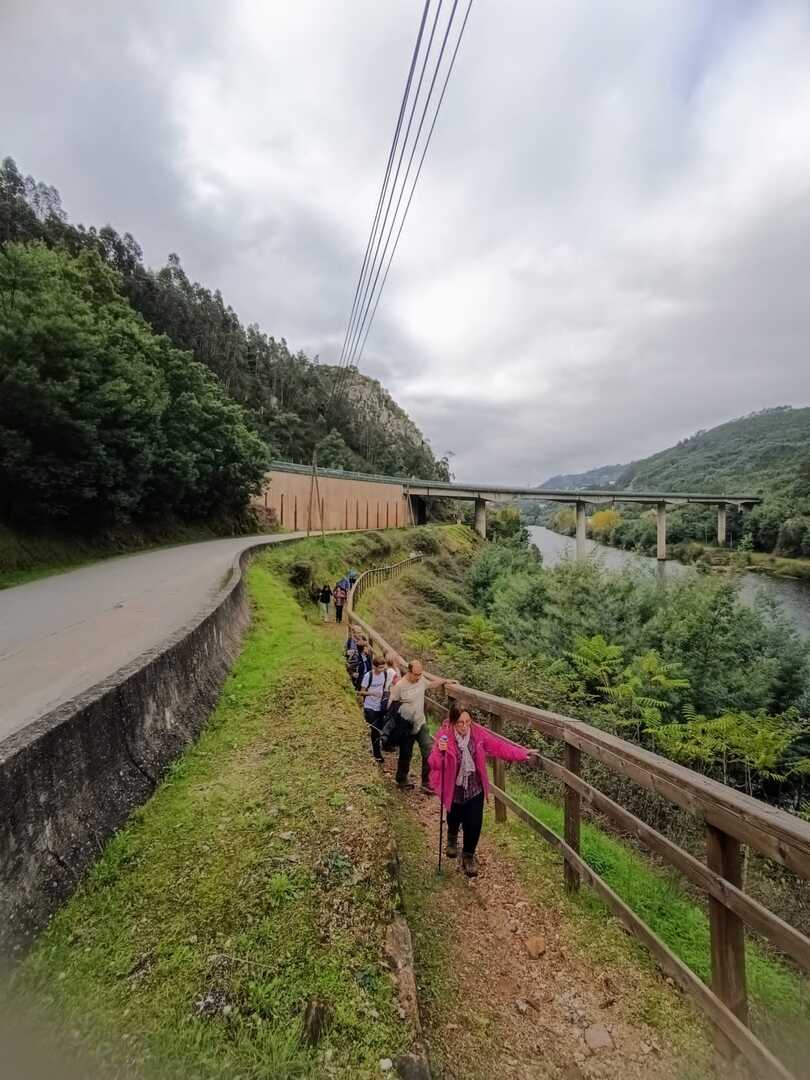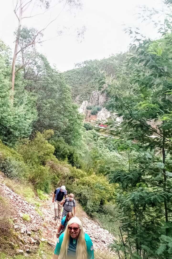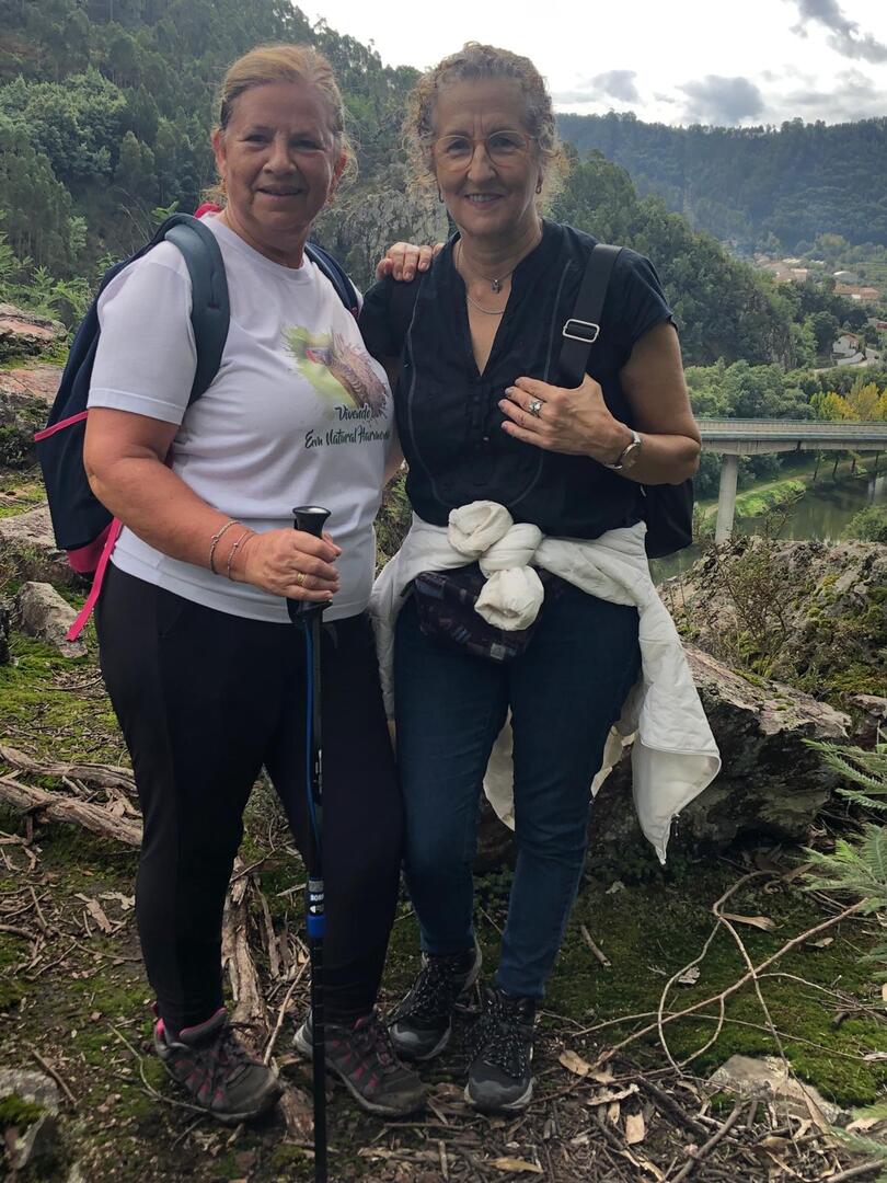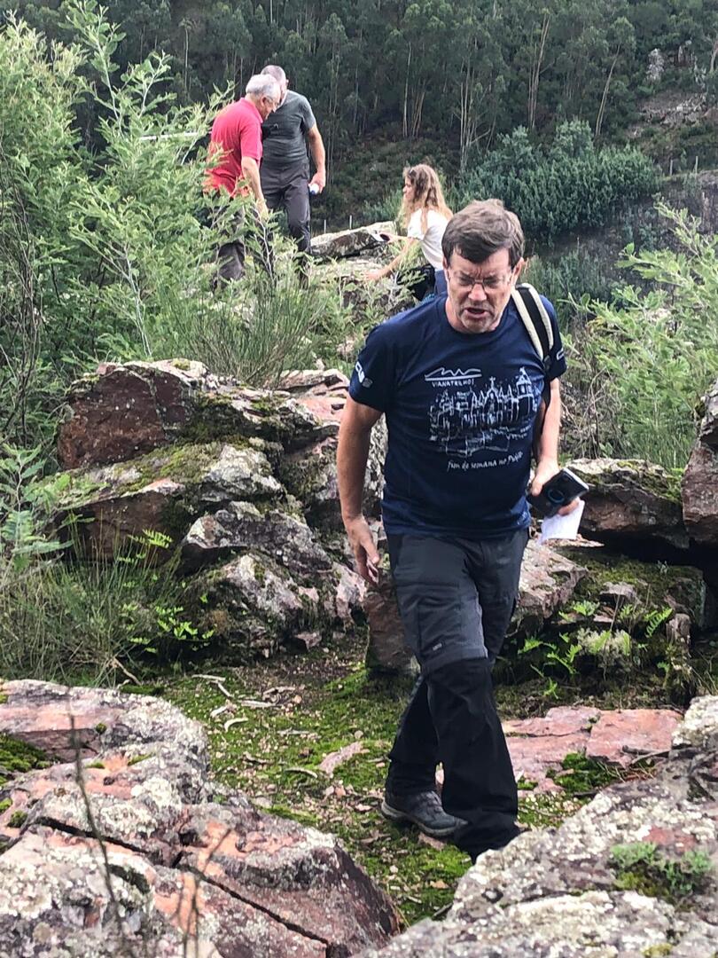 Iniciamos a nossa caminhada denominada Trilho da Livraria do Mondego. Numa primeira fase, o trilho era fácil com uma bonita paisagem pelas margens do rio Mondego, seguimos caminho pelos passadiços até ao miradouro da livraria, aqui, pudemos tirar fotos a esta bela formação geológica localizada no vale do Rio Mondego, a biblioteca mais antiga do mundo que consiste numa série de grandes camadas de quartzito dispostas em estratos sobrepostos de um livro aberto, daí o nome “livraria”. p>E, depois de tanto subir é claro que a partir daqui era só descer, e descemos devagar pois o percurso era, difícil e, todo o cuidado era pouco, mas cada um, de olhos postos outro, íamos descendo de gatas de cú arrasto, da forma que nos sentíamos seguros para que não houvesse nenhuma situação desagradável.