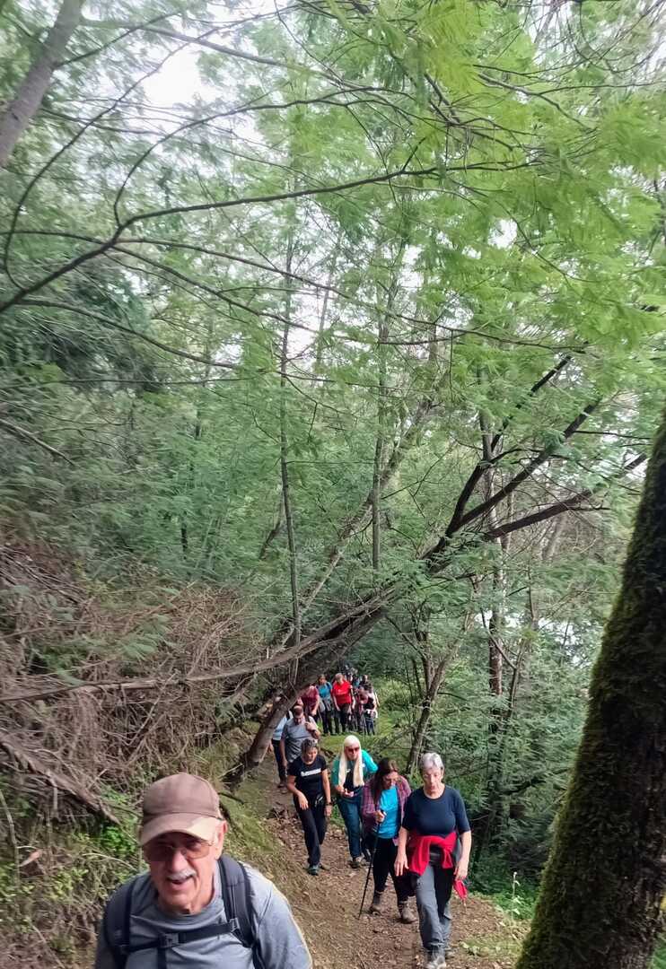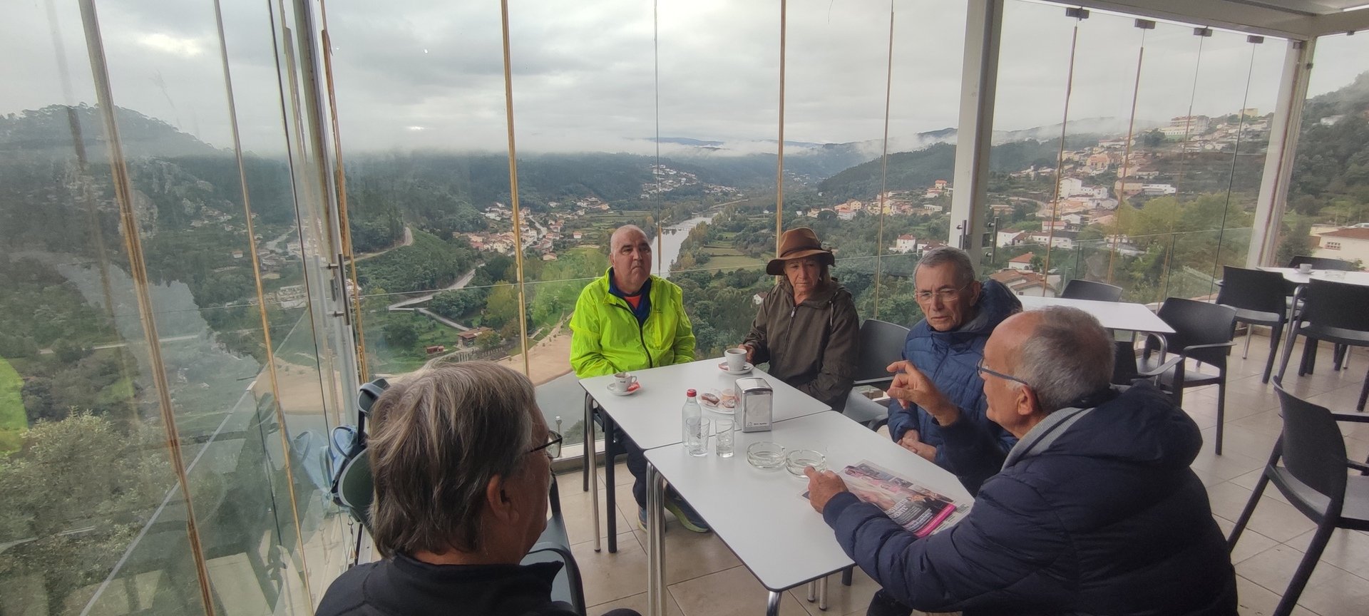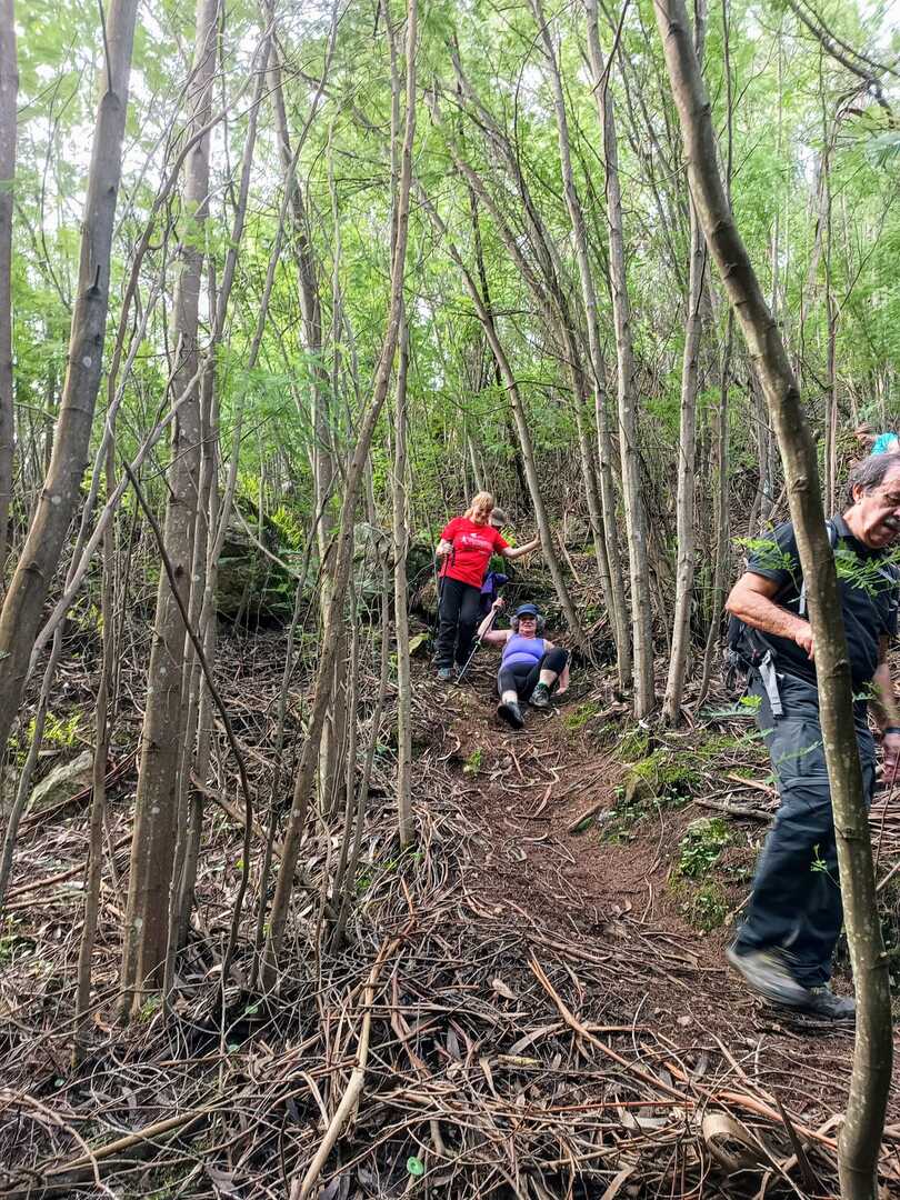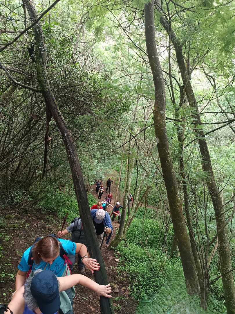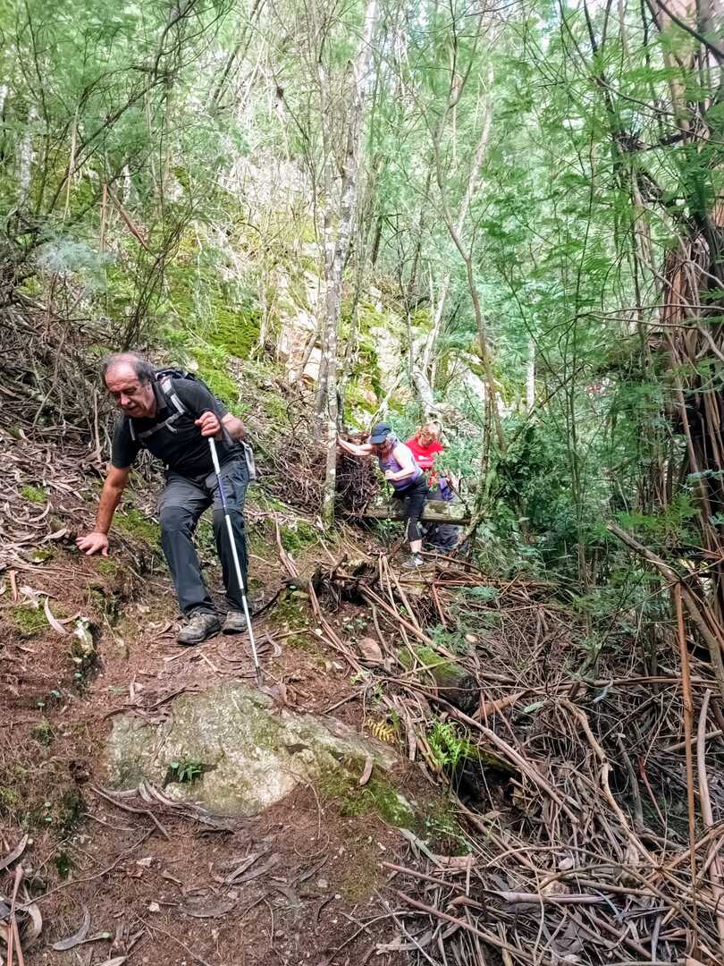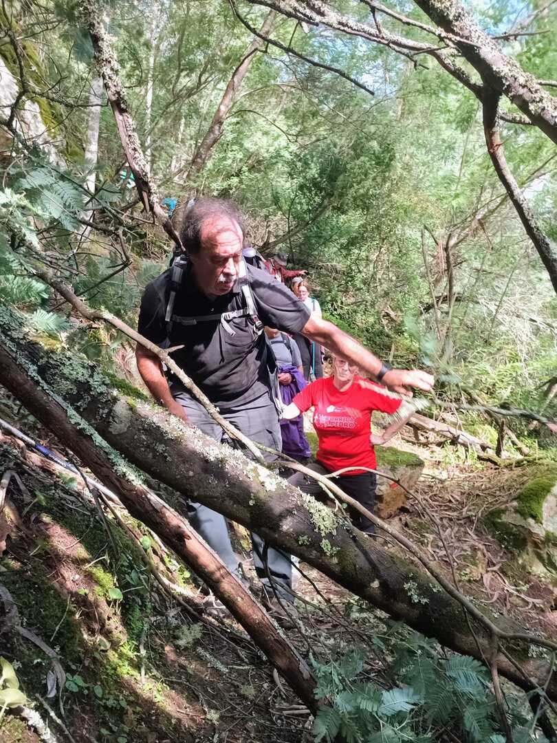 Iniciamos a nossa caminhada denominada Trilho da Livraria do Mondego. Numa primeira fase, o trilho era fácil com uma bonita paisagem pelas margens do rio Mondego, seguimos caminho pelos passadiços até ao miradouro da livraria, aqui, pudemos tirar fotos a esta bela formação geológica localizada no vale do Rio Mondego, a biblioteca mais antiga do mundo que consiste numa série de grandes camadas de quartzito dispostas em estratos sobrepostos de um livro aberto, daí o nome “livraria”. p>E, depois de tanto subir é claro que a partir daqui era só descer, e descemos devagar pois o percurso era, difícil e, todo o cuidado era pouco, mas cada um, de olhos postos outro, íamos descendo de gatas de cú arrasto, da forma que nos sentíamos seguros para que não houvesse nenhuma situação desagradável.