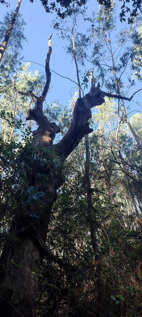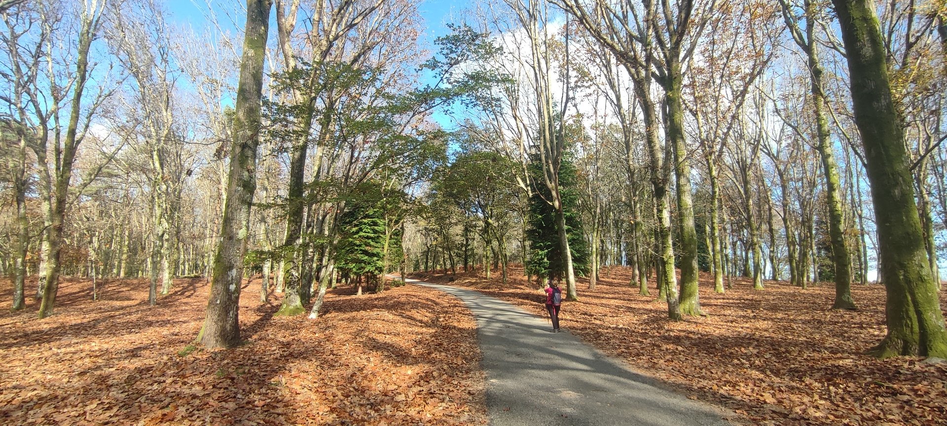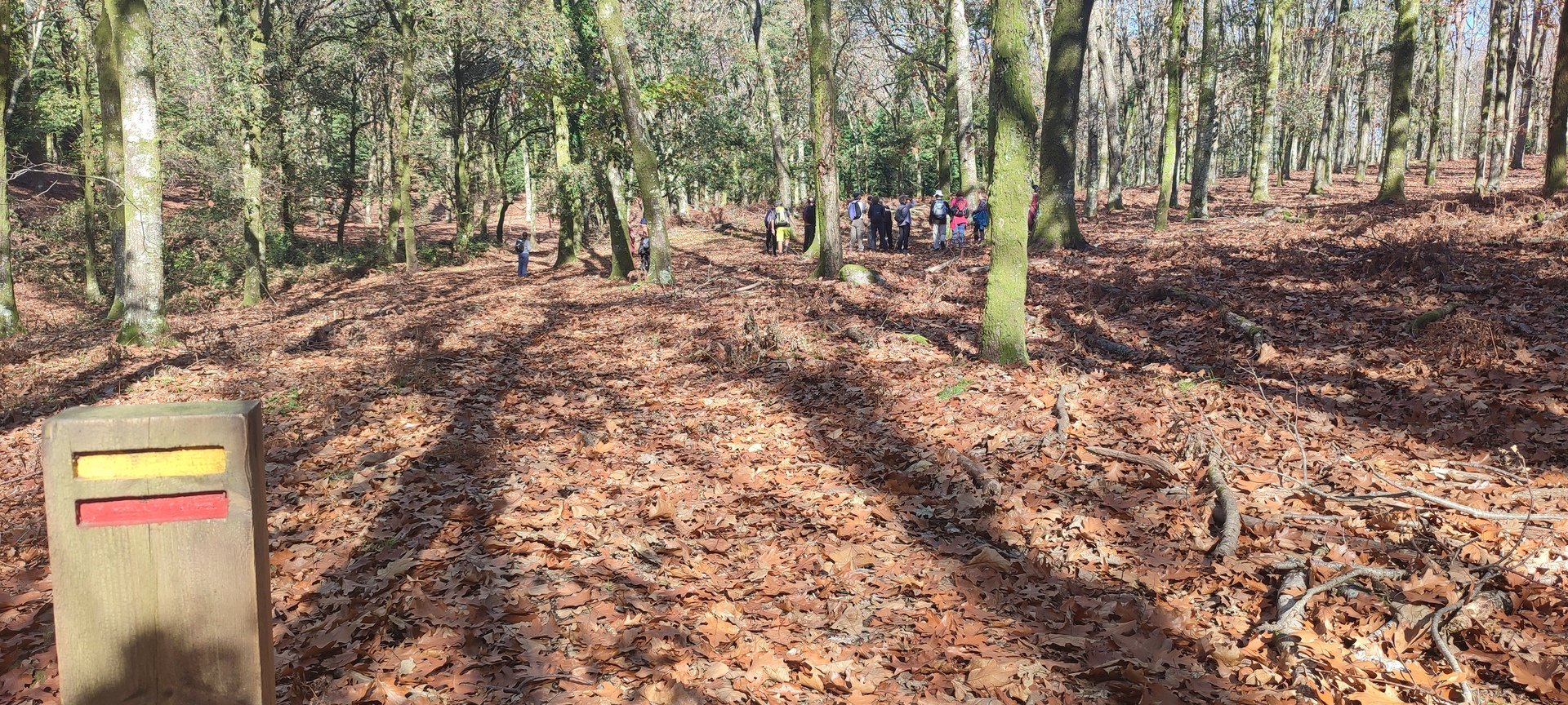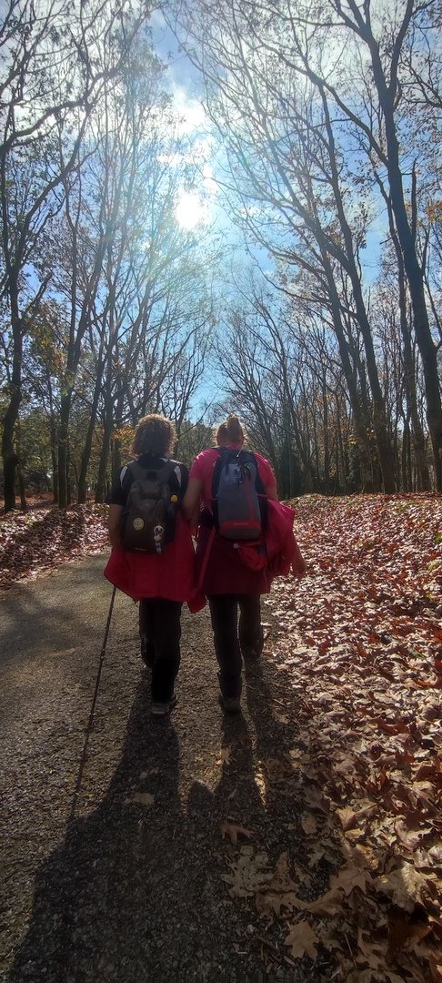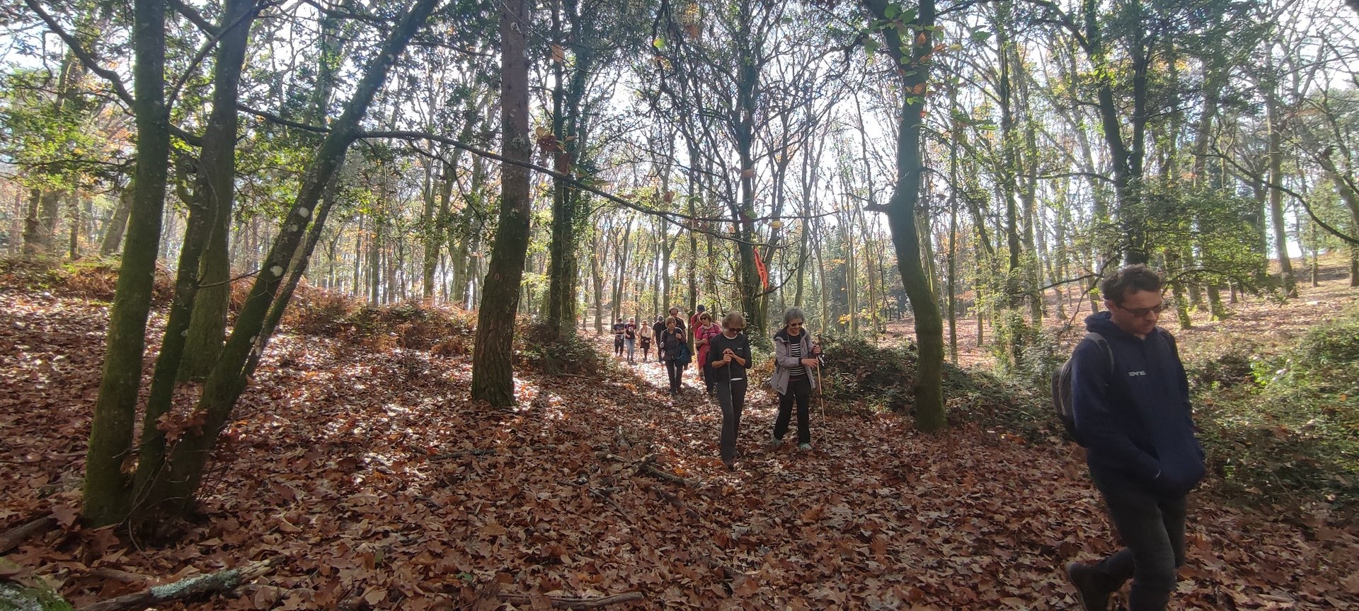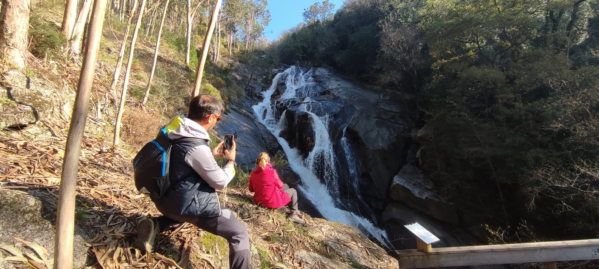 Iniciado o percurso lá fomos ao encontro dos passadiços e cascatas do pequeno Rio Cabrão que logo nos foi presenteando com bonitos recantos e sucessivas quedas de água, parando de quando em vez para obtenção de registos fotográficos. Atingido o final dos passadiços local com um extraordinário miradouro onde cada um pode admirar a bela cascata, logo começamos a abandonar o rio, continuando a subir através de um ingreme carreiro devidamente protegido e que bastante nos auxiliou. Mais acima chegamos a um caminho florestal, por onde caminhamos um pouco no sentido inverso, na busca de um desvio que se tornou um pouco difícil de encontrar. Sempre embrenhados na floresta continuando subindo através de um estreito, mas bonito carreiro, atingimos o lugar de Vaqueira, onde houve um pouco de tempo para se falar com alguns naturais e fazer um ligeiro reabastecimento. A vista para Norte era bonita com a encosta da serra semeada de pequenos aglomerados de habitações, para poente oportunidade para divisar o lugar de Vacariça já várias vezes por nós visitado. Continuamos novamente subindo embrenhados na floresta até se atingir o ponto mais elevado do nosso percurso na denominada “Poça do Couto”, belo local muito procurado para início de várias atividades. Na altura outro grupo de caminheiros abandonava as viaturas iniciando o seu percurso em direção de Miranda. O nosso caminho era penetrar agora através da mata da “floresta encantada”, pisando o grosso tapete das folhas caídas, nesta altura do ano um pouco despida, mas que nem por isso deixa de ter grande beleza. Aqui encontramos a companheira Isabel Sequeiros que integrada numa organização da Câmara de Arcos de Valdevez andava na recolha de cogumelos.