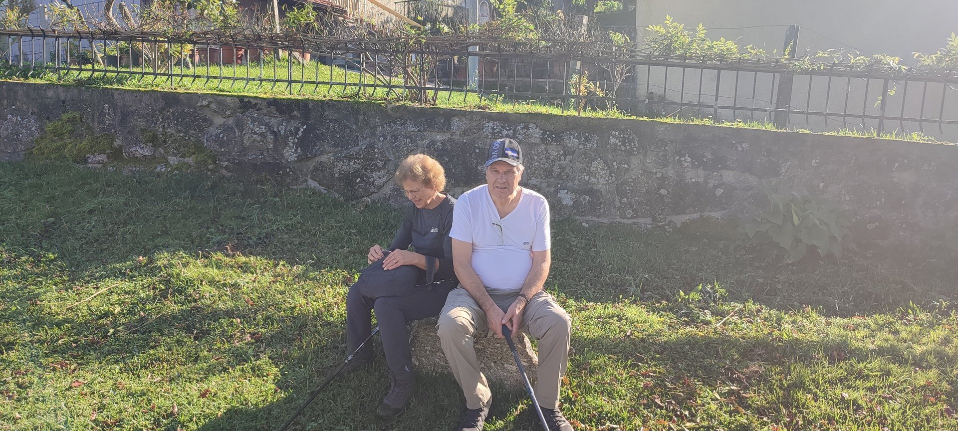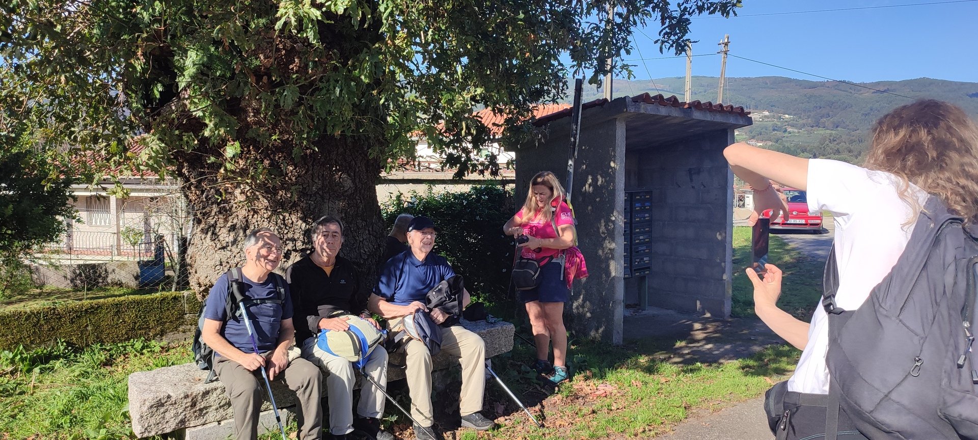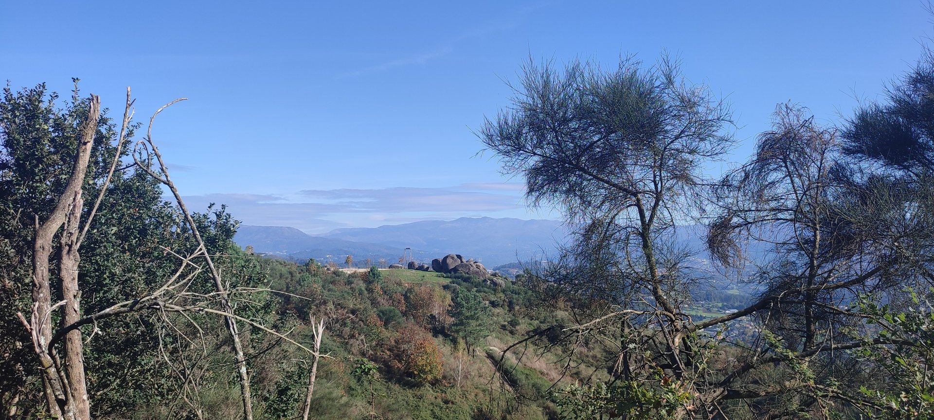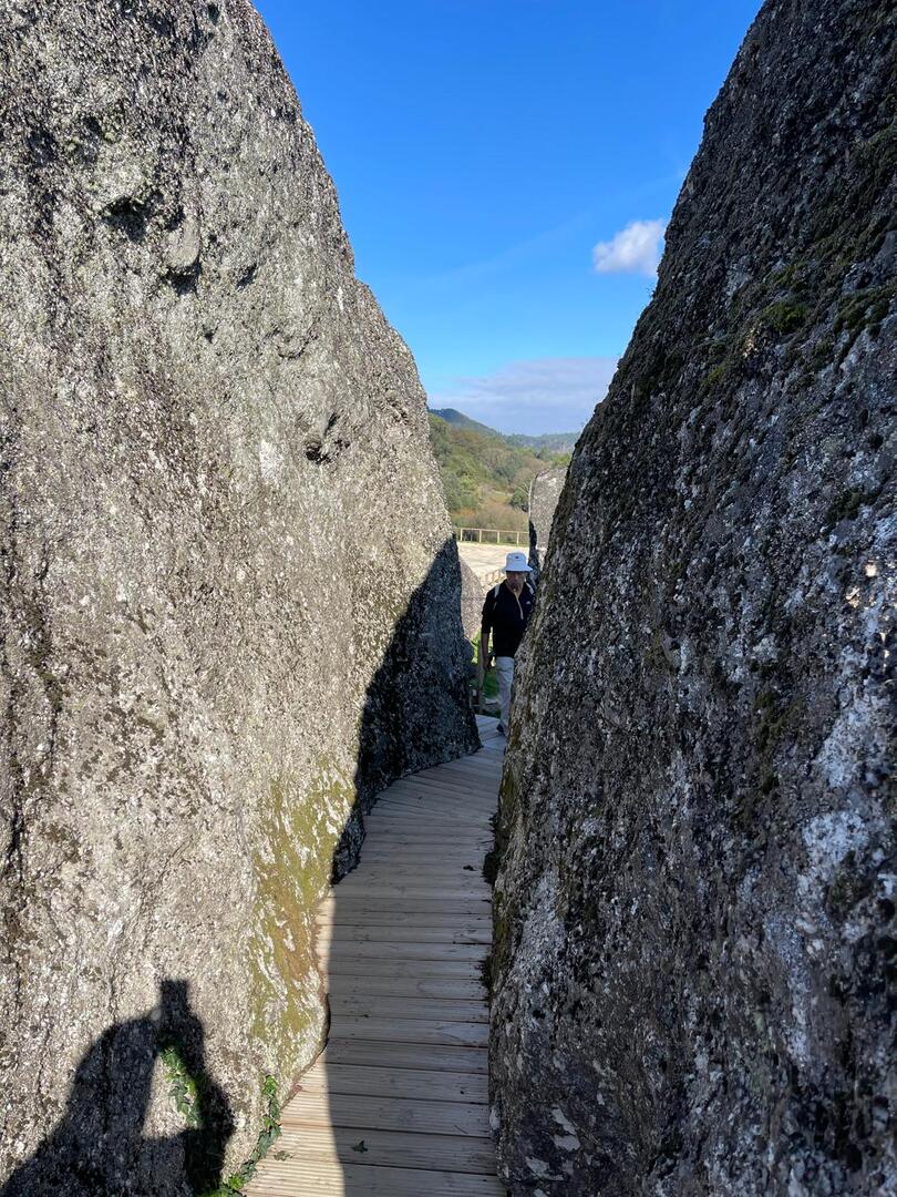 Regressados à Poça do Couto, iniciamos a descida do no nosso percurso, pois havia que controlar as horas para o almoço convívio de S. Martinho. Cruzamos os lugares de Fonte, Balouta e Outeiro pertencentes a Padreiro (Sta. Cristina), belos miradouros para o vale do Lima e mais além ainda, locais bem arranjados com uma exposição solar excelente, bem protegidos dos ventos Norte. Um pouco mais abaixo lá fomos ao encontro do Miradoiro e Baloiços de Penouços instalados num miradouro de grande extensão de onde a vista se perde pelo vale do Lima. Aqui houve um pouco de tempo para “balouçar” e as respetivas fotos de registo. Mas havia que continuar, pois o controle das horas assim o obrigava, mas eis que toca o telemóvel e uma parte do grupo tinha seguido por caminhos errados. Após breve conversa lá ficou combinado que continuariam seguindo por caminhos diferentes até ao objetivo final. Nós, após breve conferência também optamos por seguir por outro caminho, encurtando um pouco a dificuldade, mas retomando o percurso um pouco mais abaixo no lugar de Portela, por onde através de um estreito mas bonito carreiro, fomos descendo até atingir a estrada no local onde havíamos iniciado esta nossa pequena aventura, e onde já se encontravam os outros.