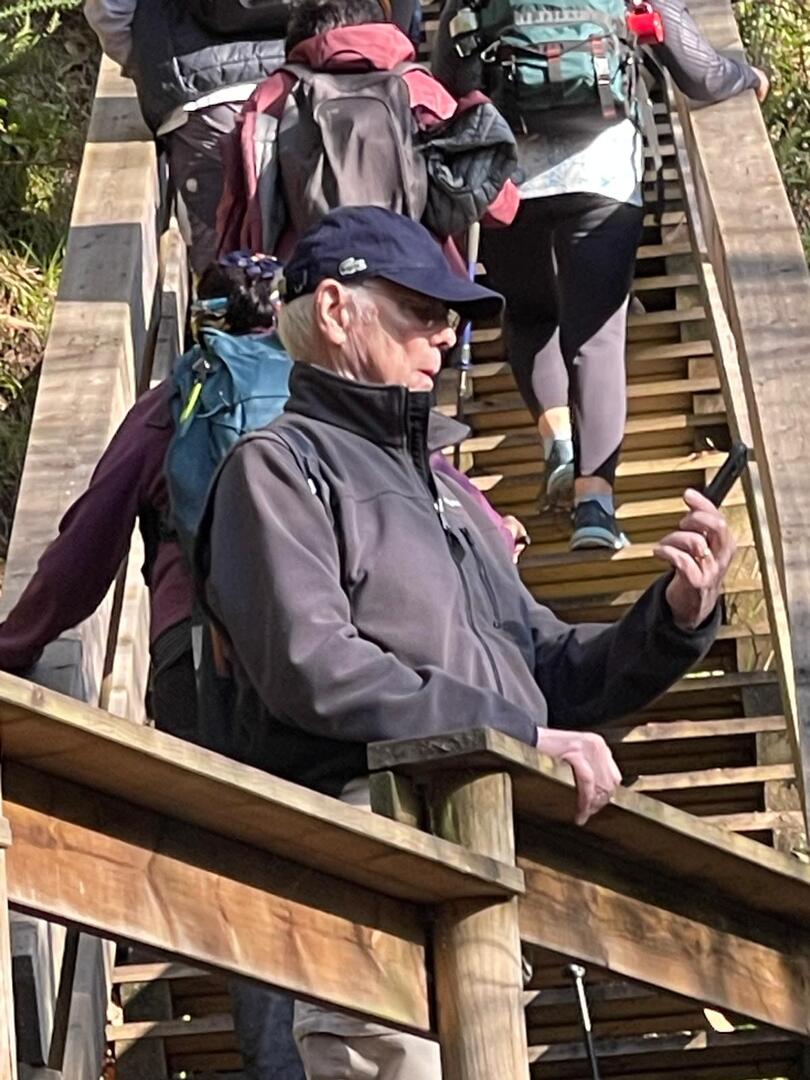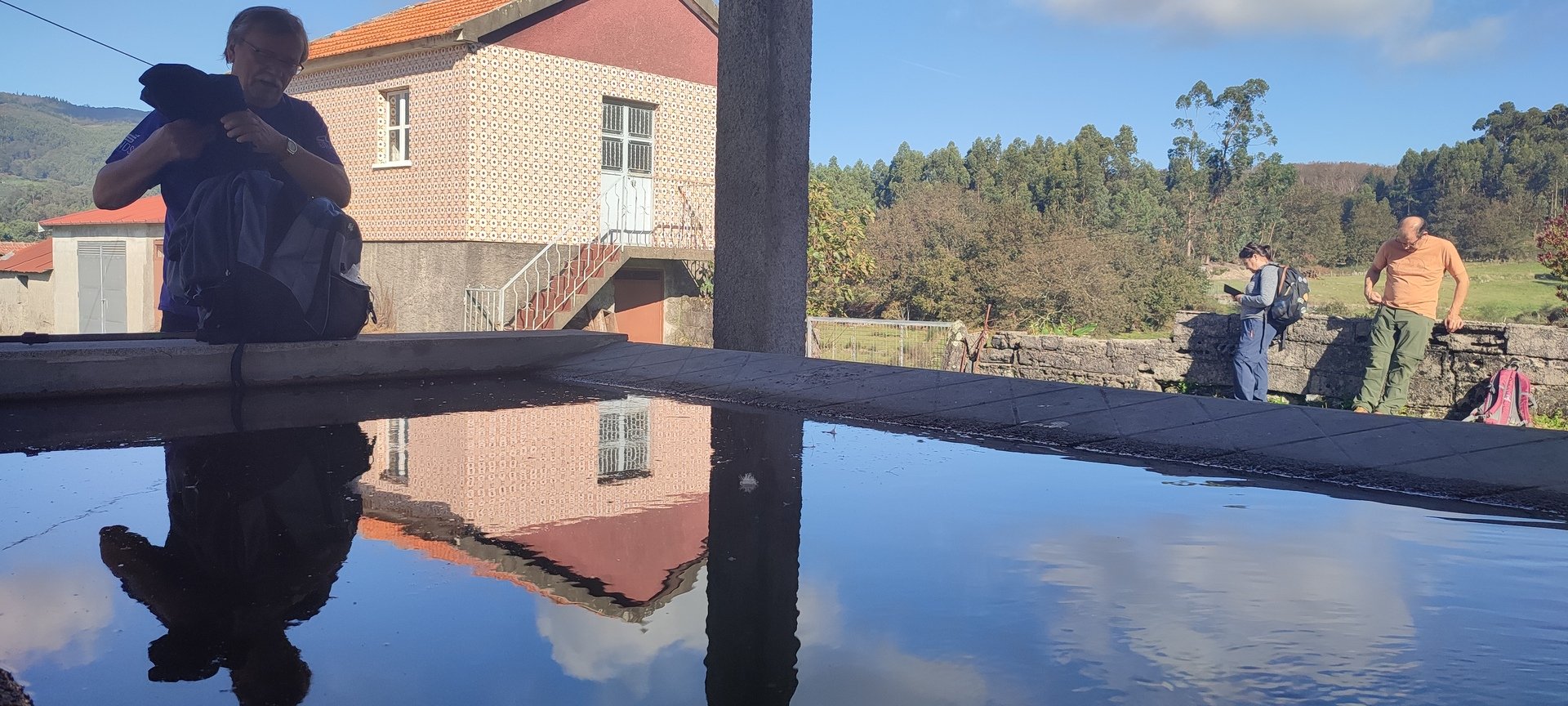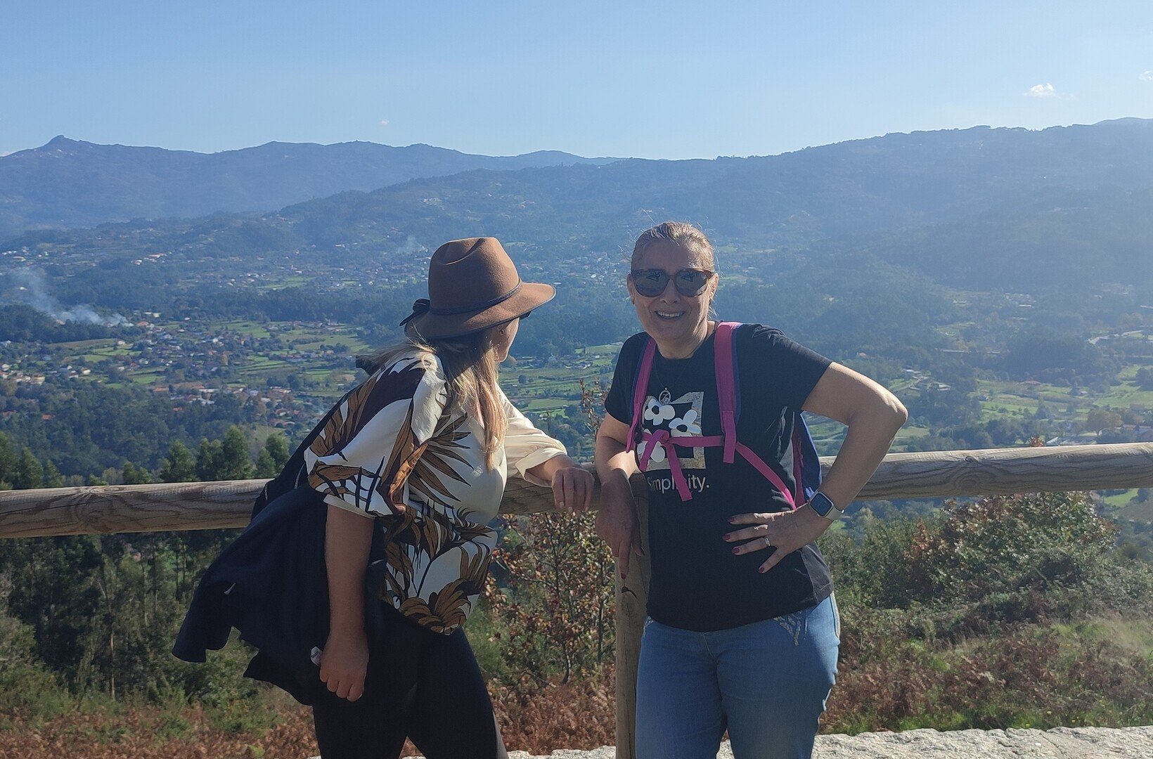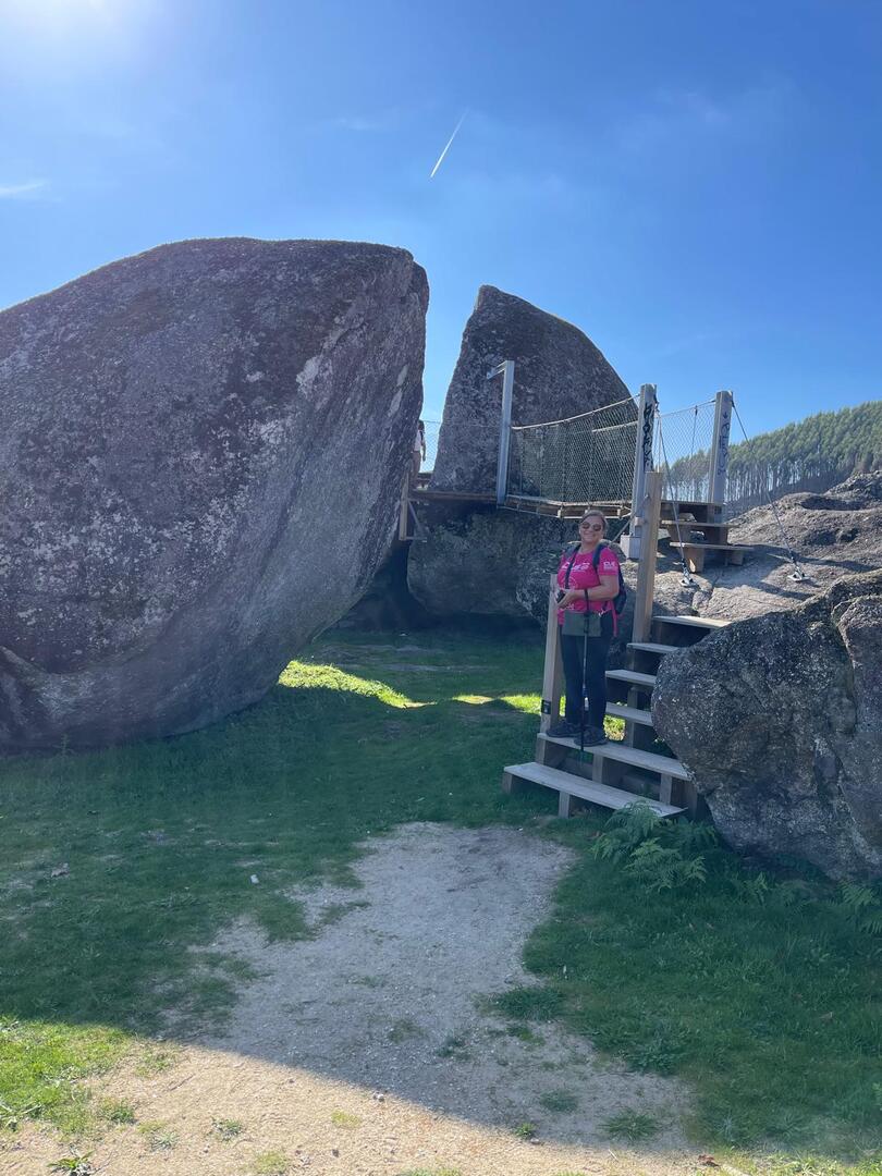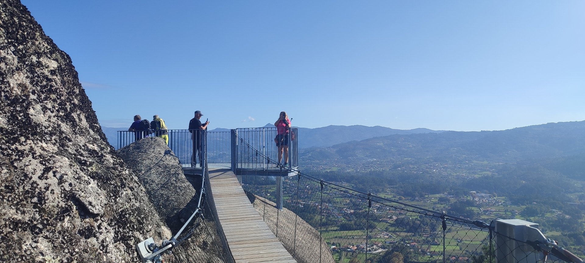 Regressados à Poça do Couto, iniciamos a descida do no nosso percurso, pois havia que controlar as horas para o almoço convívio de S. Martinho. Cruzamos os lugares de Fonte, Balouta e Outeiro pertencentes a Padreiro (Sta. Cristina), belos miradouros para o vale do Lima e mais além ainda, locais bem arranjados com uma exposição solar excelente, bem protegidos dos ventos Norte. Um pouco mais abaixo lá fomos ao encontro do Miradoiro e Baloiços de Penouços instalados num miradouro de grande extensão de onde a vista se perde pelo vale do Lima. Aqui houve um pouco de tempo para “balouçar” e as respetivas fotos de registo. Mas havia que continuar, pois o controle das horas assim o obrigava, mas eis que toca o telemóvel e uma parte do grupo tinha seguido por caminhos errados. Após breve conversa lá ficou combinado que continuariam seguindo por caminhos diferentes até ao objetivo final. Nós, após breve conferência também optamos por seguir por outro caminho, encurtando um pouco a dificuldade, mas retomando o percurso um pouco mais abaixo no lugar de Portela, por onde através de um estreito mas bonito carreiro, fomos descendo até atingir a estrada no local onde havíamos iniciado esta nossa pequena aventura, e onde já se encontravam os outros.