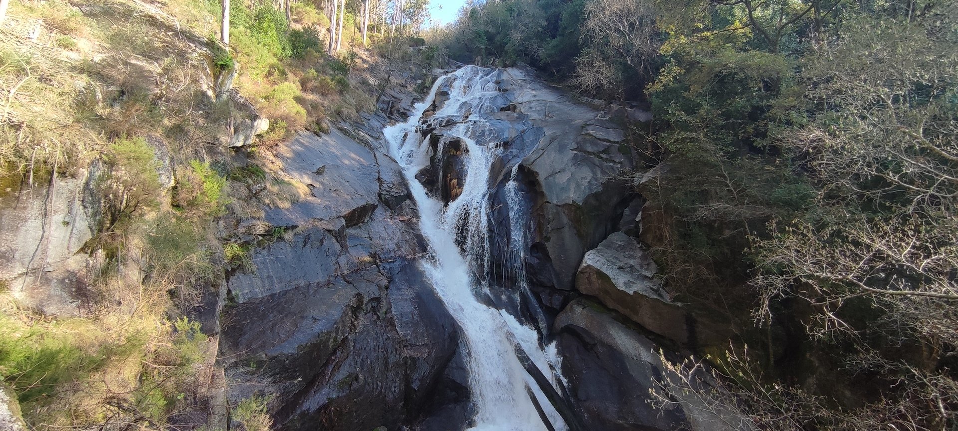 Percurso circular com início na Igreja Paroquial de Rio Cabrão, seguindo pelos passadiços até ao miradouro da cascata. Subida até Vaqueira, passando pelo carreiro até à Poça do Couto, atravessando a "floresta encantada". A descida fez-se pelos lugares de Fonte, Balouta, Outeiro, até ao Miradouro e Baloiços de Penouços, antes de chegar ao ponto de partida em Portela.