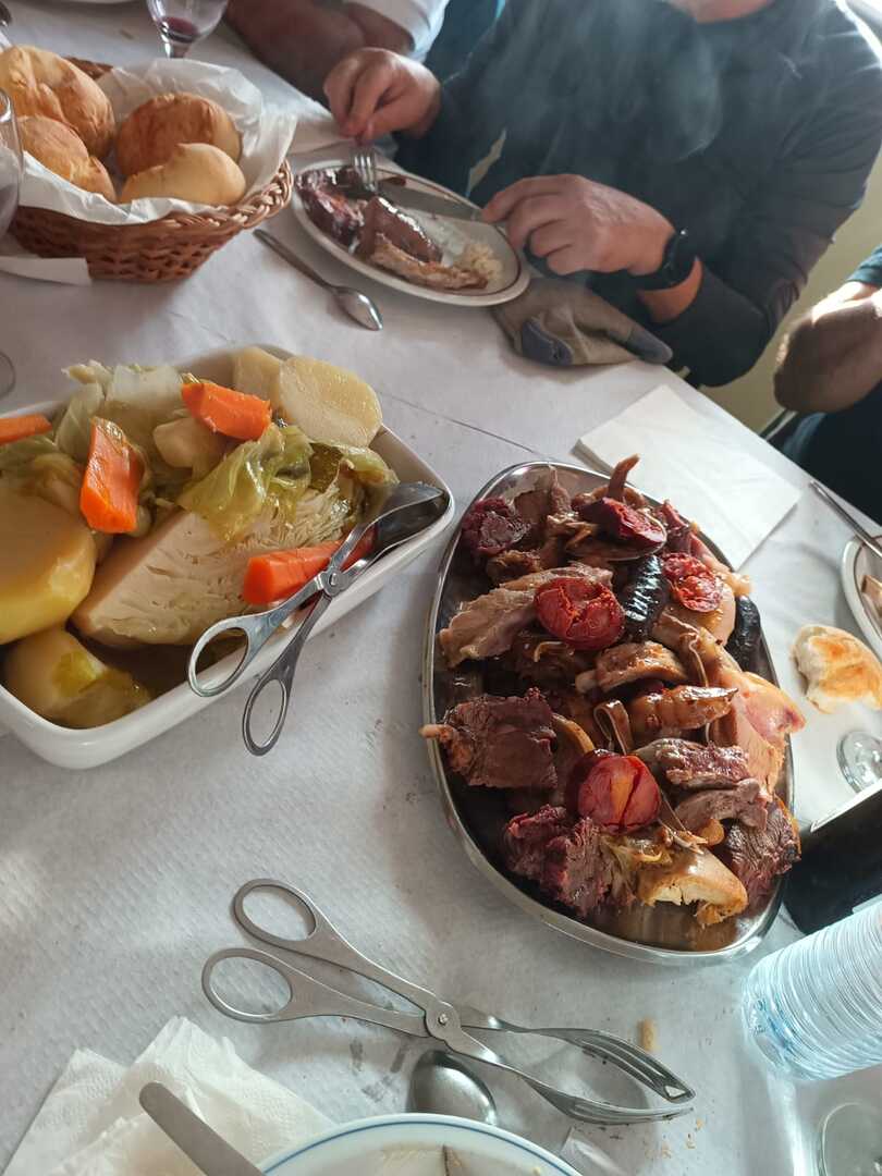 A ementa: - Entradas diversas da região (presunto, chouriça da serra D’Arga) Boroa e pão - Cozido à Portuguesa - Sobremesas com leite creme, arroz-doce e bolo de bolacha - Vinhos, tinto maduro, Vinhão, verde branco e a tradicional jeropiga, água e sumos. - Castanhas
