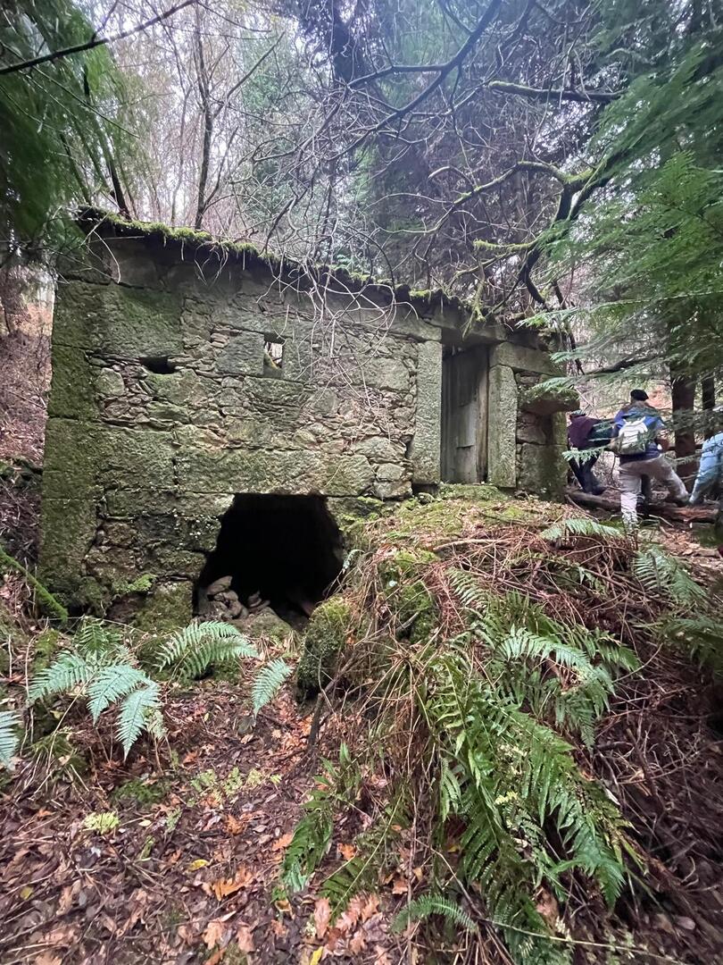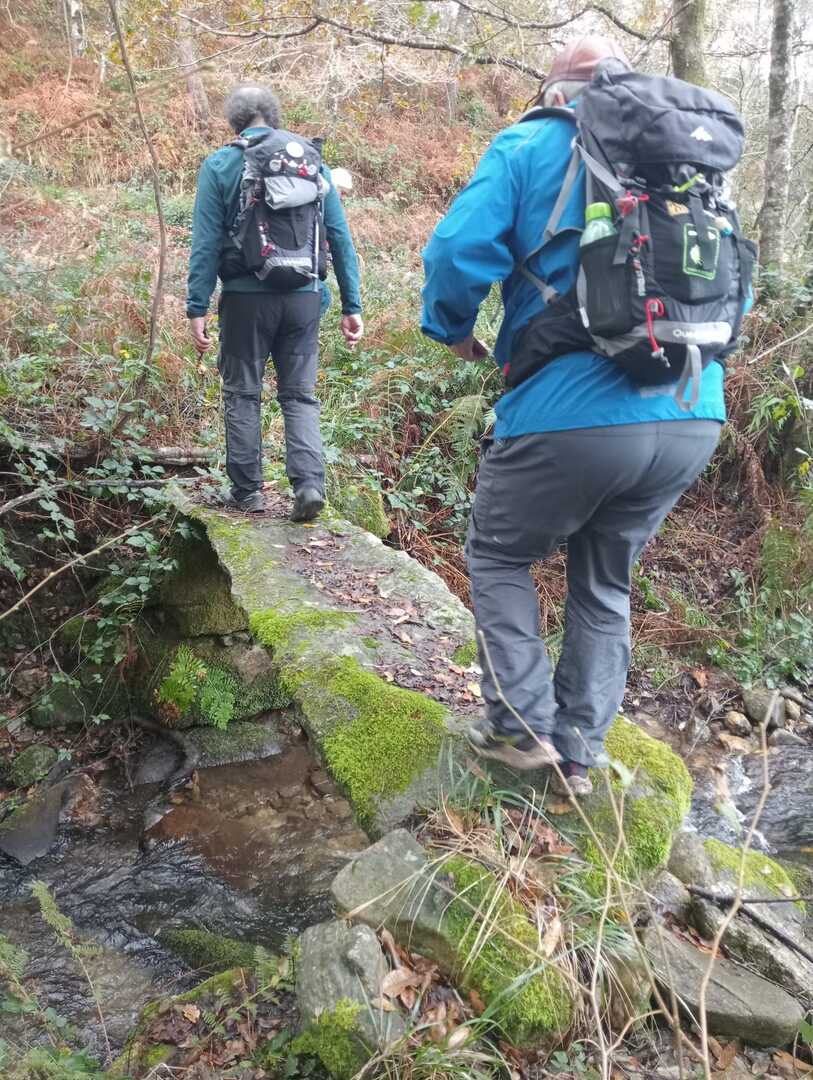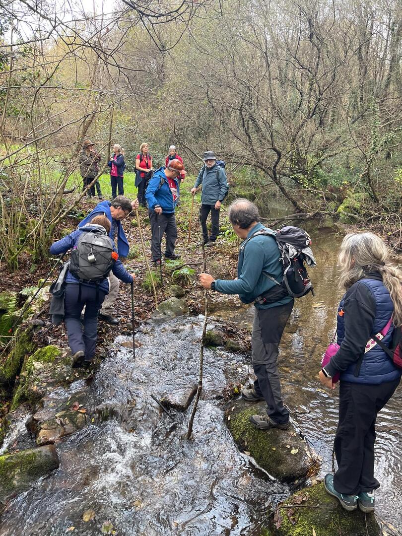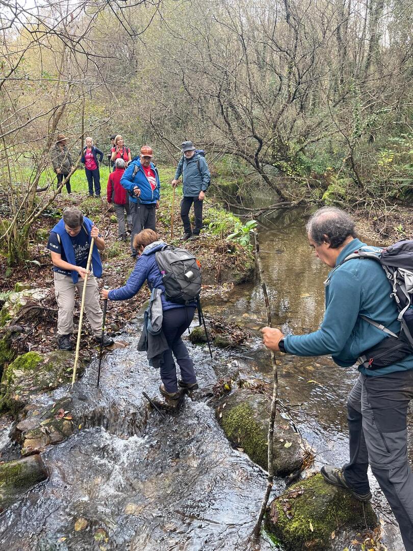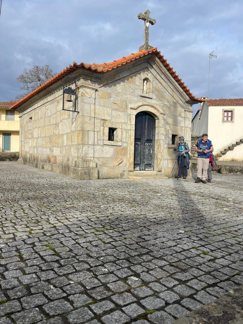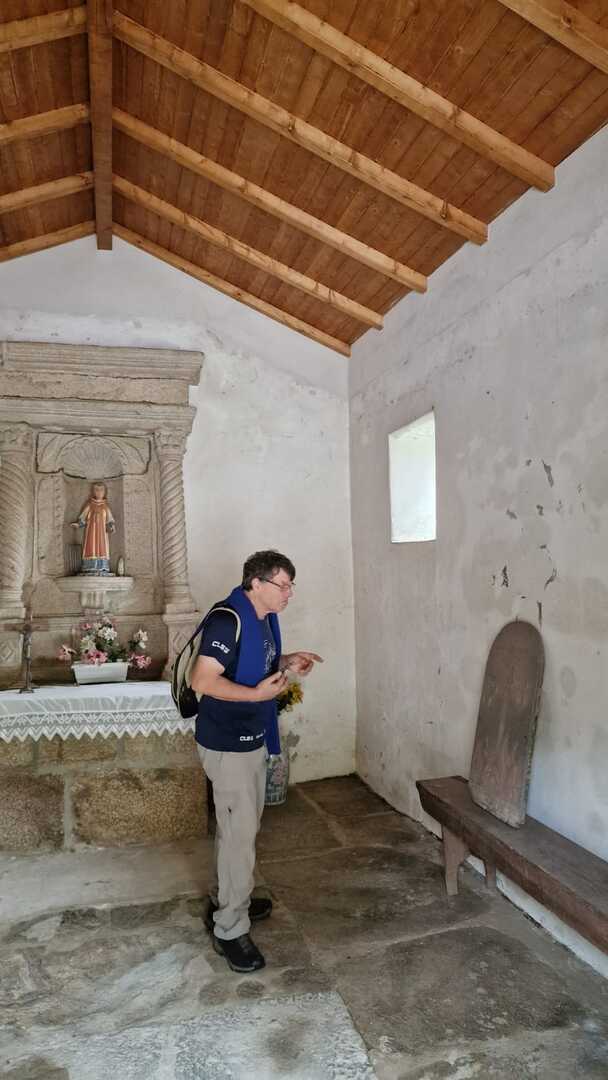 Subimos caminho entre campos agrícolas e vinhedos onde pudemos apreciar esta bela paisagem e aproveitar a tranquilidade que a natureza nos proporcionava. Avistamos uma manada de vacas cachenas, que são uma raça de gado bovino originária da península ibérica, são conhecidas pela sua rusticidade, resistência e pela capacidade de se adaptar a terrenos montanhosos e pobres em recursos, estas vacas têm como principal características, porte pequeno, chifres longos e curvados e pelagem castanha. Estes riachos geralmente desaguam no rio Coura e desempenham um papel importante no abastecimento da água e na irrigação das terras agrícolas locais.