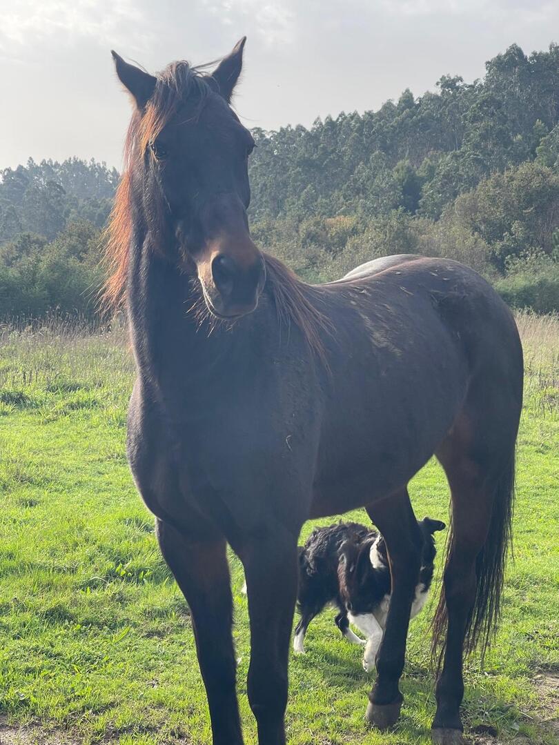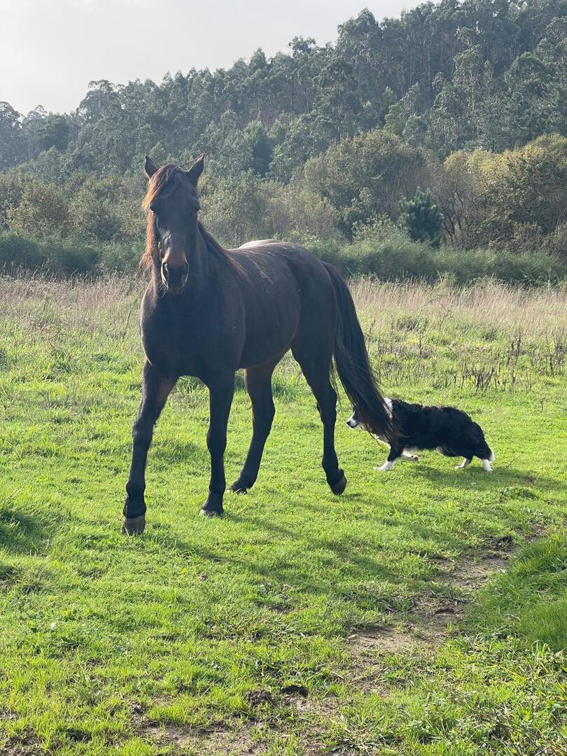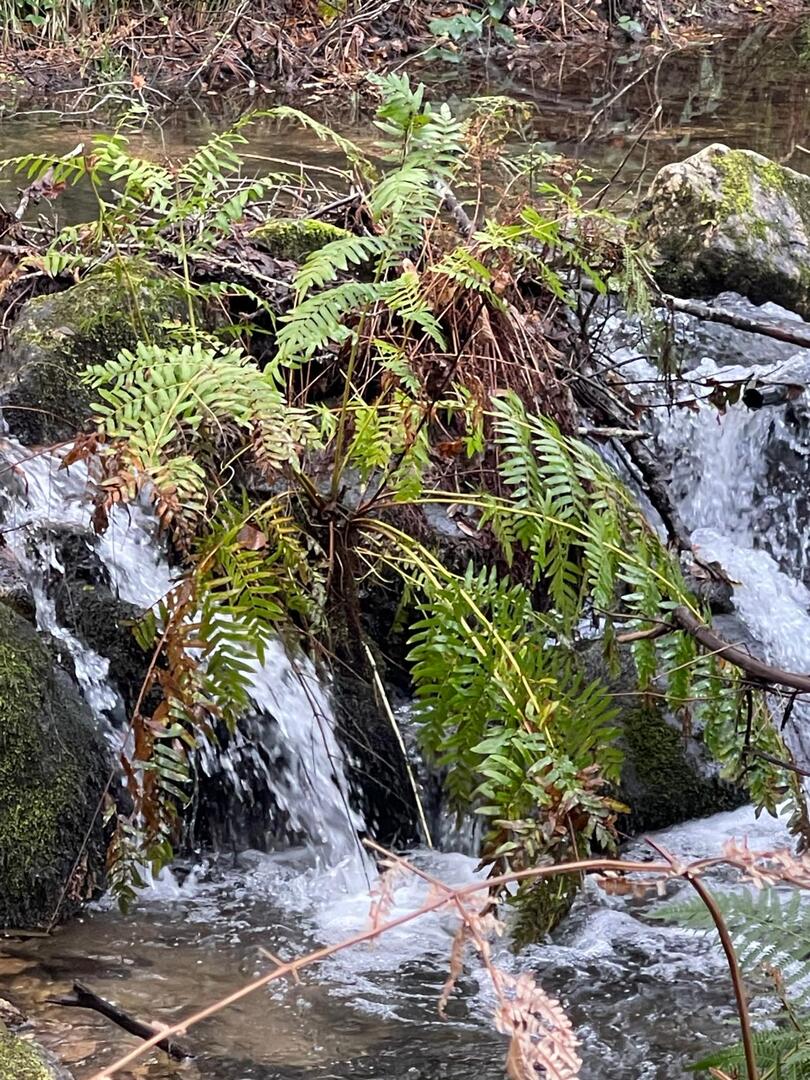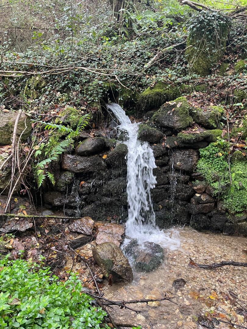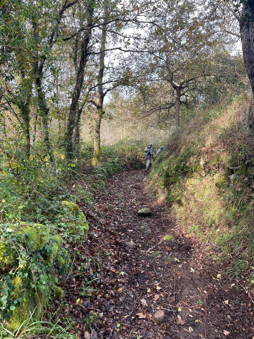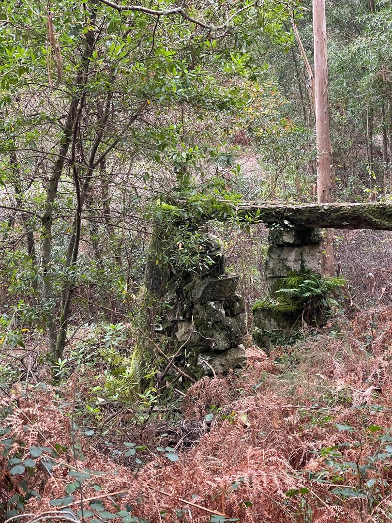 Subimos caminho entre campos agrícolas e vinhedos onde pudemos apreciar esta bela paisagem e aproveitar a tranquilidade que a natureza nos proporcionava. Avistamos uma manada de vacas cachenas, que são uma raça de gado bovino originária da península ibérica, são conhecidas pela sua rusticidade, resistência e pela capacidade de se adaptar a terrenos montanhosos e pobres em recursos, estas vacas têm como principal características, porte pequeno, chifres longos e curvados e pelagem castanha. Estes riachos geralmente desaguam no rio Coura e desempenham um papel importante no abastecimento da água e na irrigação das terras agrícolas locais.