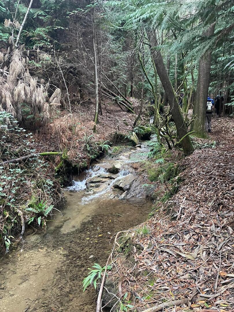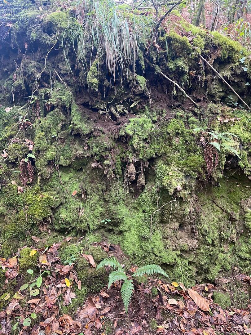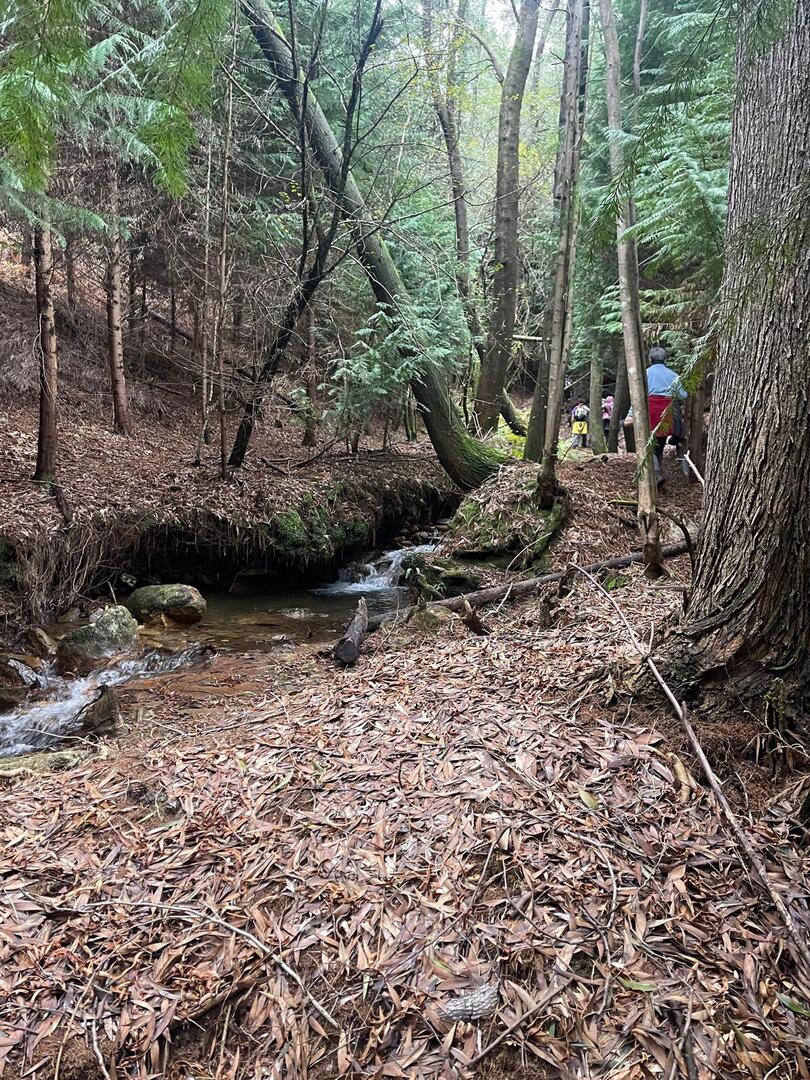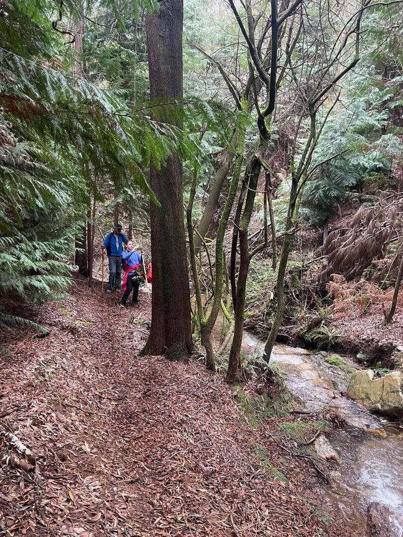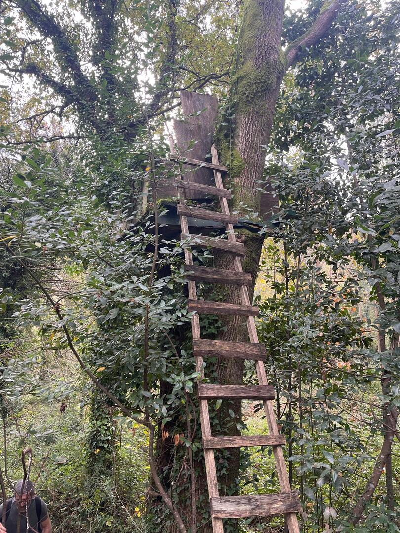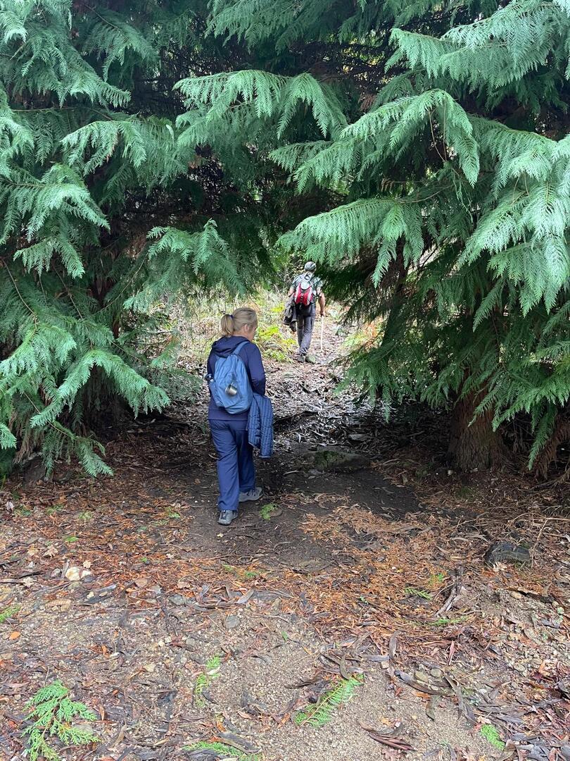 Embrenhados na floresta continuamos caminho, por vezes tivemos o apoio dos “paus” do Miguel e do Carvalhido para subirmos monte acima sem cairmos, mas há sempre alguma peripécia, neste caso foi a Fernanda que não sabia se havia de segurar no telefone ou no pau, resultado “bate cu” no chão.