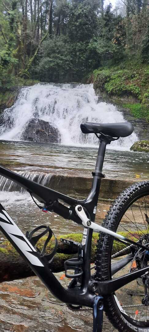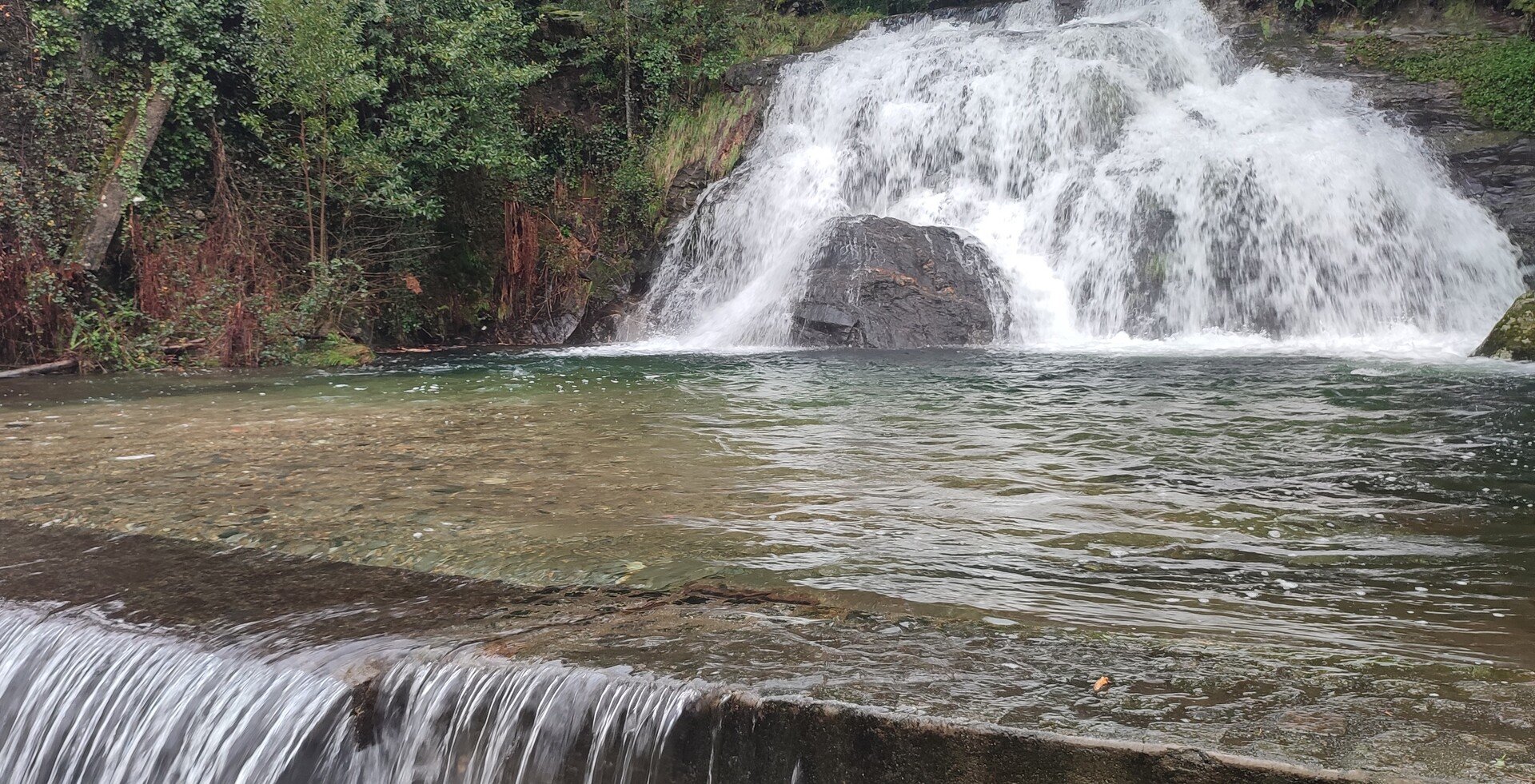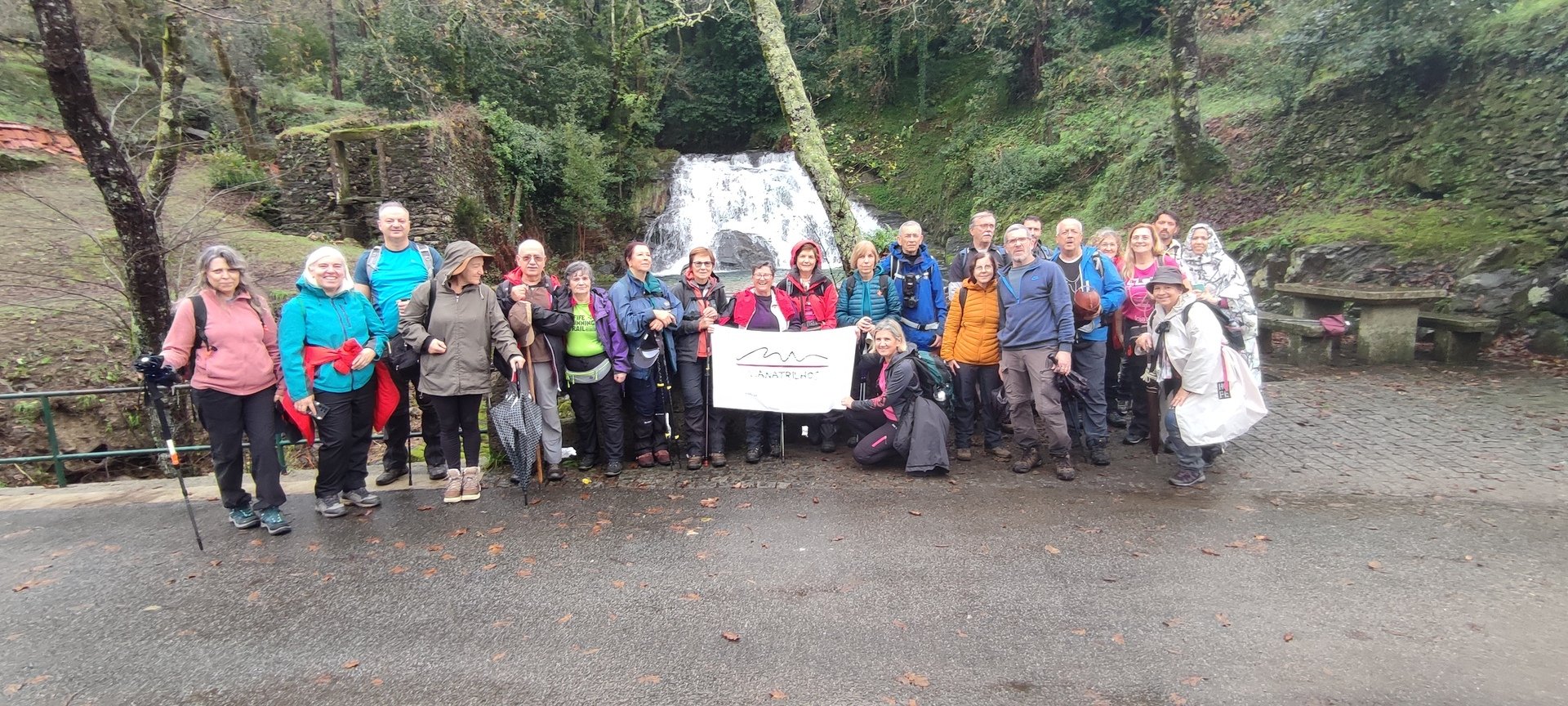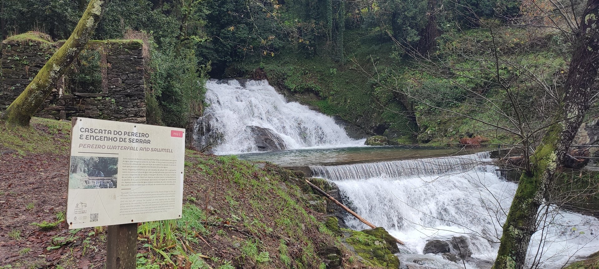 Continuamos um pouco acompanhando a N.305, passando ao lado de alguns moinhos e de uma levada por onde deveríamos ter seguido, mas que devido à falta de manutenção do PR27 tal não o permitia. Cruzamos o lugar do Caminhos do Casal e continuamos até chegar à bela Cascata do Pereiro, local magnifico bem preservado onde aproveitamos para descanso e esperar pela Aurora e o Pimenta que, entretanto, a nós se juntaram. Tiradas as fotos da praxe, seguimos depois por entre os caminhos da Veiga, do Rodo e do Moinho do Cajusta, sempre por caminhos florestais e acompanhando em parte o Rio do Seixo que em local na margem contrária em tempos existiu uma levada denominada por “Rego dos Frades” pois conduzia a água para o remoto Mosteiro de São salvador da Torre.