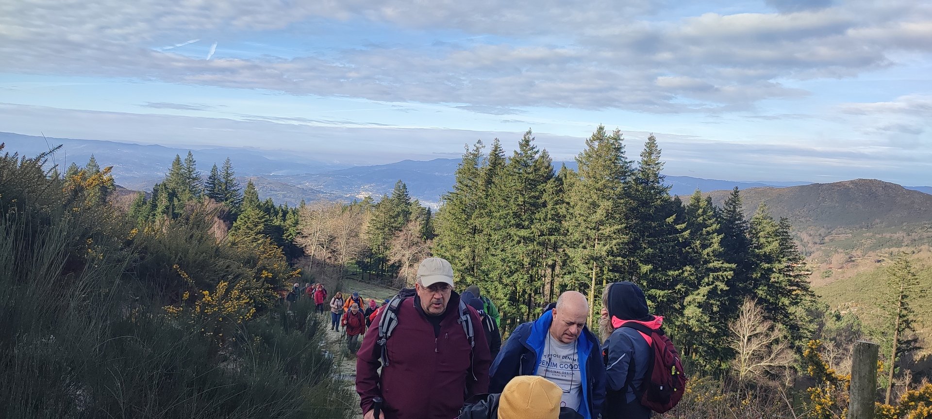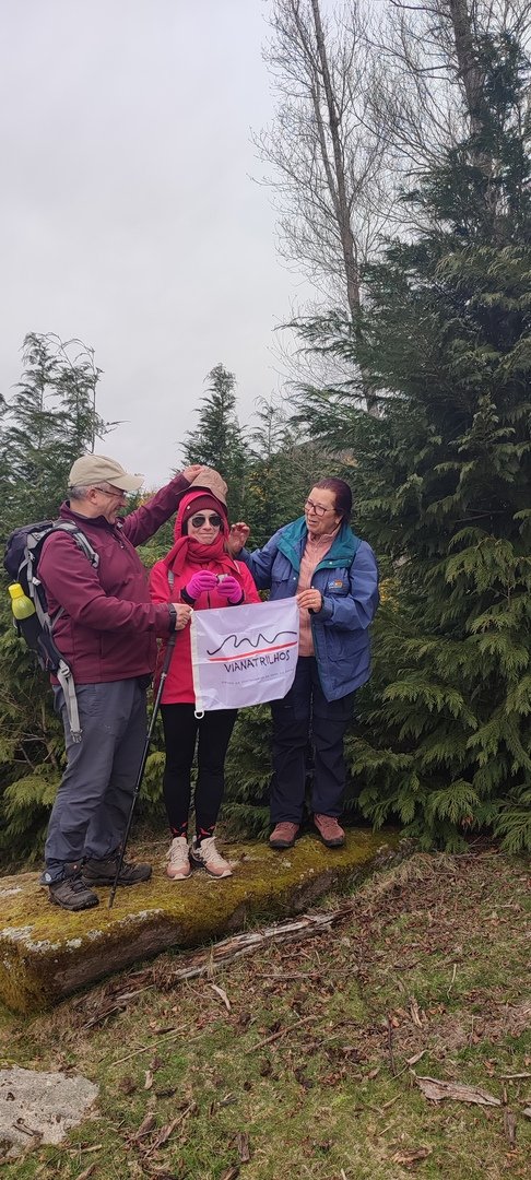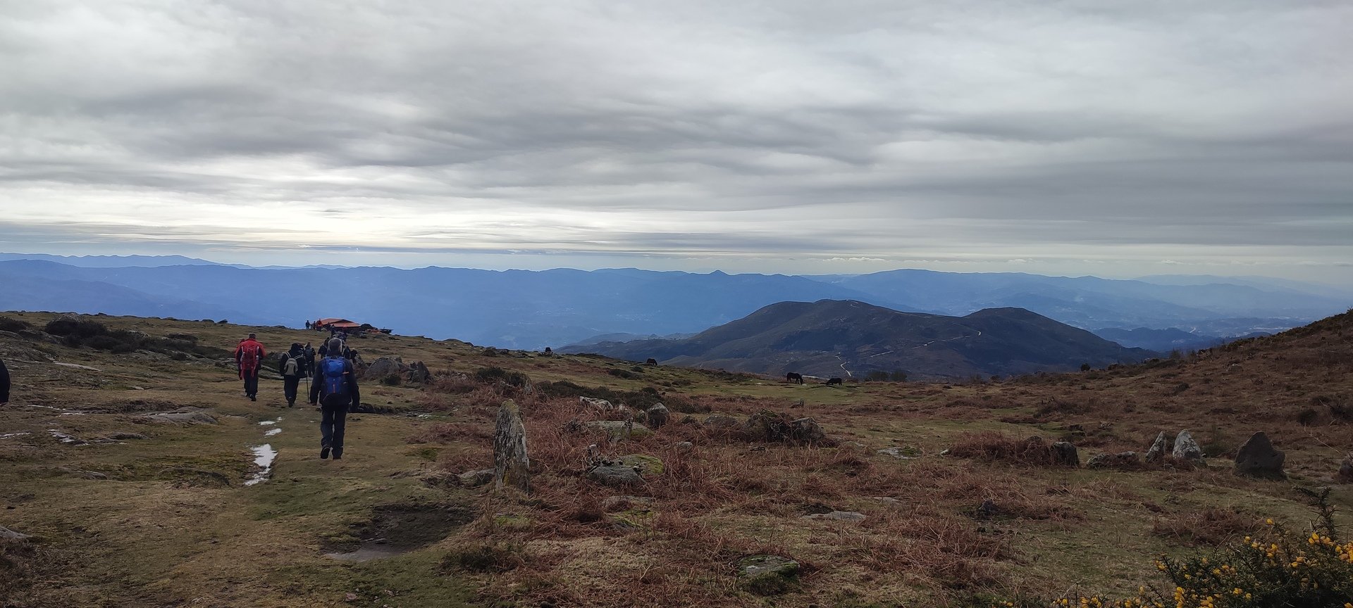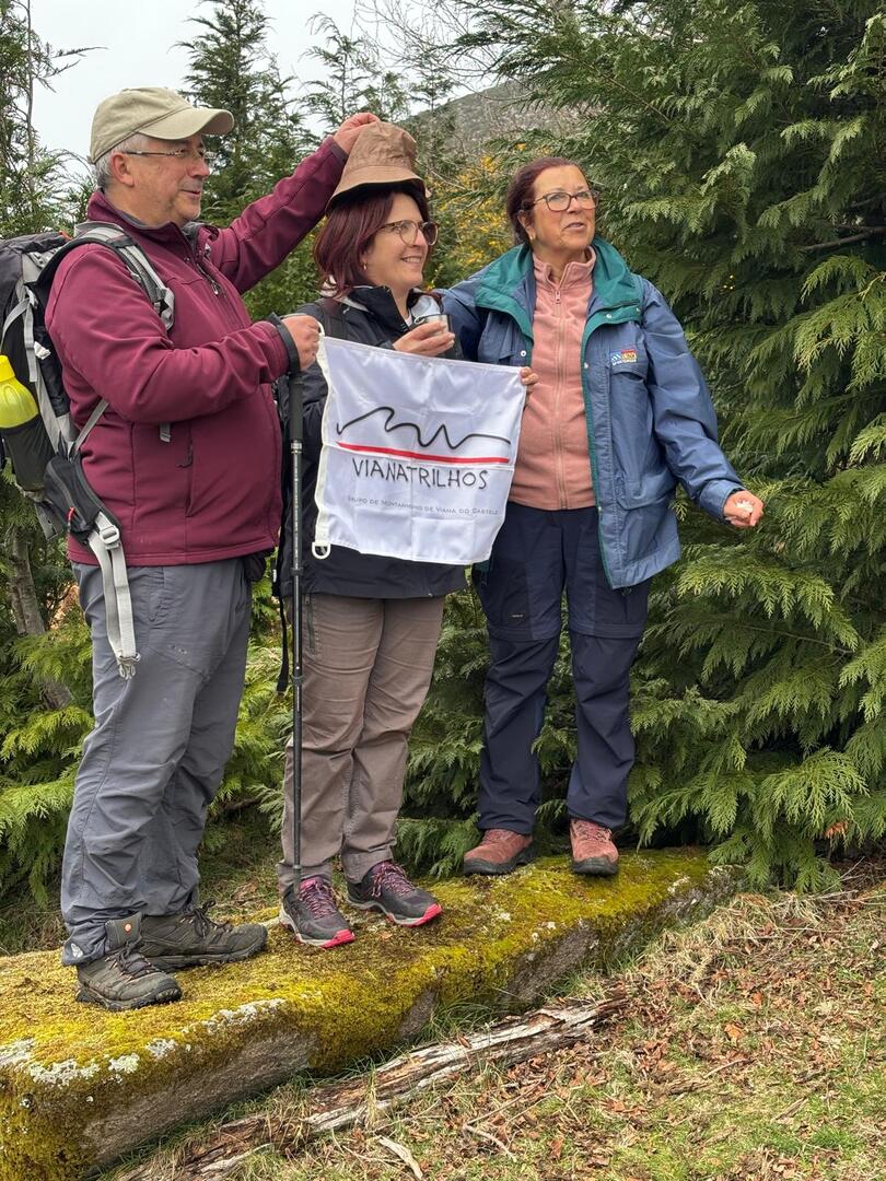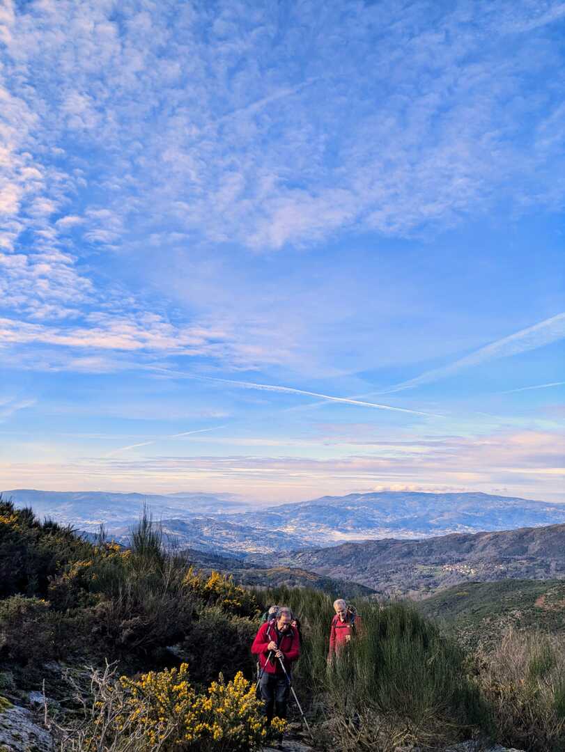 Começámos a descida por um caminho algo difícil pois as chuvas terão arrastado a terra, deixando-o muito pedregoso. Tendo em frente o Vale do Lima onde o rio que lhe deu o nome parecia um espelho em forma de serpente, descemos até uma pequena floresta, local aprazível para descansar e onde se procedeu à cerimónia de batismo dos 7 novos companheiros de caminhada, sendo eles, por ordem de batismo: Judite Neiva, Juca Ferraz, Ana Borlido, Célia Ribeiro, Pedro Teixeira, João Soares e Adelina Antunes.