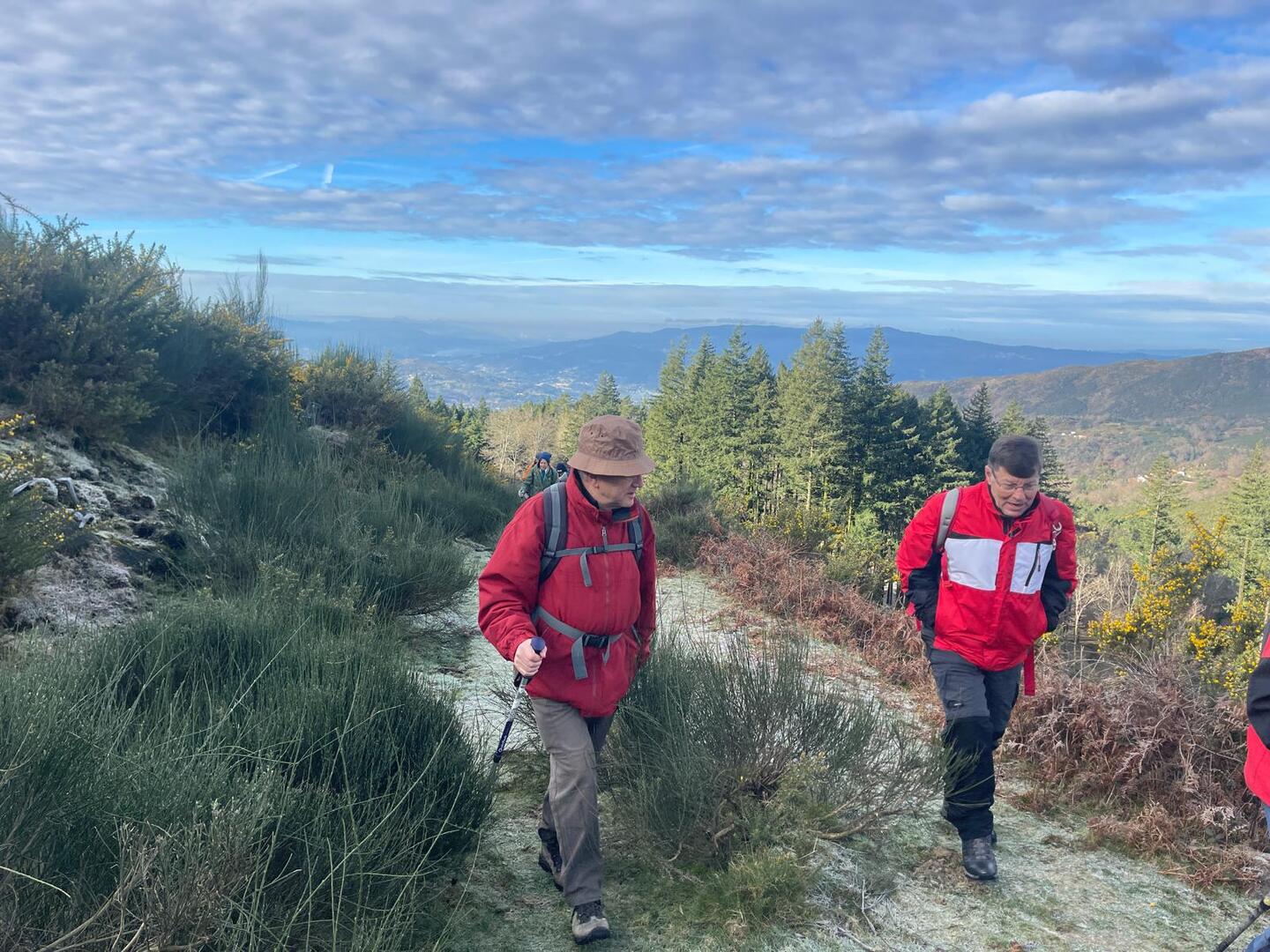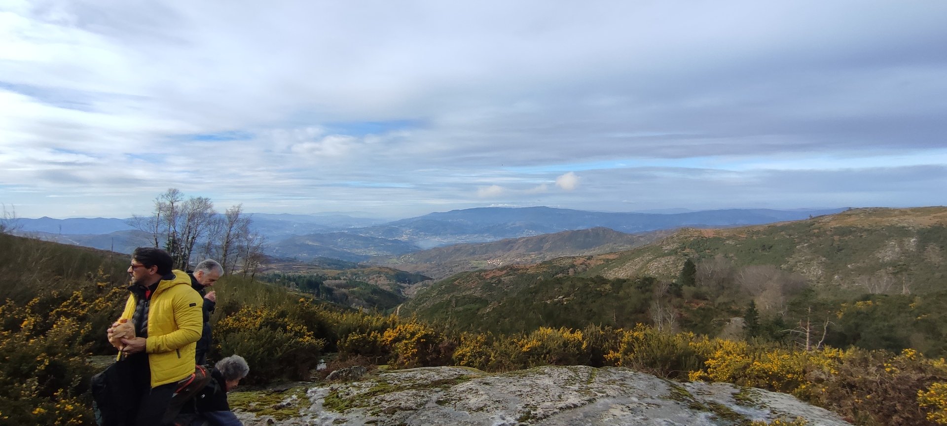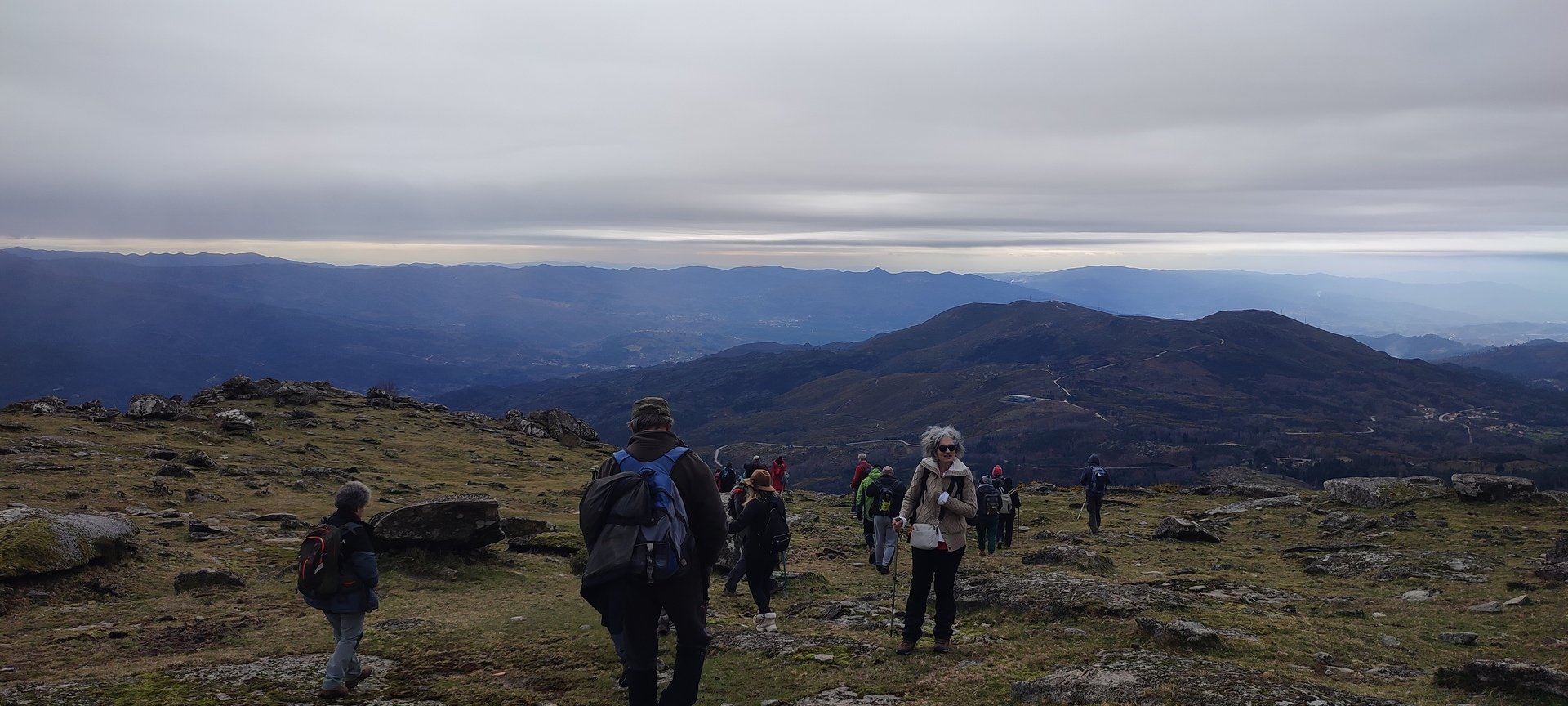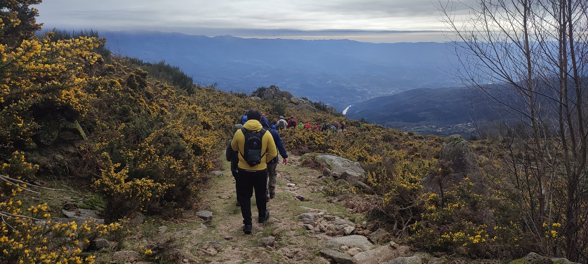 Começámos a descida por um caminho algo difícil pois as chuvas terão arrastado a terra, deixando-o muito pedregoso. Tendo em frente o Vale do Lima onde o rio que lhe deu o nome parecia um espelho em forma de serpente, descemos até uma pequena floresta, local aprazível para descansar e onde se procedeu à cerimónia de batismo dos 7 novos companheiros de caminhada, sendo eles, por ordem de batismo: Judite Neiva, Juca Ferraz, Ana Borlido, Célia Ribeiro, Pedro Teixeira, João Soares e Adelina Antunes.