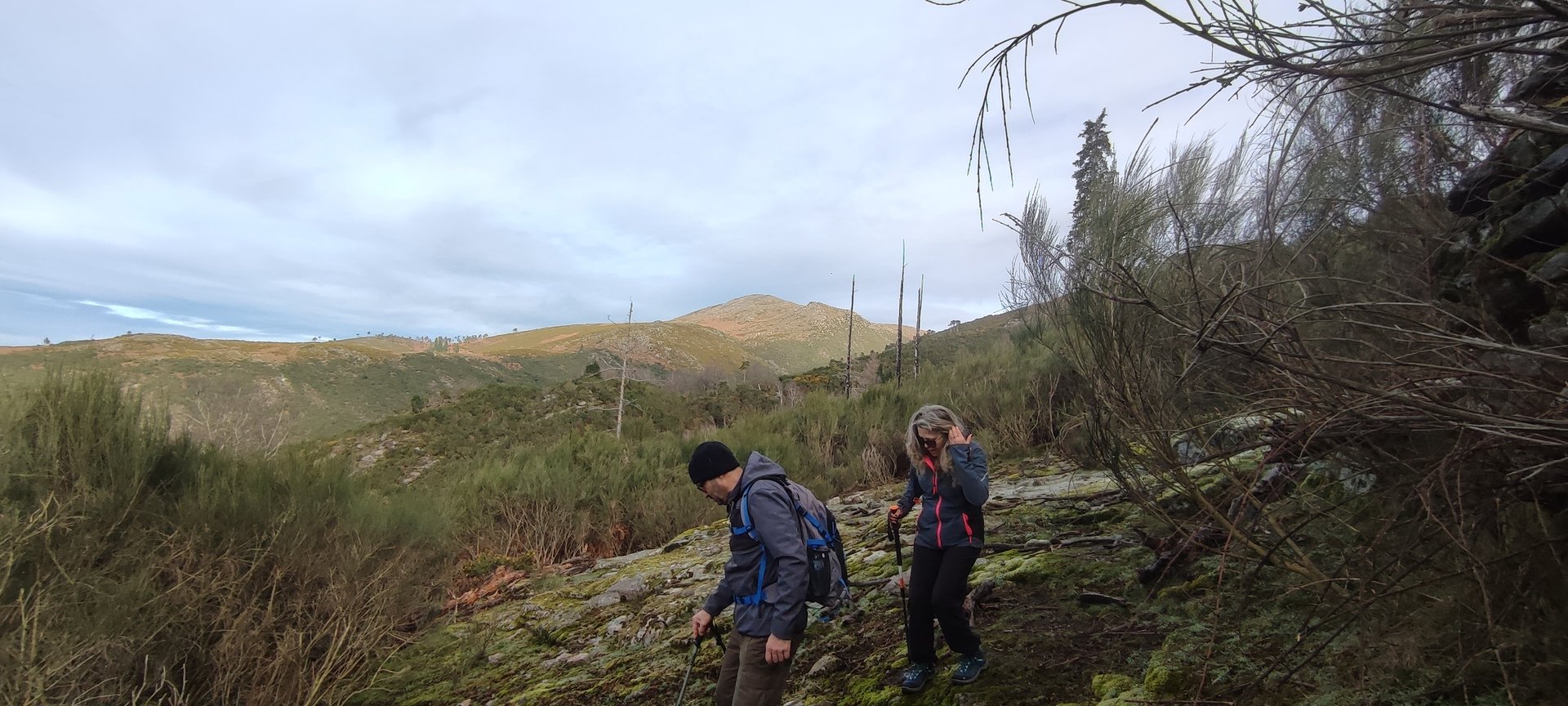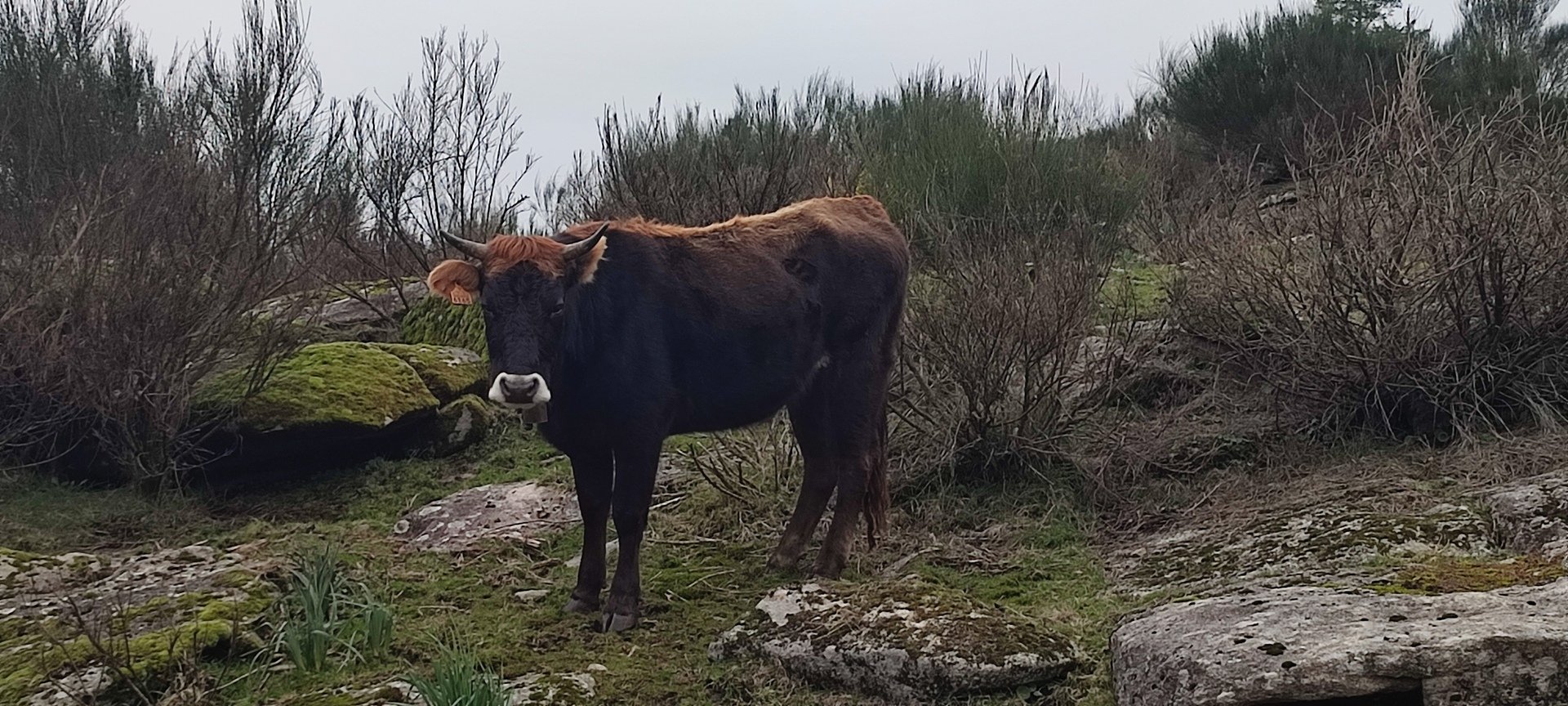 Acompanhava-nos uma chuvinha “molha tolos” que nos fez apressar o passo. Mais uma pequena subida e encontrámos um pastor que tinha vindo ver se o lobo teria matado algum do seu gado mas felizmente não tinha baixas.