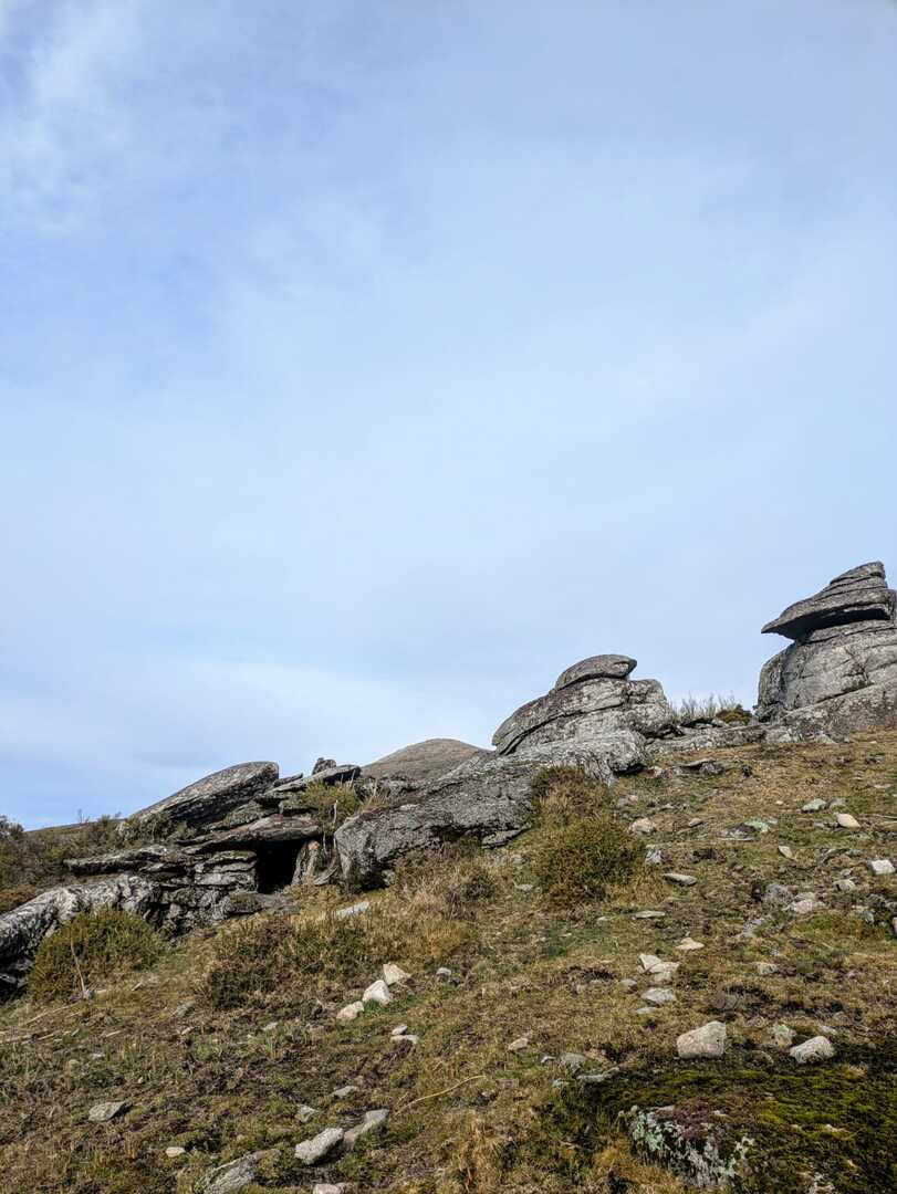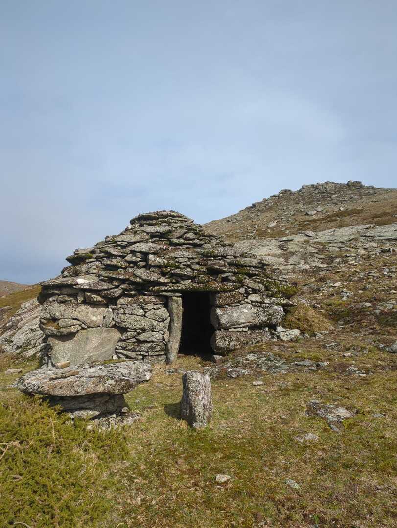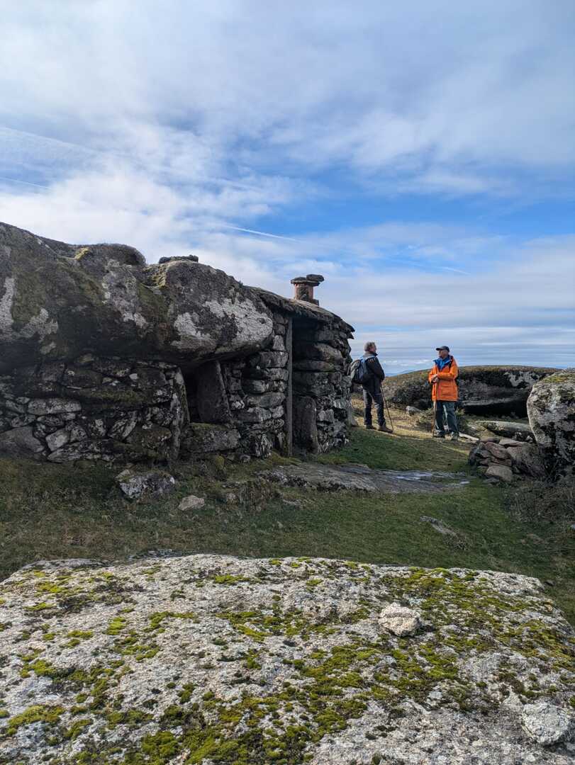 Enquanto caminhámos num misto de caminhos de terra, trilhos de pé posto, calçadas de pedra e estradões florestais, fomos encontrando cortelhos, cardenhas, abrigos ou casarotas e brandas (aglomerado de cortelhos), por toda a zona que percorremos o que mostra sinais de muita atividade pastorícia doutros tempos. Os aglomerados de abrigos sazonais devido à necessidade que os antigos tinham de utilizarem os pastos localizados na serra para alimentarem o gado nos meses de Verão. Estes lugares transpõe-nos para outros tempos num ambiente bucólico, místico e, por momentos, conseguimos imaginar os dias aqui vividos, o atarefado dia a dia dos brandeiros na lida do gado e dos campos … tempos difíceis, esses …