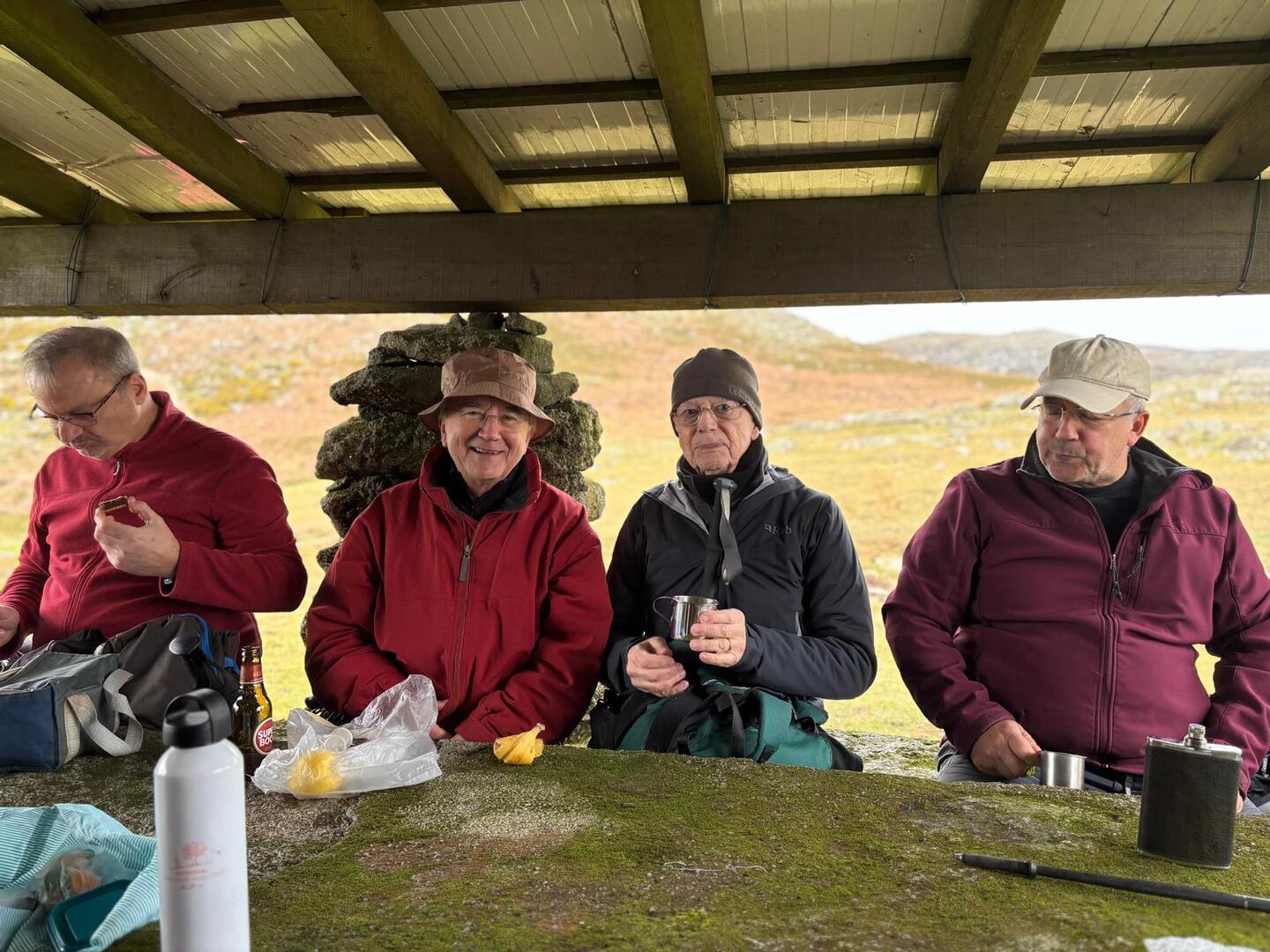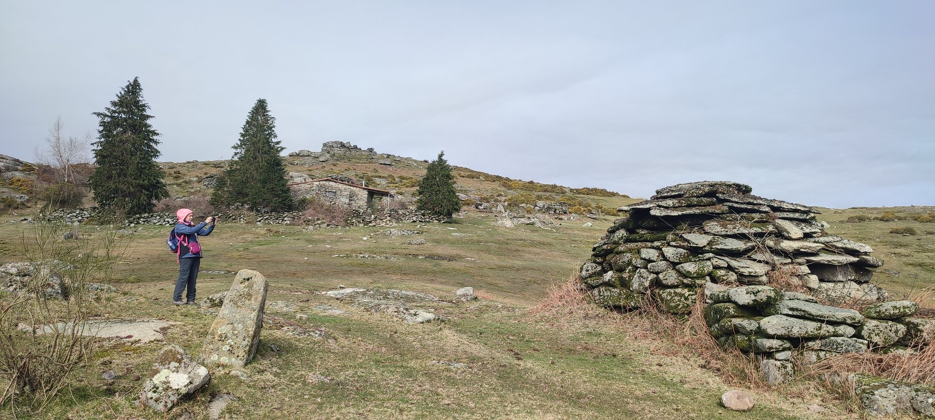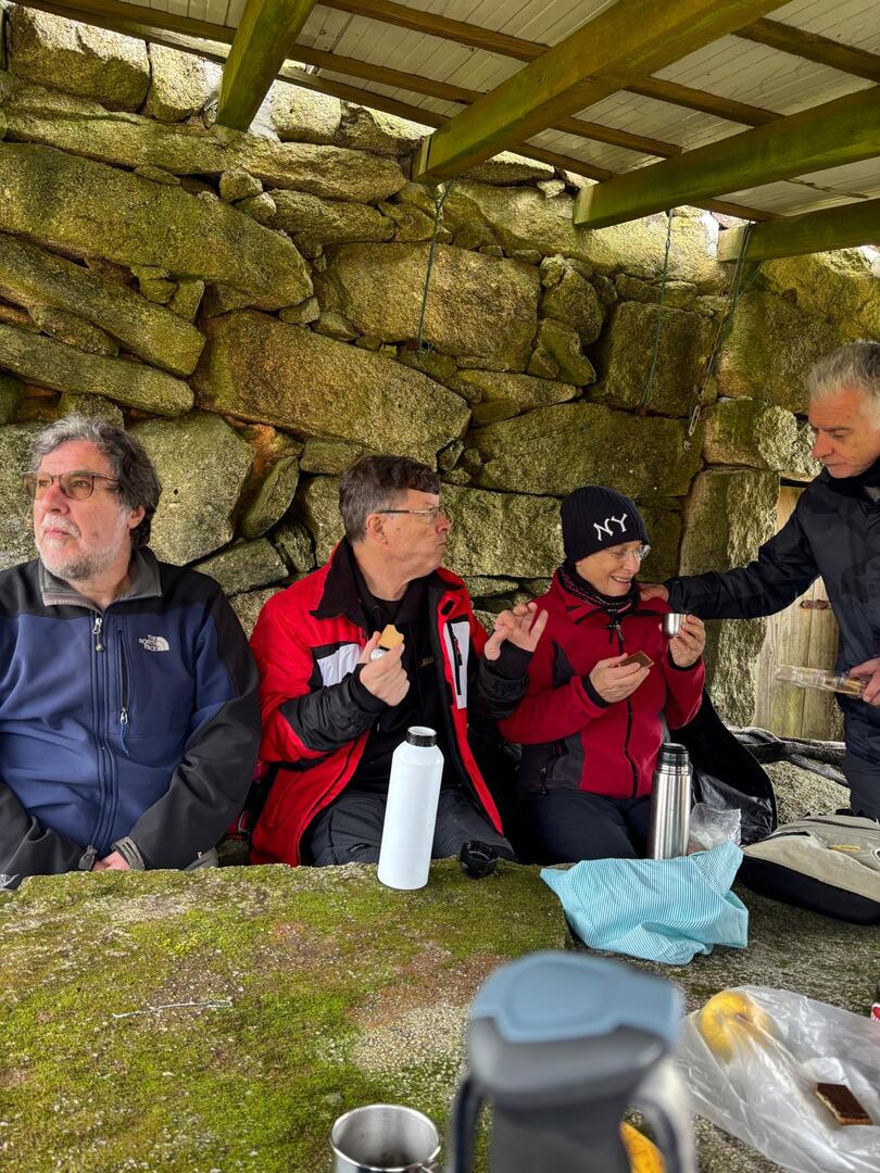 A cabana foi totalmente recuperada, sendo uma valência de abrigo de montanha, proporcionando aos caminheiros um refúgio de proteção às intempéries, bem como um local ótimo para a contemplação da natureza. Junto a esta cabana existe uma fonte de água potável. Foi aqui que fizemos a pausa para almoçar e tomar o delicioso café com que a nossa companheira Lúcia sempre nos presenteia. Ainda cantámos os parabéns a um caminheiro solitário que ali estava a grelhar uma posta de carne (provavelmente Cachena) para festejar o seu 63.ª aniversário.