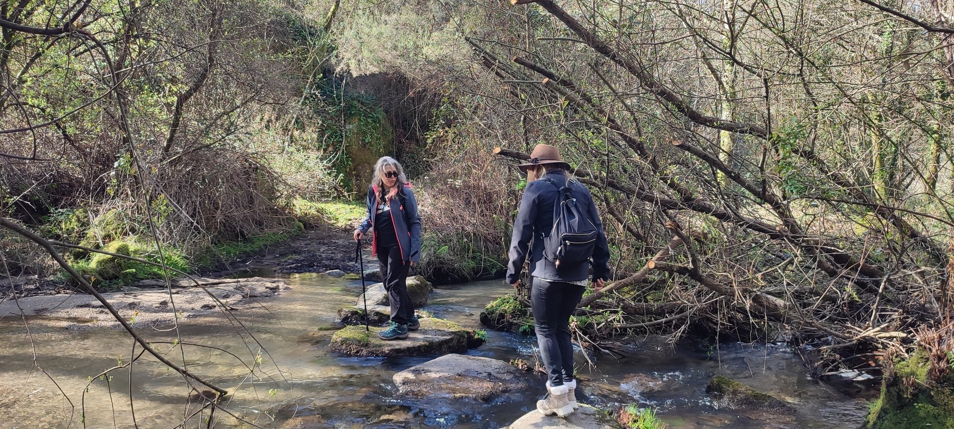 Seguimos no sentido dos ponteiros do relógio e começámos a descer por um caminho que se pode considerar bastante técnico dada a quantidade de pedra solta e a inclinação. Mais à frente, atravessámos o rio Vade por umas poldras. A travessia foi fácil dado que o tempo estava seco e o nível das águas do rio estava baixo.