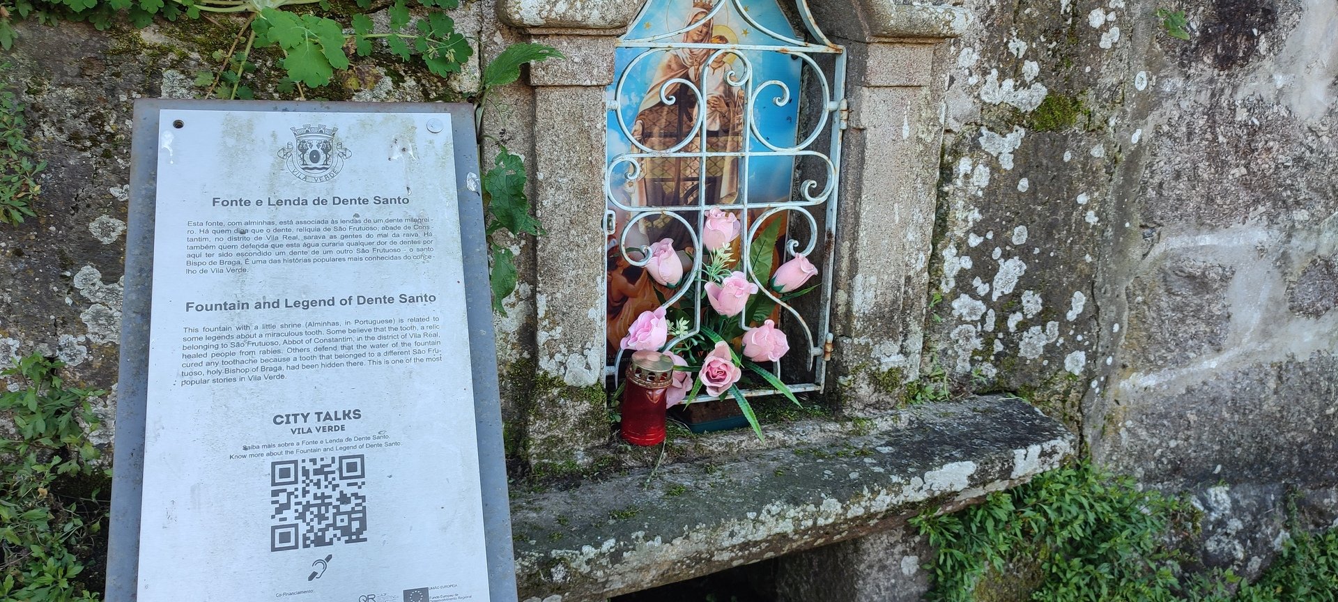 Depois de cruzar a linha de água, continuámos por caminhos rurais até chegarmos ao Lugar de Borges onde se situa a Fonte de Dente Santo, cuja lenda reza assim: