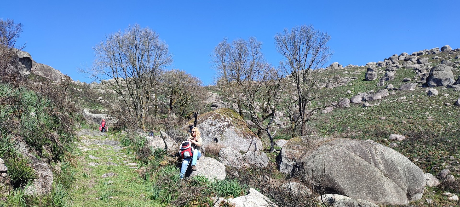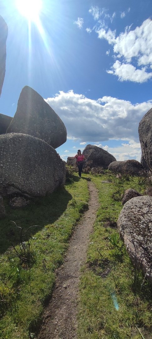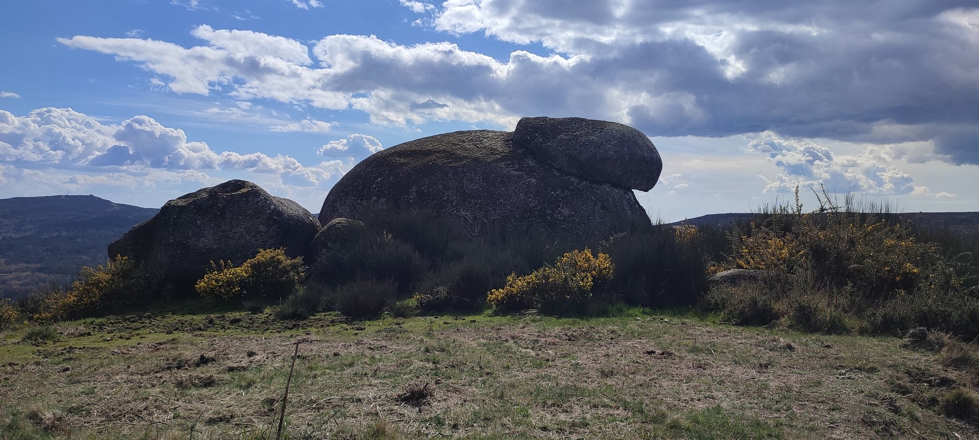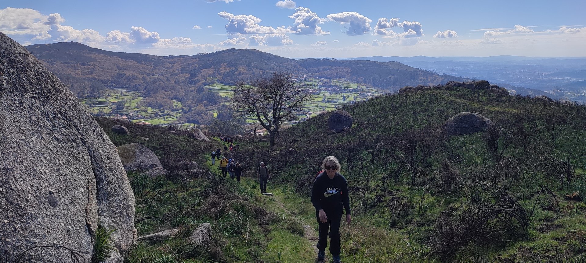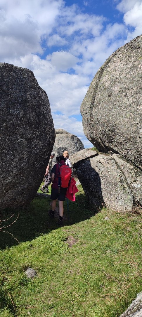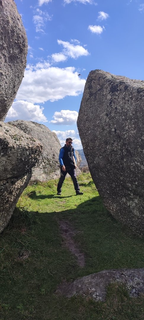 Aproveitou-se para fazer o registo fotográfico do grupo e após o repasto, sem esquecer o café e algum produto alcoólico para lavar a chávena, seguimos por um carreiro de montanha por sinal lindíssimo, sempre bordeado por um exército de penedos de diferentes formas e tamanhos conforme a vontade do fenómeno que os formou.