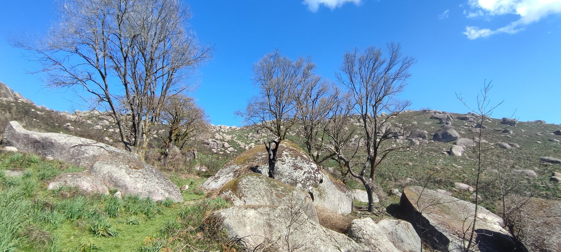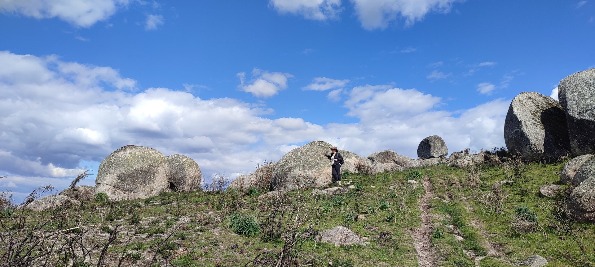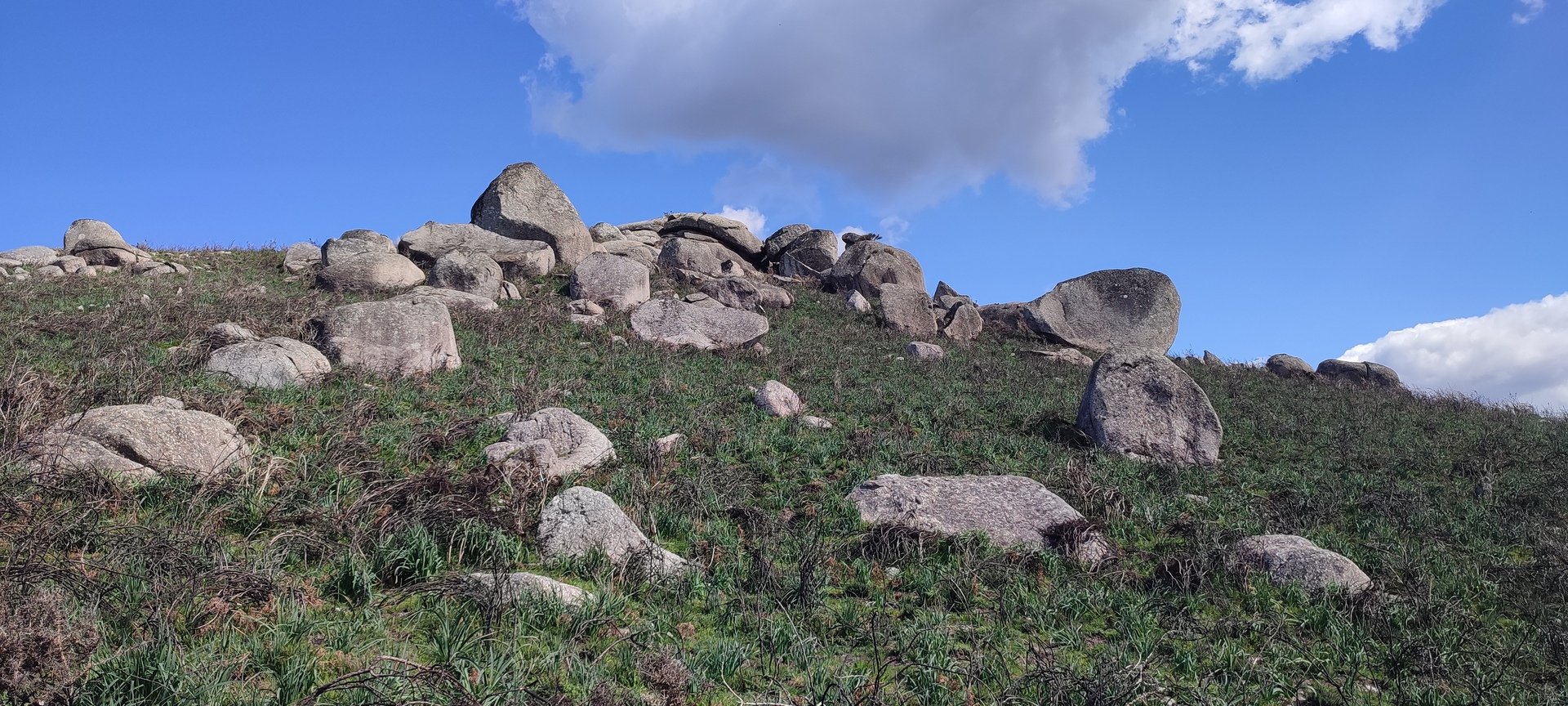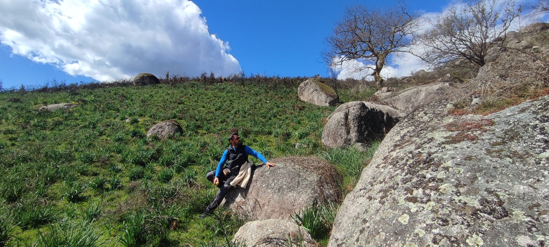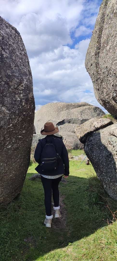 Aproveitou-se para fazer o registo fotográfico do grupo e após o repasto, sem esquecer o café e algum produto alcoólico para lavar a chávena, seguimos por um carreiro de montanha por sinal lindíssimo, sempre bordeado por um exército de penedos de diferentes formas e tamanhos conforme a vontade do fenómeno que os formou.