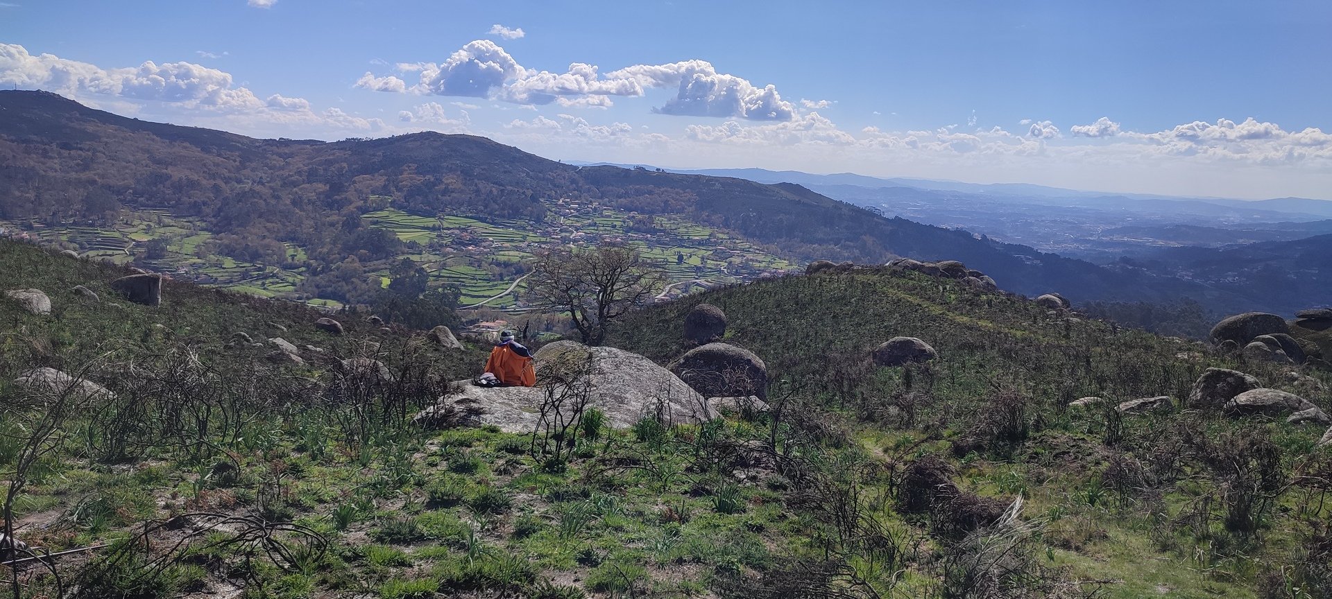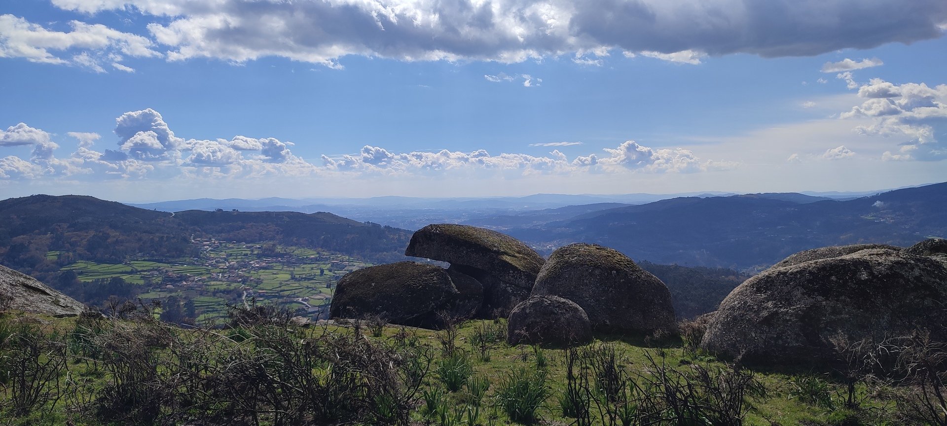 Mais acima, como os estômagos já reclamavam, decidimos parar para almoçar e escolheu-se um local alto, com uma vista maravilhosa em redor, que seria próximo do Miradouro do Alto de Perre, numa altitude de 668m (41º45'32.6" N 8º23'45.4" W).