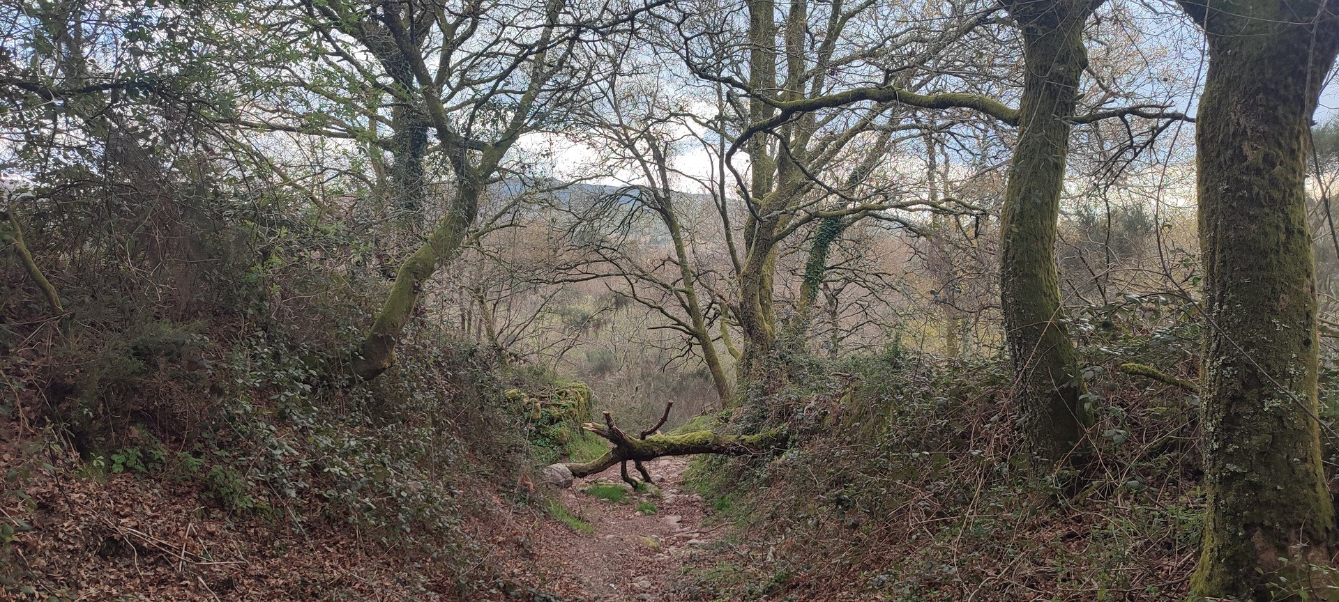 O pequeno grupo que optou subir ao castelo começou a descida por uma zona de bosque em direção à aldeia da Pequenina que se destaca pela sua antiguidade e história e pela famosa casa da Pequenina.