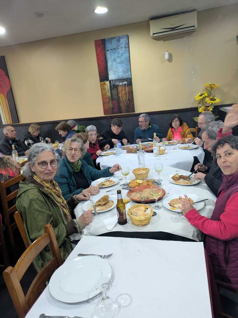 Podemos dizer que fomos muito bem tratados pela cozinheira que nos presenteou com um delicioso arroz malandro de feijão com panados e pataniscas. O vinho também escorregou bem e regou as gargantas ressequidas pelo esforço da caminhada.