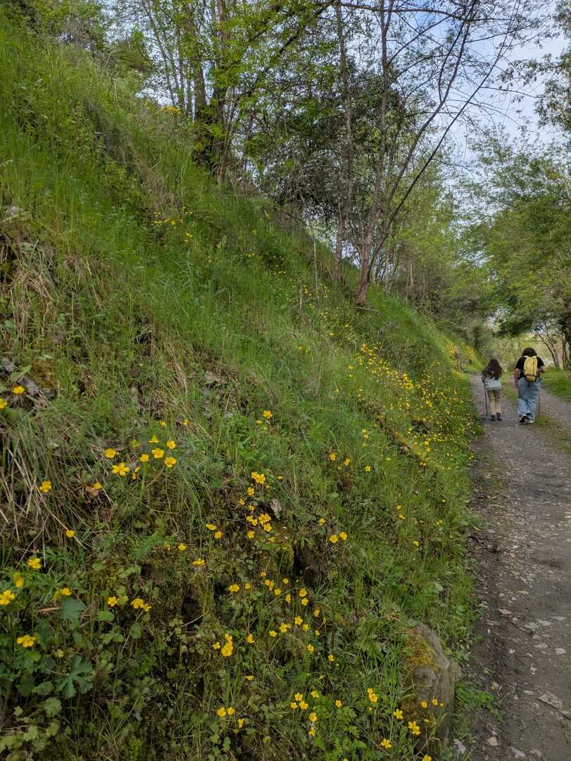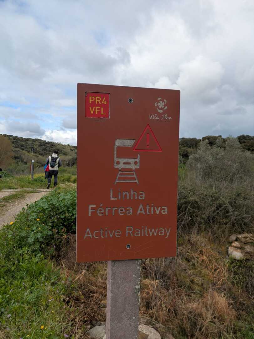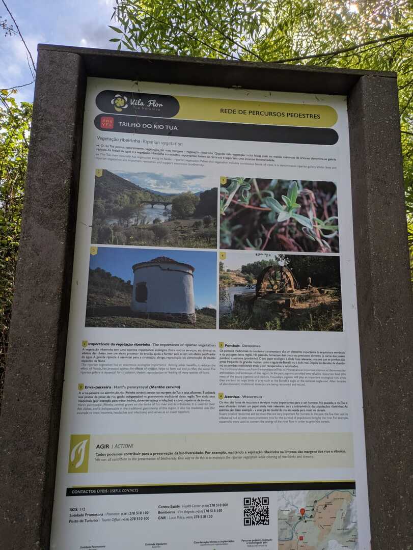 Chegados a Vilarinho das Azenhas, iniciámos o primeiro percurso que é linear e tem início junto ao painel informativo do Centro Interpretativo Tua Natureza (que, infelizmente, estava fechado). Começámos a caminhar pela margem esquerda do rio Tua, junto à extinta linha de caminho de ferro com o mesmo nome.
