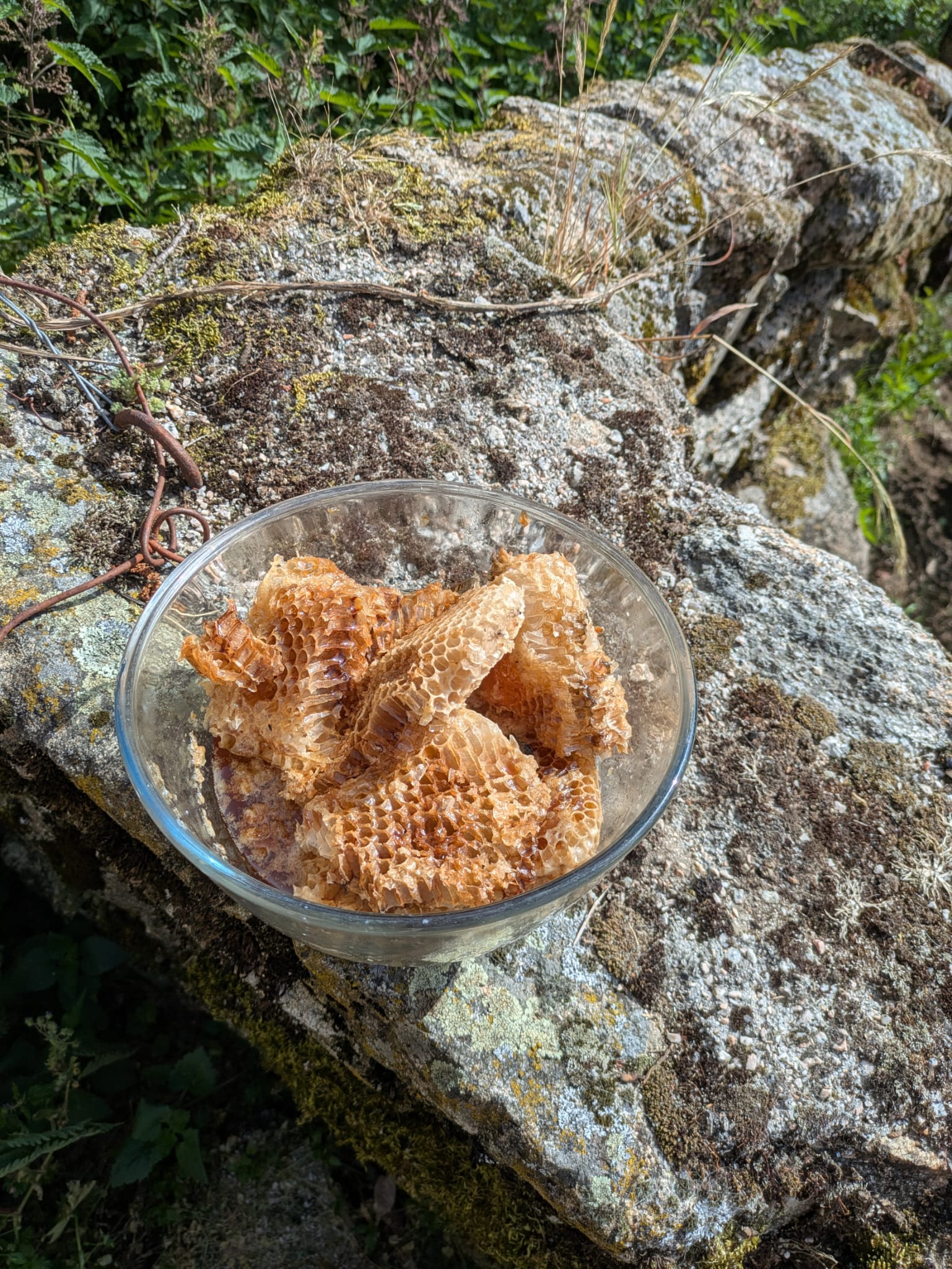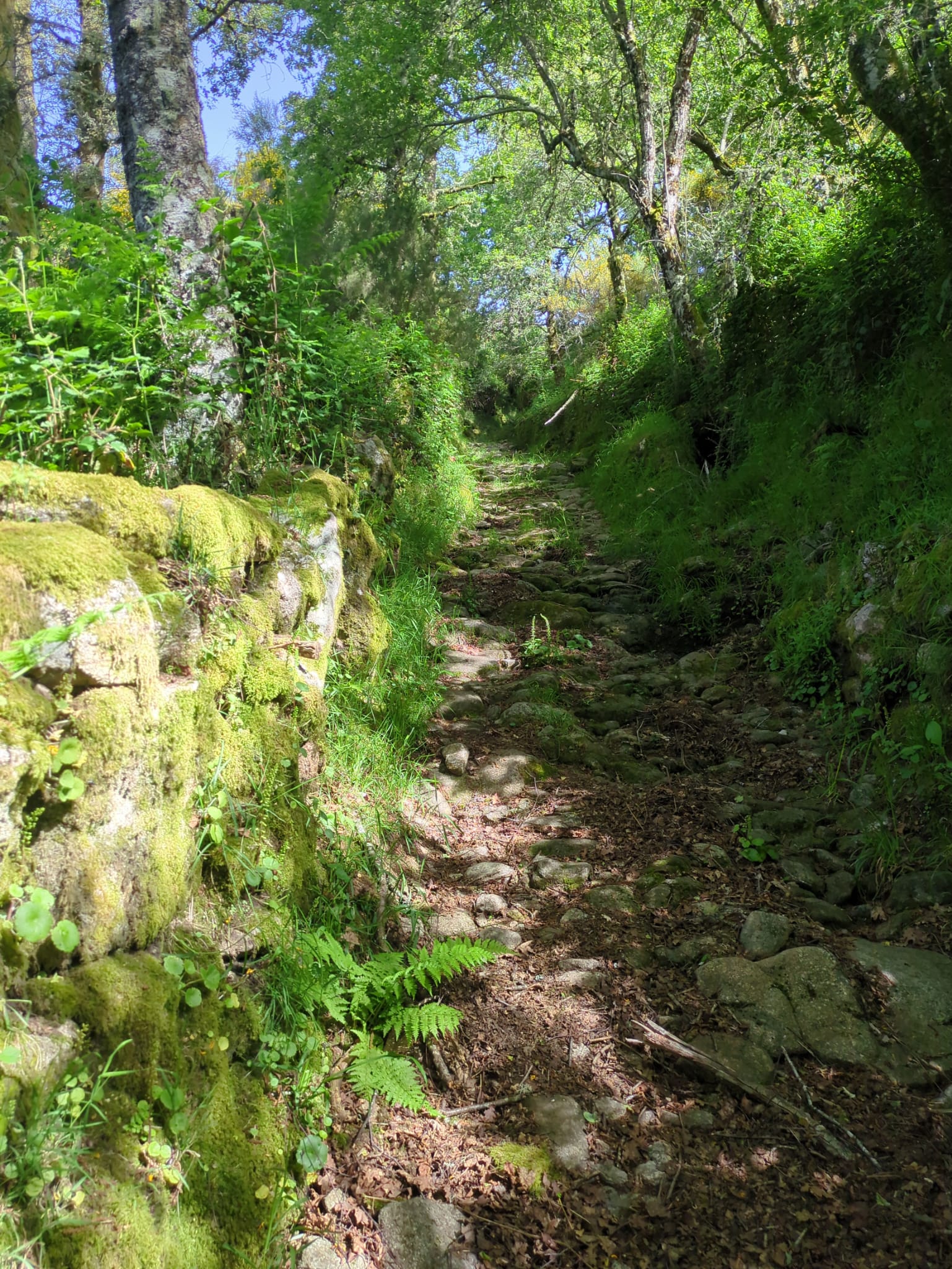 Iniciámos, caminhando entre muros de pedra solta por antigos caminhos de aldeia e do mosaico agrícola envolvente, cheios de simbologia, pois que este caminho era conhecido como "Caminho dos Mortos".