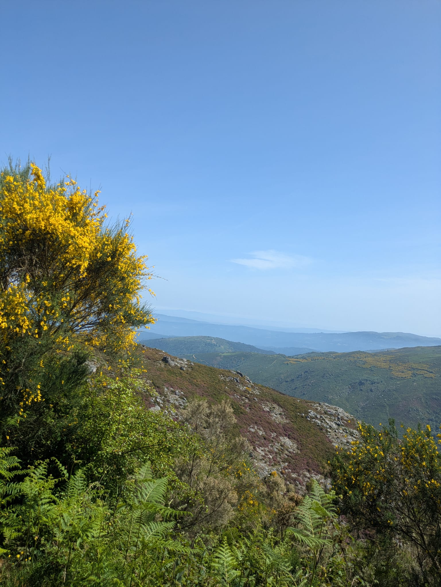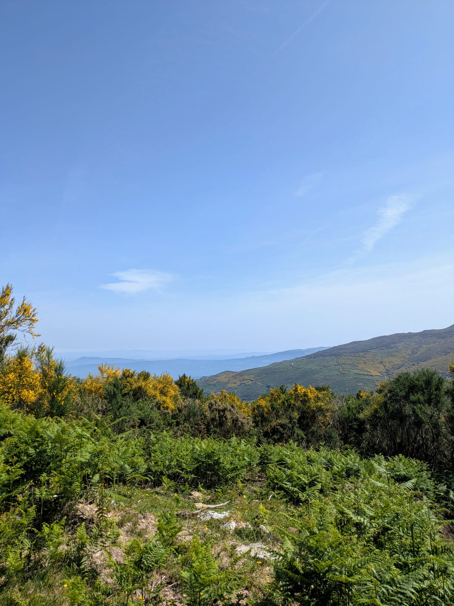 À nossa volta os montes apresentavam uma bonita pintura, pois que os maios nesta altura estavam em plena floração, pintando as encostas de um amarelo muito vivo.