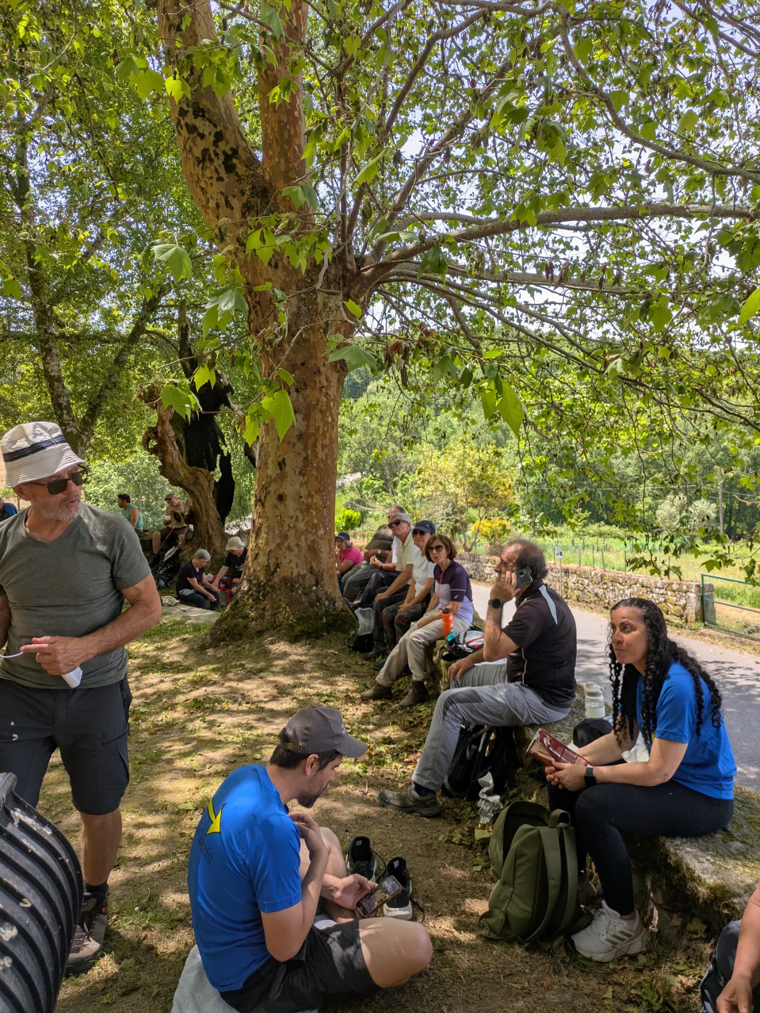 Aqui, junto à frontaria do mosteiro, aproveitando a sombra do arvoredo, fizemos o reabastecimento e foi tirada a foto de grupo.