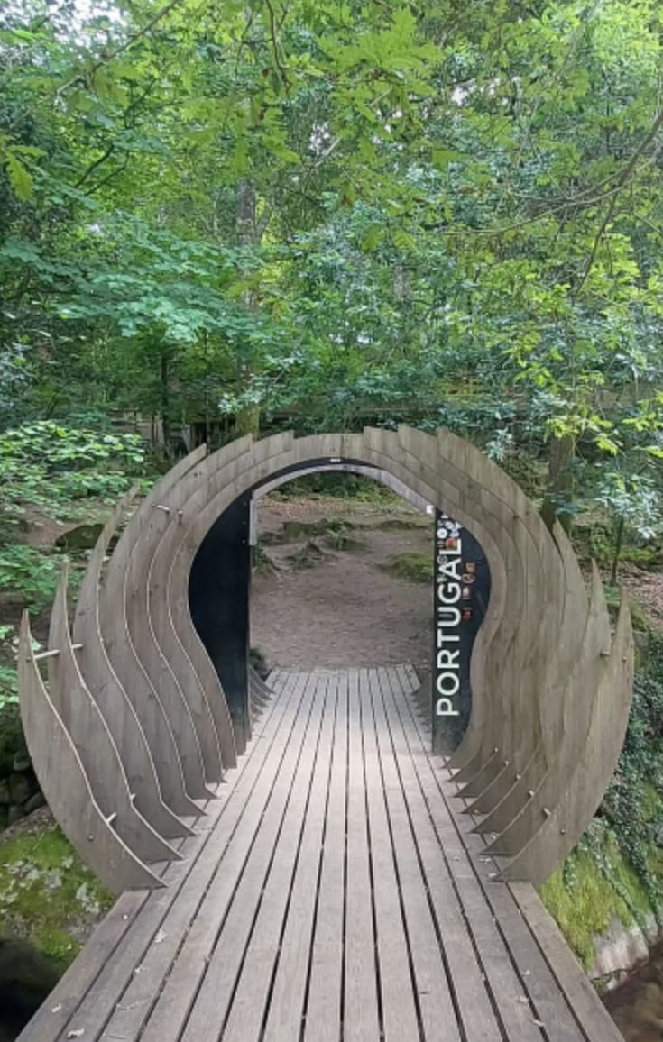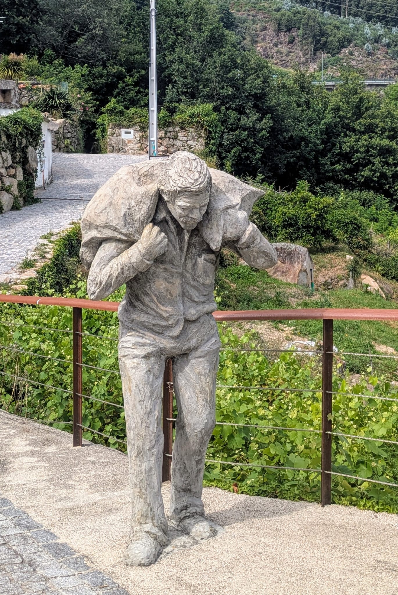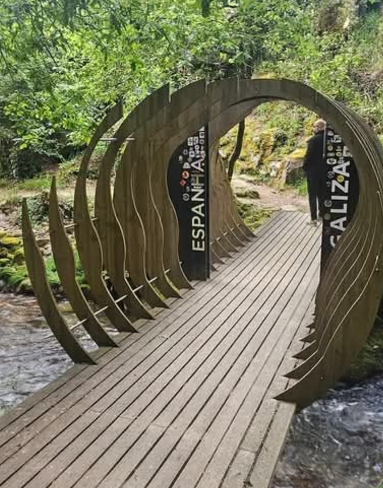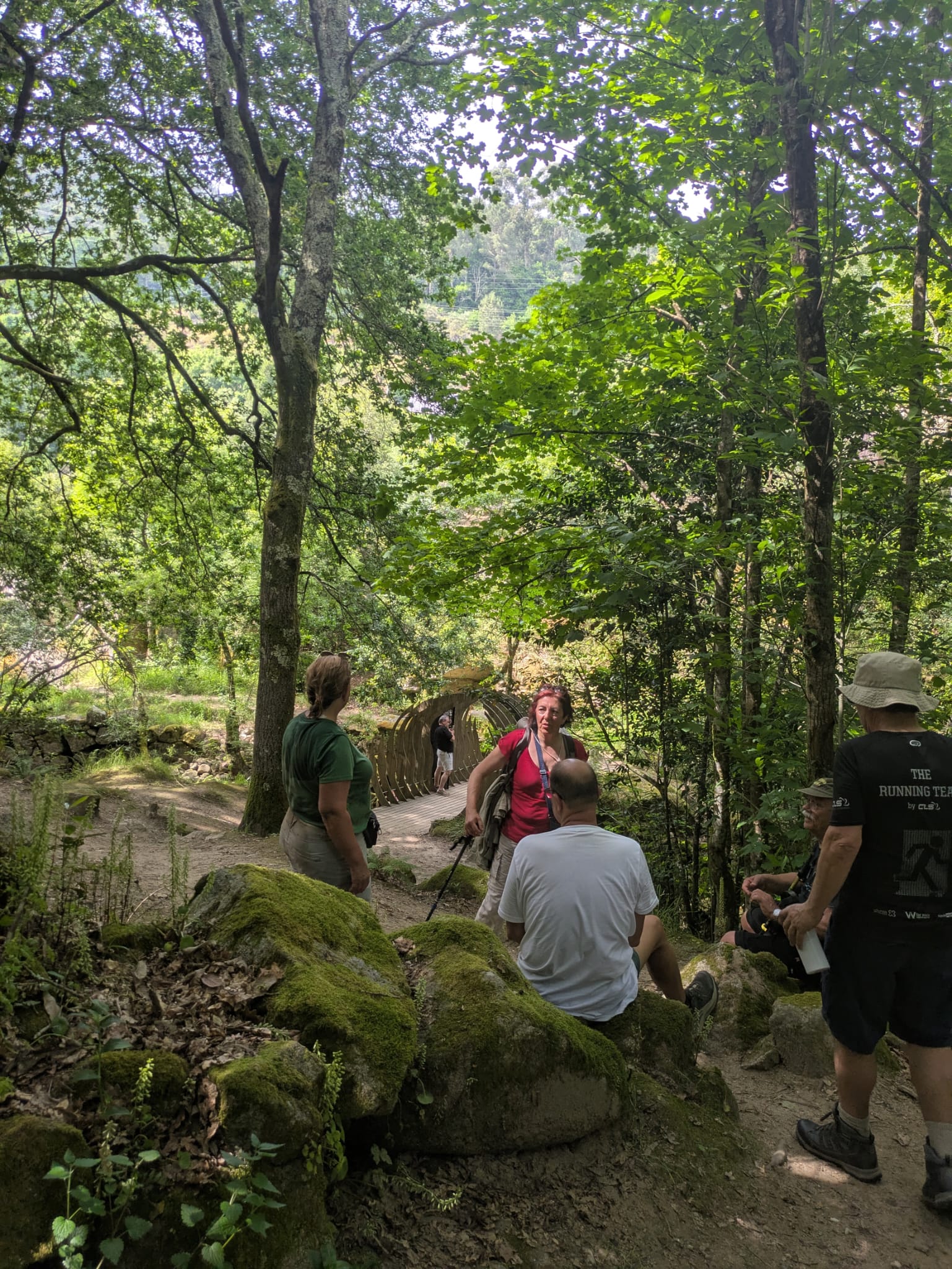Já no largo onde se encontra uma escultura em homenagem aos tempos do contrabando, partimos através de um passadiço que nos levou ao referido marco nº 1, onde na pequena mas bonita ponte instalada sobre o rio Trancoso se tiraram fotos para a posteridade. Tempo houve ainda para molhar os pés no rio.