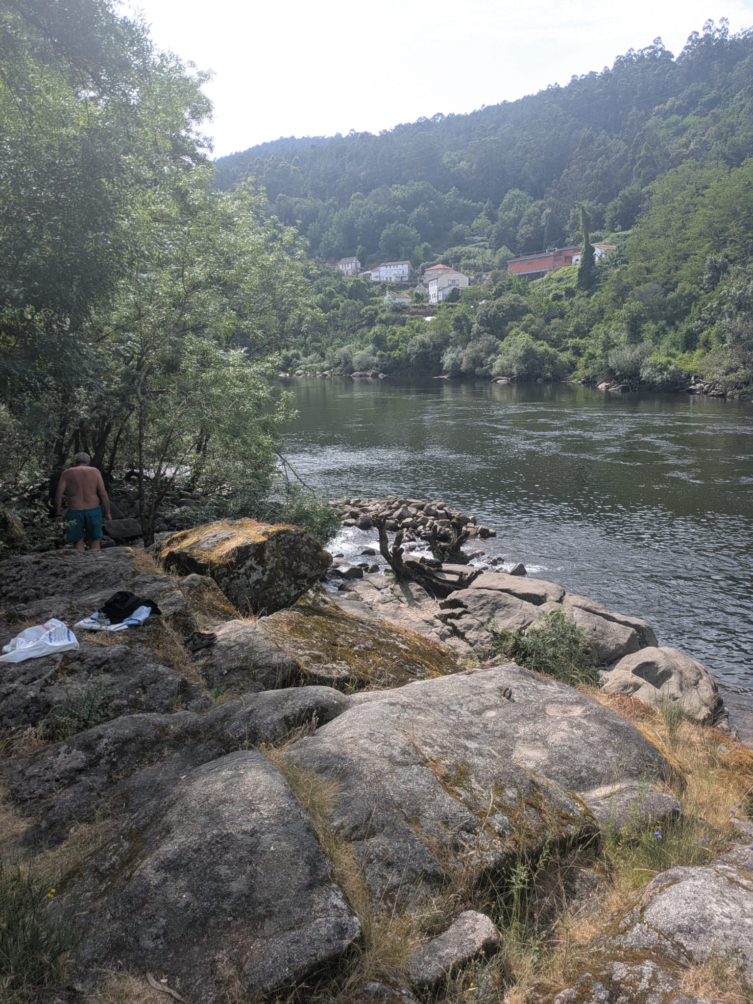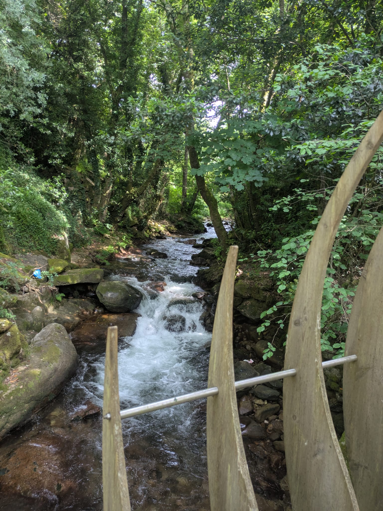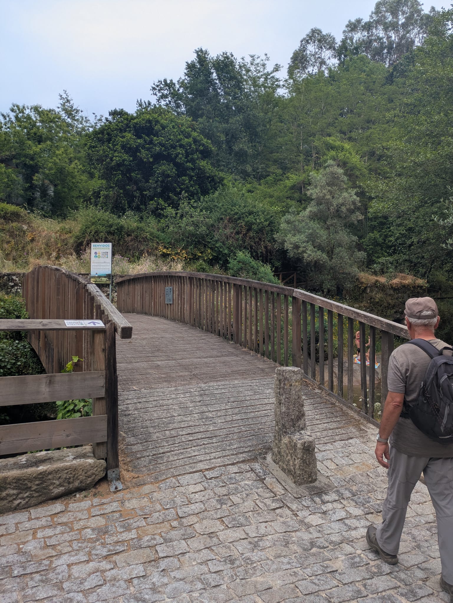 Já no largo onde se encontra uma escultura em homenagem aos tempos do contrabando, partimos através de um passadiço que nos levou ao referido marco nº 1, onde na pequena mas bonita ponte instalada sobre o rio Trancoso se tiraram fotos para a posteridade. Tempo houve ainda para molhar os pés no rio.