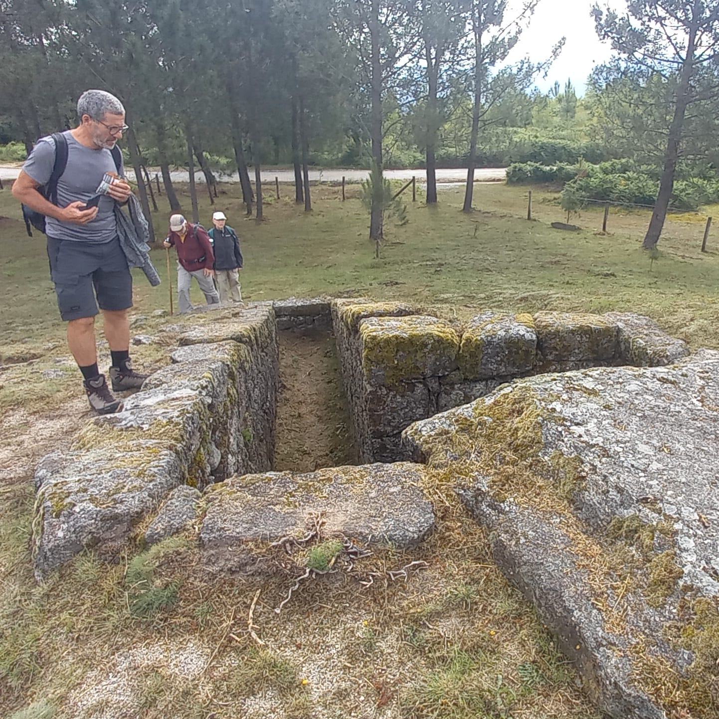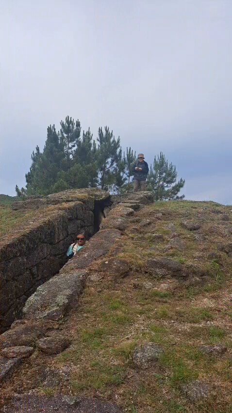 Após caminharmos um pouco passamos por uma mamoa e logo depois por uma anta que visitamos. Continuando subindo, passamos pelo hotel que já há vários anos permanece fechado, mas que se encontra em obras fazendo acreditar que finalmente poderá reabrir.